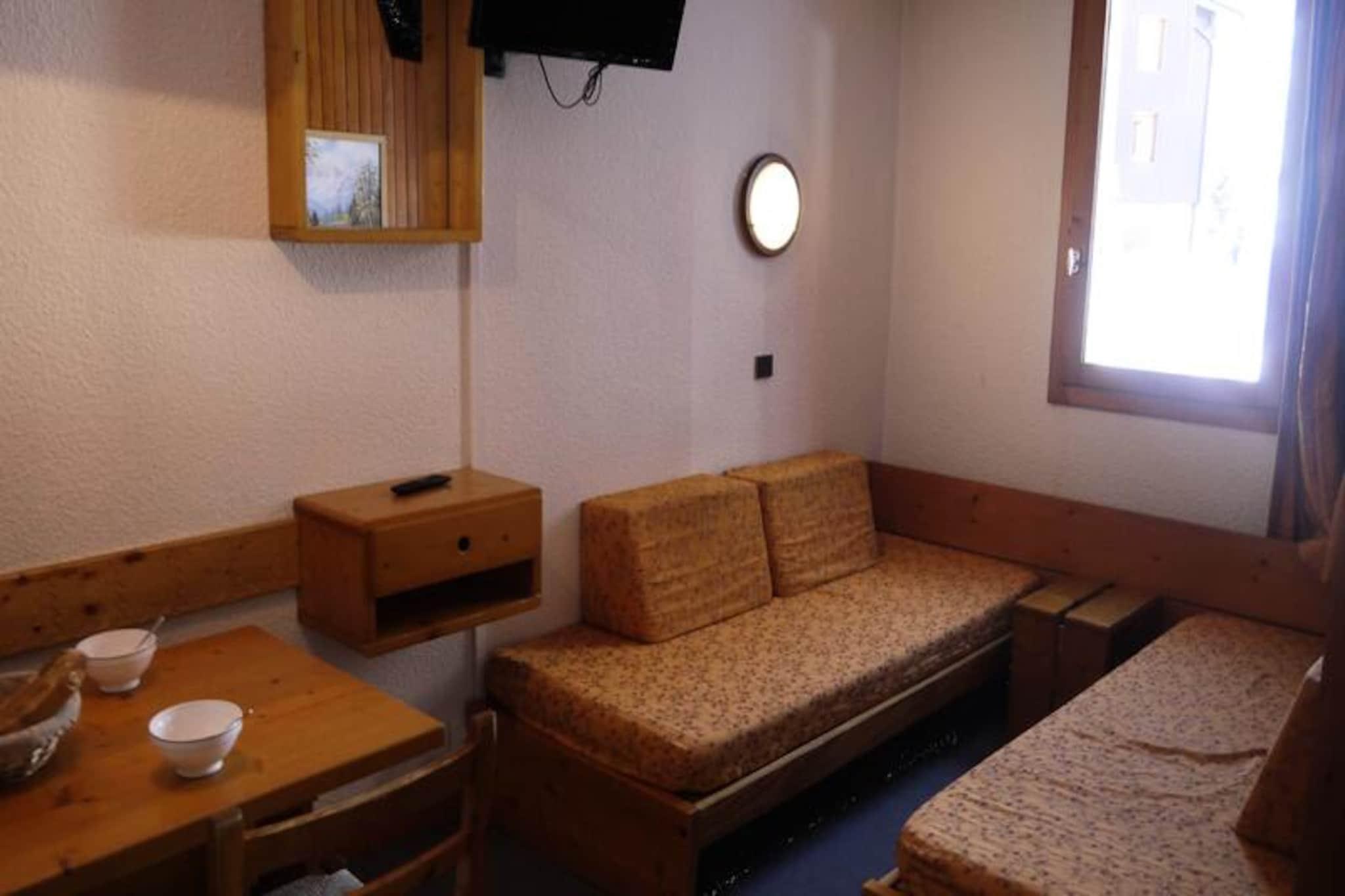 I det charmiga Laitelet-området i Méribel-Mottaret erbjuder denna mysiga lägenhet en härlig alpin tillflyktsort med direkt tillgång till backarna och närliggande butiker. Tänk dig att du kliva ut på din balkong, med skidförvaringen redo, och ger dig direkt in i en dag av spännande äventyr bland de orörda snötäckta topparna i de franska Alperna. Oavsett om du är här för vintersport eller sommarvandringar, placerar denna bostad dig i hjärtat av allt. \n\nInuti är lägenheten noggrant utformad för komfort och bekvämlighet. Det delbara vardagsrummet har fyra bäddsoffor, vilket erbjuder flexibla sovarrangemang för familjer eller grupper av vänner. Det separata köket är fullt utrustat med moderna apparater, inklusive keramikhäll, diskmaskin, ugn och Nespressomaskin, vilket gör det enkelt att laga rejäla måltider efter en dag i backarna. Badrummet och toaletten är separata för extra avskildhet, och lägenheten är rökfri, vilket garanterar en fräsch och välkomnande miljö. Ytterligare tjänster som sängkläder, handdukar och babyutrustning kan bokas i förväg för en problemfri vistelse.\n\nResidenset Le Boulevard är idealiskt beläget i hjärtat av Laitelet, med enkel tillgång till skidliftar, lokala butiker och restauranger. Under de varmare månaderna förvandlas området till en fristad för friluftsentusiaster, med vandringsleder och hisnande bergsutsikt. Oavsett om du smuttar på kaffe på balkongen eller utforskar den livliga omgivningen, erbjuder denna lägenhet den perfekta basen för att skapa oförglömliga alpina minnen.\n\nVälj denna tillflyktsort i Méribel-Mottaret för dess oslagbara läge, moderna bekvämligheter och löftet om en autentisk bergsupplevelse som kommer att få dig att längta tillbaka.