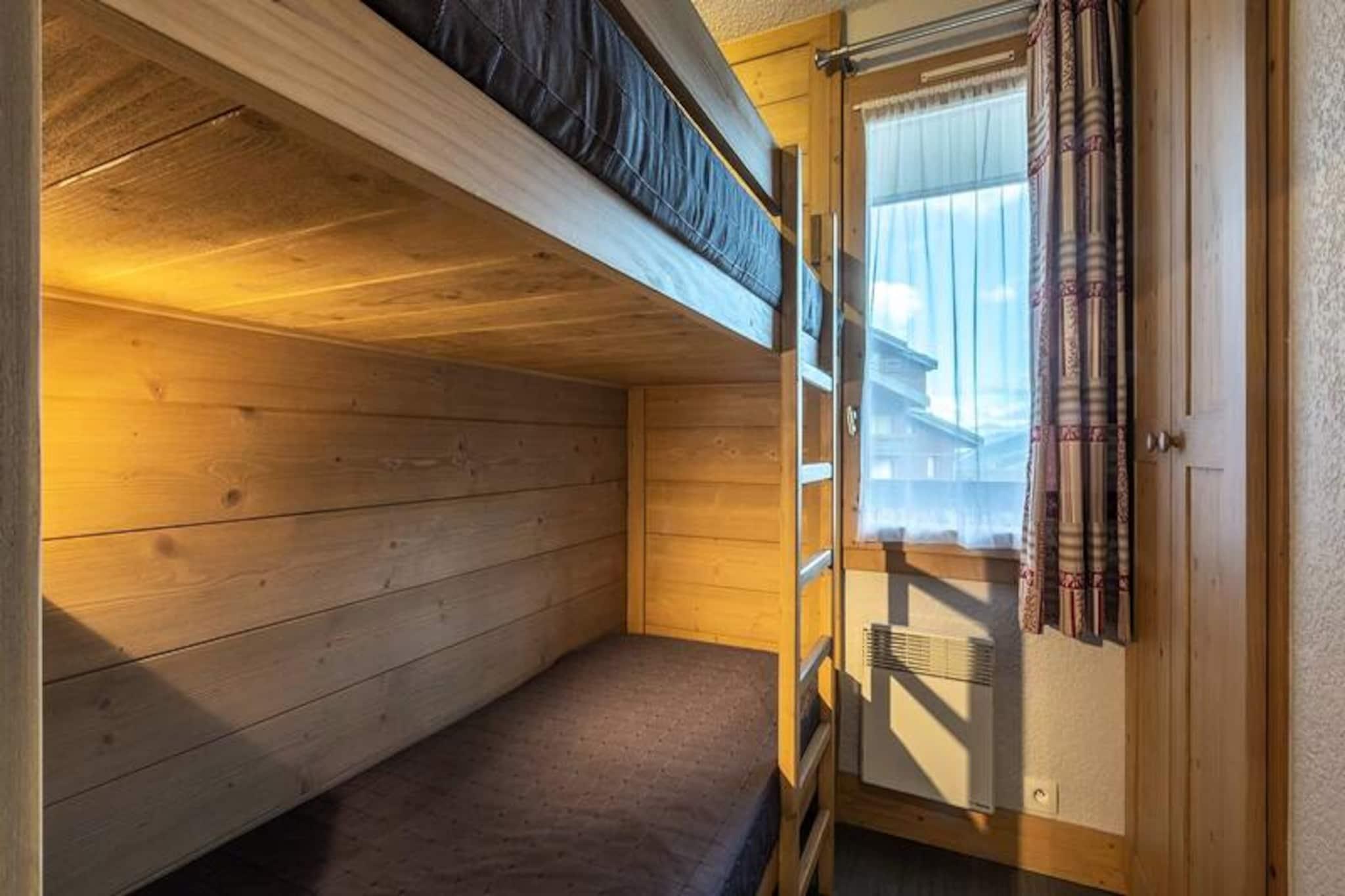 Högt ovanför den förtrollande alpbyn Méribel Mottaret erbjuder denna välkomnande lägenhet en ski-in-ski-out-upplevelse som placerar dig direkt i backarna. Tänk dig att vakna upp till den friska bergsluften, kliva ut på din privata balkong och titta på de snötäckta topparna innan du ger dig ut på en dag med spännande äventyr. Arpasson-residenset, inbäddat i Laitelet-distriktet, kombinerar bekvämlighet och charm, med enkel tillgång till Hameau köpcentrum och det pulserande hjärtat av orten via Chalets linbana eller gratis Méribus-bussar. Oavsett om du är här för vintersport eller sommarvandringar, är denna fastighet din port till de franska Alpernas skönhet. Inuti är lägenheten omsorgsfullt utformad för att rymma upp till sex gäster. Det första sovrummet har två enkelsängar, medan stugan erbjuder mysiga våningssängar. Vardagsrummet är ett mångsidigt utrymme med en bäddsoffa och ytterligare sovmöjligheter, vilket garanterar komfort för familjer eller grupper av vänner. Ett fullt utrustat kök väntar, komplett med induktionshäll, diskmaskin, ugn, mikrovågsugn och kaffebryggare – perfekt för att laga mat efter en dag i backarna. Moderna bekvämligheter som TV, skidförvaring och hiss förbättrar din vistelse, medan det separata badrummet och toaletten ger extra bekvämlighet. Observera att detta är en rökfri lägenhet utan husdjur. Hameau du Mottaret-området är ett skidåkarparadis, med bostäder som erbjuder smidig tillgång till backarna. I närheten hittar du allt du behöver för en avkopplande semester: en minilivs, sportbutik, restauranger och barer. På sommaren förvandlas regionen till en fristad för friluftsentusiaster, med vandringsleder, mountainbikeleder och hisnande vyer. Oavsett om du söker adrenalinpumpande äventyr eller lugna alpina stunder, är denna lägenhet den perfekta basen för din Méribel-resa.