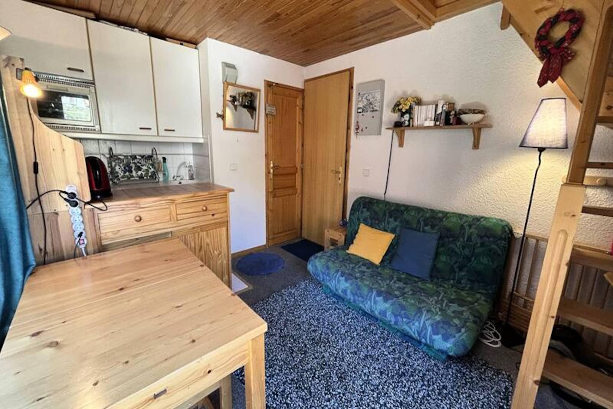 I det fridfulla Châtelet-distriktet i Méribel Mottaret inbjuder denna charmiga alpina lägenhet dig att uppleva magin i de franska Alperna. Med sjön Tueda bara en kort promenad bort är fastigheten perfekt belägen för snöskovandrings- och längdskidåkningsentusiaster som söker lugn och ro mitt i hisnande naturskönhet. Residenset erbjuder direkt tillgång till backarna via en närliggande stig, vilket säkerställer att du enkelt kan börja dina skidäventyr varje dag. Oavsett om du är här för att omfamna det snöiga landskapet eller utforska de livliga sommarspåren, erbjuder detta läge en idyllisk tillflyktsort året runt. \n\nInuti är lägenheten noggrant utformad för komfort och praktisk användning. På bottenvåningen hittar du ett mysigt vardagsrum med öppet kök, perfekt för att laga rejäla måltider efter en dag utomhus. En separat toalett ökar bekvämligheten, medan övervåningen har ett sovrum med en dubbelsäng och en mezzanin med två enkelsängar, vilket gör den idealisk för familjer eller små grupper. Badrummet är välutrustat, och residenset har en hiss och ett skidförvaring för extra bekvämlighet. Detta rökfria och välkomnande hem garanterar en lugn vistelse i bergen. Ytterligare tjänster som sängkläder, handdukar och slutstädning kan bokas i förväg, tillsammans med babyutrustning för familjer som reser med småttingar.\n\nChâtelet-området är ett modernt bostadsområde som är anslutet till semesterortens centrum och butiker via en bergbana, vilket gör det enkelt att ta sig till lokala bekvämligheter. För extra bekvämlighet kan parkeringsplatser reserveras under hela din vistelse. På vintern kan du njuta av spänningen med skidåkning och snowboardåkning, medan sommaren förvandlar regionen till en fristad för vandring, mountainbike och avkoppling vid sjön. Oavsett om du söker äventyr eller lugn, erbjuder denna lägenhet den perfekta basen för en oförglömlig alpin flykt.