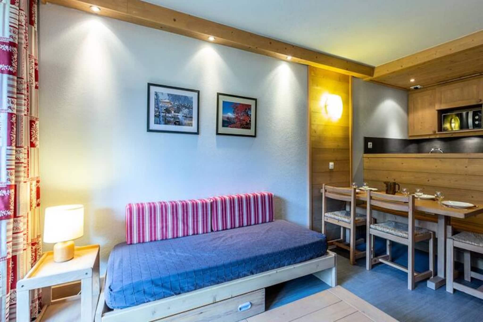 Högt ovanför de pittoreska sluttningarna i Méribel Mottaret erbjuder denna charmiga lägenhet en mysig alpin tillflyktsort med direkt tillgång till skidbackarna. Belägen i Arpasson-residenset i Laitelet-distriktet, kombinerar fastigheten bekvämligheten av ski-in/ski-out-boende med lugnet av hisnande bergsutsikt. Oavsett om du är här för vintersport eller sommarvandringar, lovar detta läge en oförglömlig vistelse i hjärtat av de franska Alperna. \n\nInuti är lägenheten omsorgsfullt utformad för komfort och funktionalitet. Vardagsrummet har två bäddsoffor och en TV, vilket skapar ett välkomnande utrymme att koppla av efter en dag i backarna. Sovrummet har en våningssäng och en enkelsäng, perfekt för familjer eller grupper av vänner. Köket är fullt utrustat med moderna apparater, inklusive keramikhäll, diskmaskin, kombiugn, vattenkokare, brödrost, kaffebryggare och kylskåp. Ett separat badrum och toalett ökar bekvämligheten, medan den privata balkongen inbjuder dig att njuta av den friska alpina luften. Ytterligare bekvämligheter inkluderar ett skidförvaringsskåp, tillgång till hiss och valfria tjänster som sängkläder, handdukar och slutstädning. \n\nLaitelet-distriktet är ett skidåkarparadis och erbjuder oöverträffad tillgång till backarna och det närliggande köpcentret Hameau. En kort tur med linbanan Chalets eller den kostnadsfria Méribus-buss tar dig till Méribel Mottarets pulserande centrum, där du hittar en mängd olika restauranger, barer och butiker. På sommaren förvandlas området till en fristad för vandrare och naturentusiaster, med stigar som slingrar sig genom frodiga landskap och erbjuder fantastisk utsikt över de omgivande topparna. \n\nOavsett om du åker genom färsk pudersnö eller utforskar alpina ängar, erbjuder denna lägenhet den perfekta basen för dina bergsäventyr. Omfamna Méribel Mottarets charm och skapa minnen som varar livet ut.
