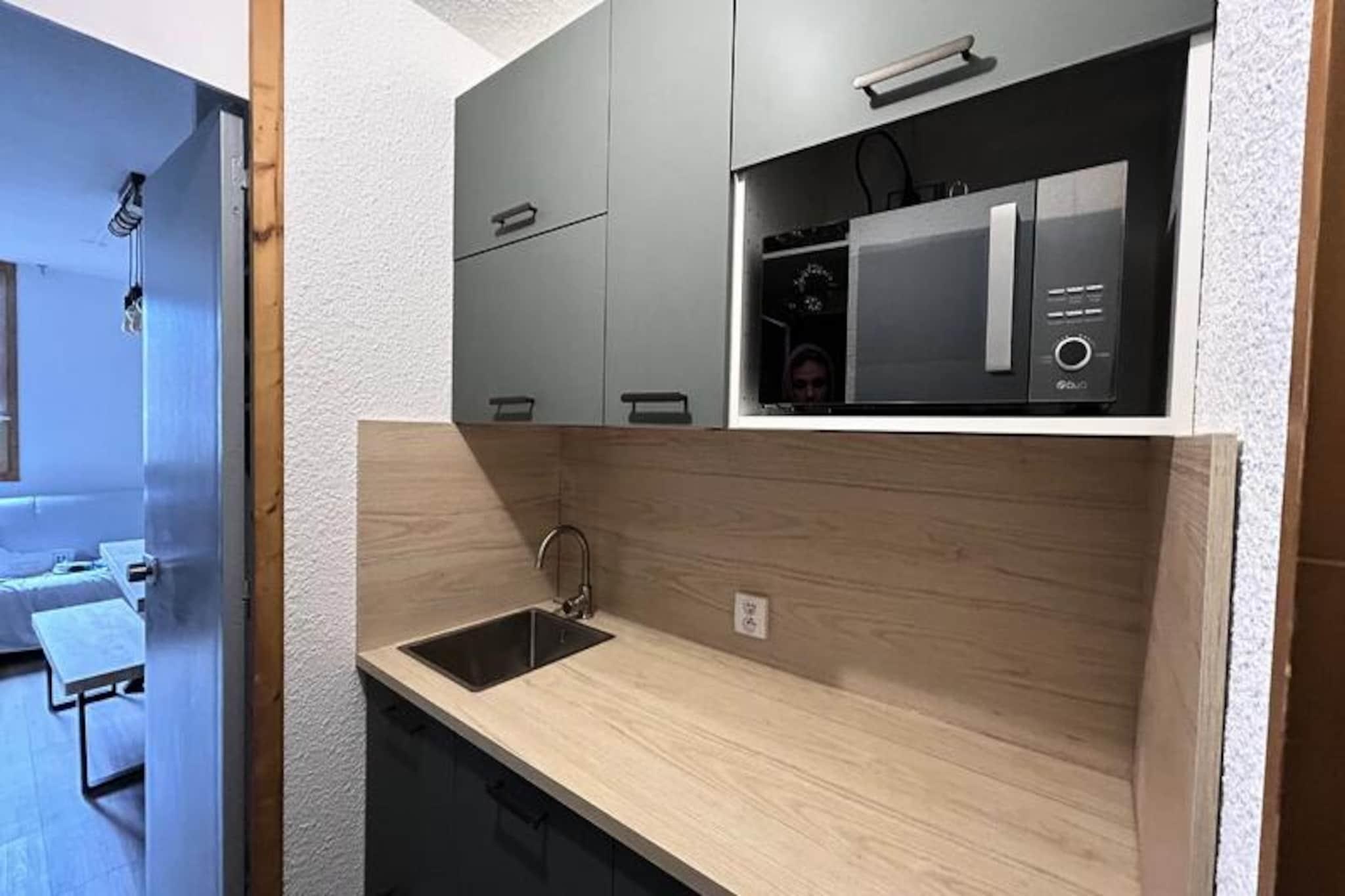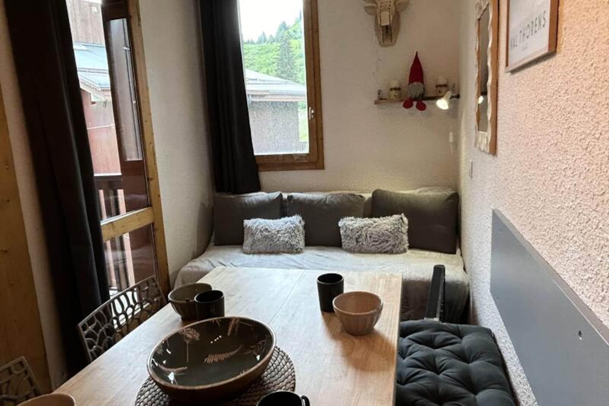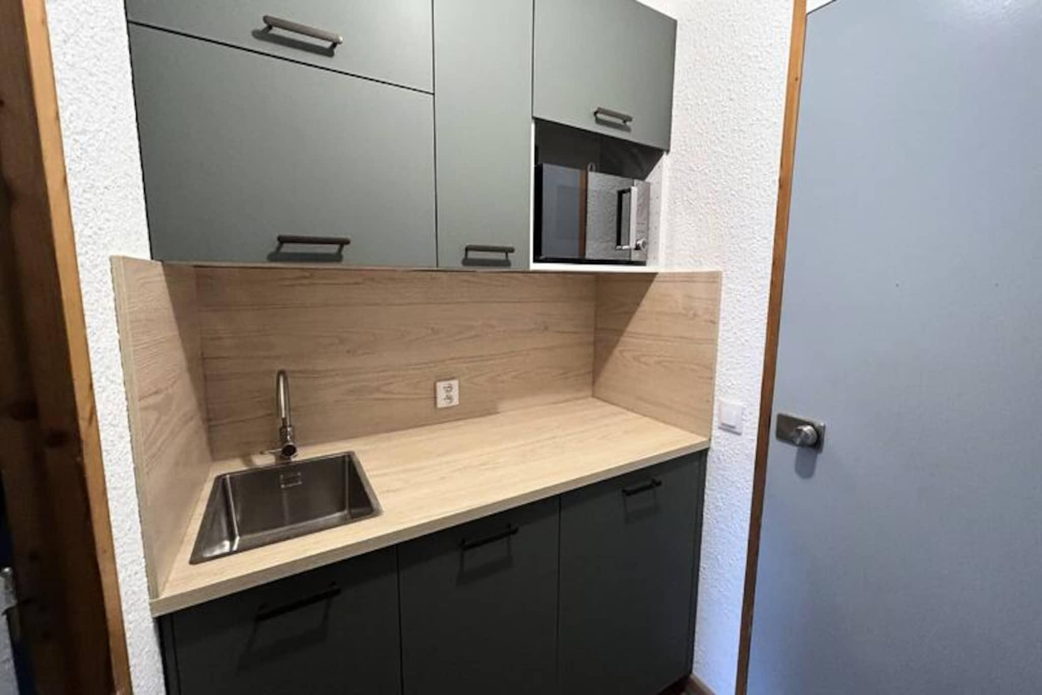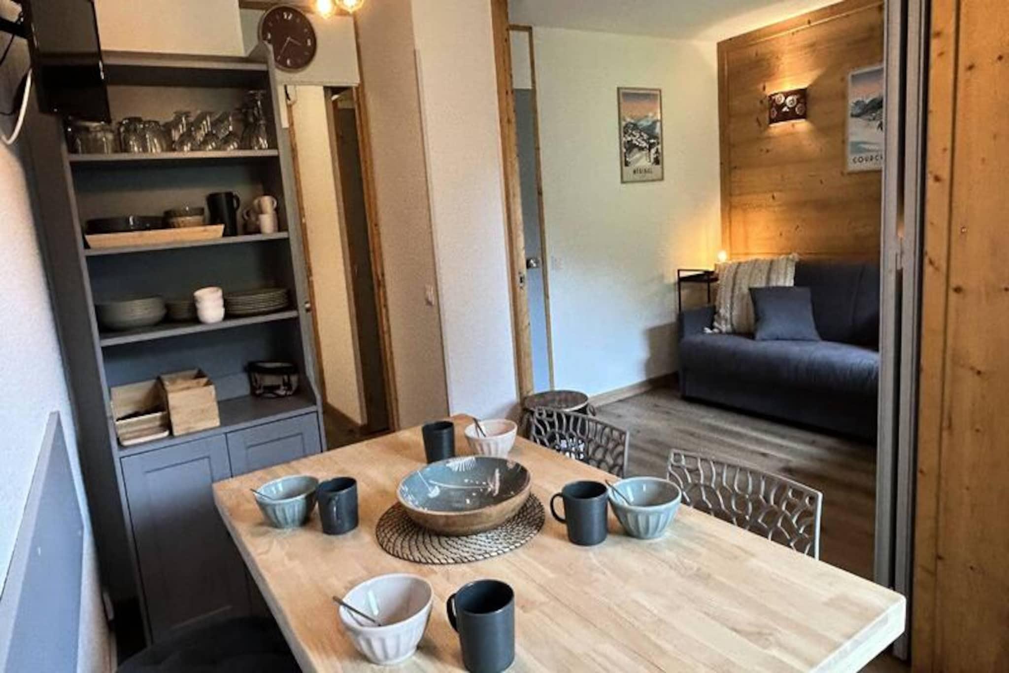 Högt ovanför de pittoreska sluttningarna i Méribel Mottaret inbjuder denna charmiga lägenhet dig att uppleva magin i de franska Alperna under alla årstider. Med sitt utmärkta läge i Laitelet-distriktet erbjuder residenset direkt tillgång till skidbackarna och ligger bara några steg från Hameau köpcentrum, vilket garanterar bekvämlighet och äventyr nära till hands. Tänk dig att vakna upp till frisk alpluft, smutta på ditt morgonkaffe på balkongen och gå direkt ut för att utforska de snötäckta stigarna eller de livliga sommarlandskapen. Arpasson-residenset kombinerar spänningen i bergslivet med bekvämligheterna i ett hem. \n\nInuti är lägenheten omsorgsfullt utformad för att rymma upp till fyra gäster. Entréhallen har mysiga våningssängar, medan vardagsrummet erbjuder en bekväm bäddsoffa och en TV för avkopplande kvällar. Det fullt utrustade köket har moderna bekvämligheter som diskmaskin, elektrisk spis, mikrovågsugn/grill, kylskåp och kaffebryggare, vilket gör matlagningen till en barnlek. Ett separat badrum och toalett garanterar avskildhet och bekvämlighet. Ytterligare funktioner som skidförvaring, hiss och valfria tjänster som sängkläder, handdukar och babyutrustning förbättrar din vistelse. Denna rökfria lägenhet är perfekt för par, familjer eller små grupper som söker en lugn tillflyktsort.\n\nOmrådet Hameau du Mottaret är ett skidåkarparadis, med bostäder som erbjuder enkel tillgång till backarna och ett utbud av butiker, restauranger och barer i närheten. Den kostnadsfria linbanan Chalets och Méribus-bussen förbinder dig enkelt till ortens centrum, där du kan njuta av afterski-aktiviteter eller utforska lokala sevärdheter. Oavsett om du glider nerför orörda pister på vintern eller vandrar genom frodiga stigar på sommaren, erbjuder denna plats oändliga möjligheter till äventyr.\n\nVälj denna alpina oas för din nästa semester och skapa oförglömliga minnen omgivna av skönheten i Méribel Mottarets majestätiska toppar.