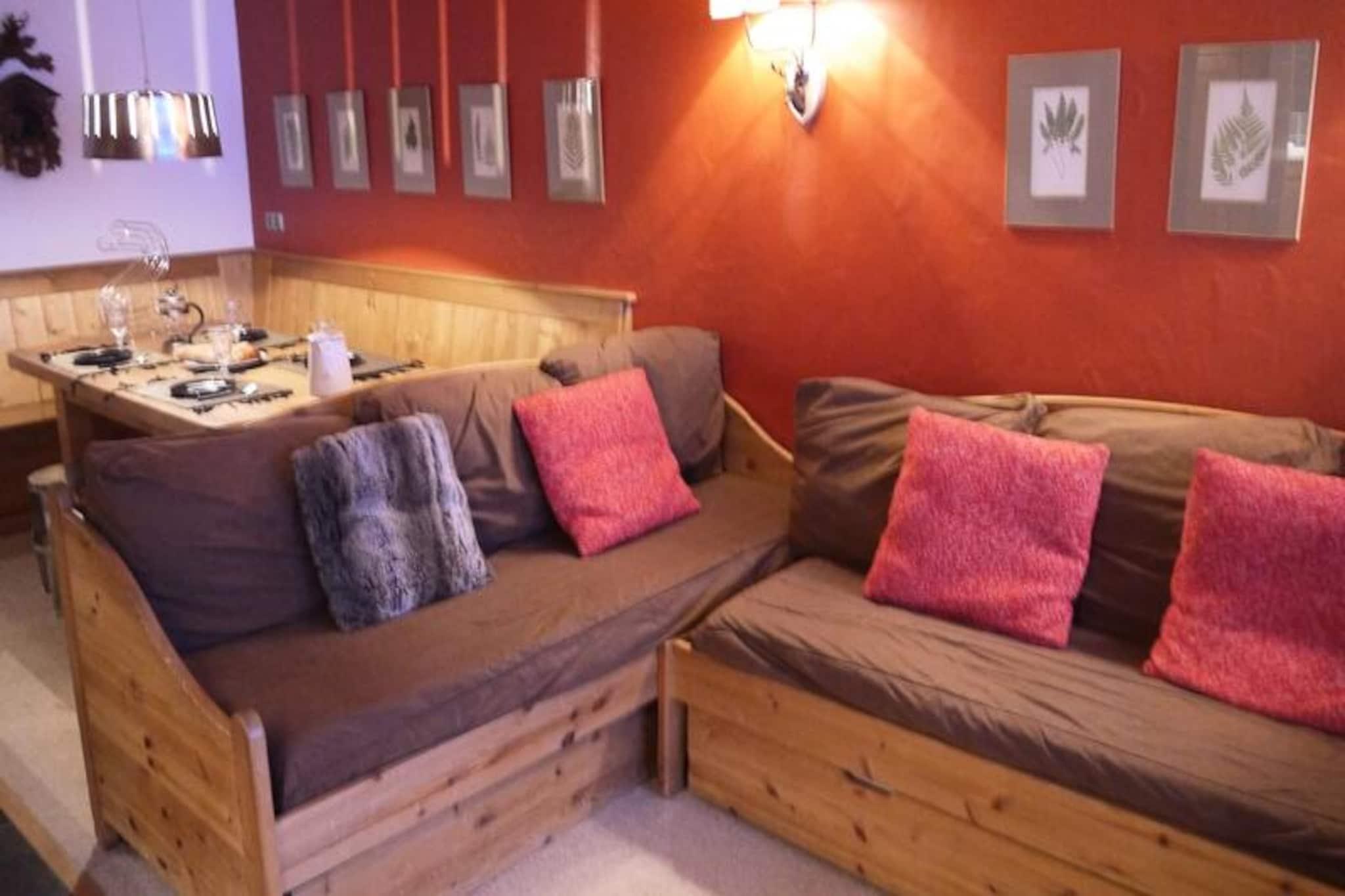 I det förtrollande nedre Mottaret-området i Méribel erbjuder denna mysiga lägenhet en perfekt alpin tillflyktsort med direkt tillgång till backarna. Tänk dig att vakna upp till den friska bergsluften, kliva ut på din balkong för att njuta av den hisnande utsikten och ge dig direkt ut på en dag med skidåkning eller snowboardåkning. Med sitt utmärkta läge bara tre minuters promenad från ortens centrum kommer du att vara omgiven av den pulserande atmosfären i Méribel Mottaret, omgiven av butiker, restauranger och ESF:s skidskolas avgångspunkter, vilket säkerställer att varje ögonblick av din semester är fyllt med spänning och bekvämlighet. \n\nInuti är lägenheten noggrant utformad för att rymma upp till fem gäster. Vardagsrummet har två bekväma bäddsoffor och en utdragssäng, perfekt för avkoppling efter en dag i backarna. Det separata sovrummet med dubbelsäng erbjuder en fridfull oas för vilsamma nätter. Pentryt är fullt utrustat med keramikhäll, en kombiugn, en diskmaskin och allt du behöver som kylskåp, frys, vattenkokare, brödrost och kaffebryggare, vilket gör det enkelt att laga rejäla måltider. Ett badrum med separat toalett ökar bekvämligheten, medan balkongen erbjuder en lugn plats att varva ner. Ytterligare bekvämligheter inkluderar ett skidskåp och tillgång till hiss, vilket garanterar en problemfri vistelse.\n\nResidenset Plein Soleil är idealiskt beläget för skidentusiaster, med direkt tillgång till backen och närhet till ortens livliga centrum. Oavsett om du utforskar de charmiga butikerna, njuter av lokal mat eller njuter av afterski på en av de närliggande barerna, finns allt du behöver inom räckhåll. På sommaren förvandlas området till en fristad för vandrare och naturälskare, med stigar som leder till fantastiska alpina vyer.\n\nVälj denna lägenhet för en oförglömlig flykt till de franska Alperna, där äventyr och avkoppling möts sömlöst.