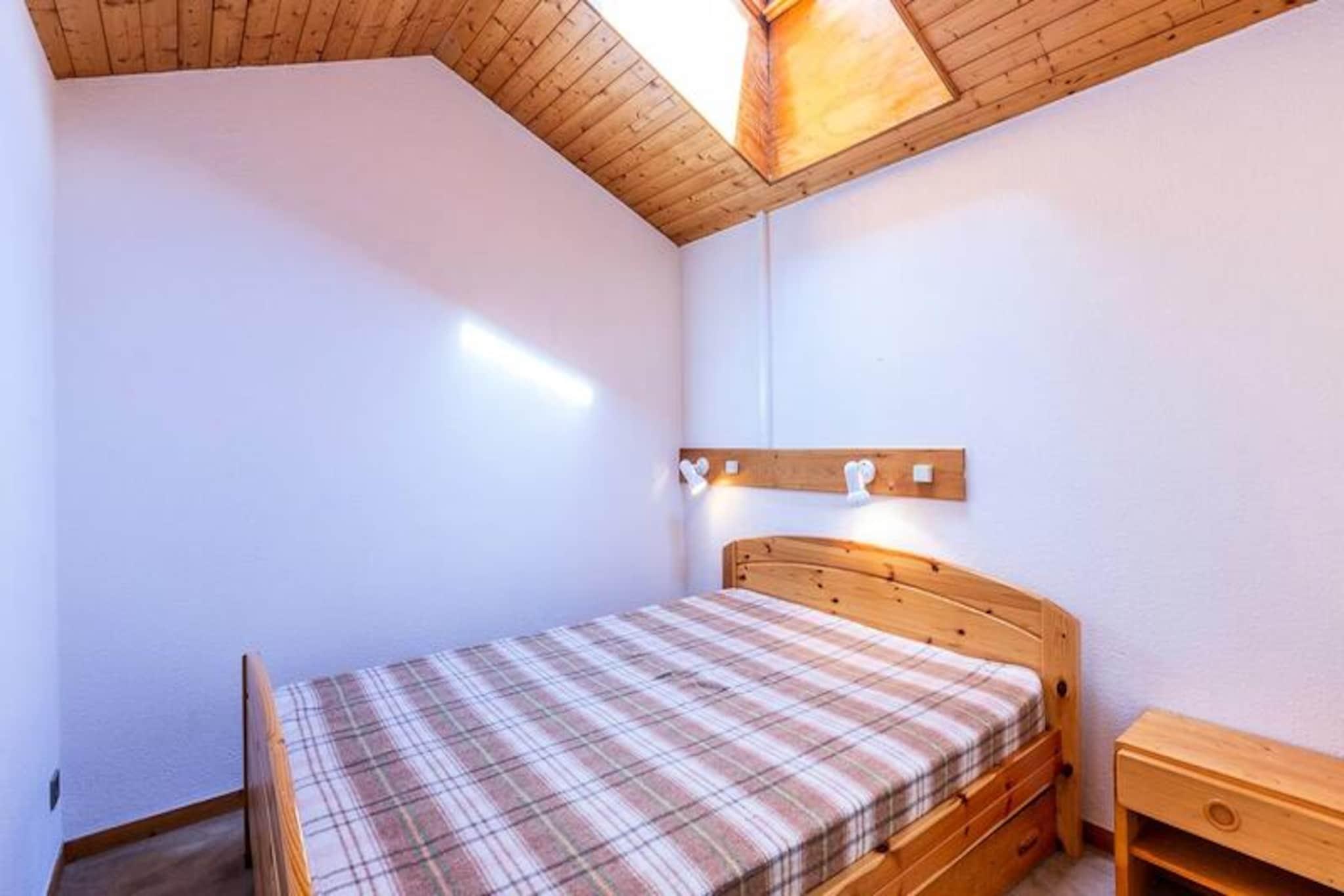 Belägen ovanför den fridfulla sjön Tueda och inramad av den majestätiska Mont Vallon, erbjuder denna charmiga alpina lägenhet i Méribel Mottaret en sömlös blandning av komfort och äventyr. Tänk dig att vakna upp till hisnande utsikt över snötäckta toppar och kliva direkt upp på Aigle-backen för en enkel ski-in/ski-out-upplevelse. Oavsett om du är här för vintersport eller sommarvandringar, placerar denna residens dig i hjärtat av de franska Alpernas naturliga skönhet. Den närliggande ESF-mötesplatsen garanterar enkel tillgång till skidlektioner, medan bergbanan förbinder dig med ortens centrum och butiker för extra bekvämlighet. \n\nInuti är lägenheten omsorgsfullt utformad för upp till nio gäster. Det mysiga vardagsrummet har en bäddsoffa för en enda person, en bekväm soffa och en TV, vilket skapar ett välkomnande utrymme att varva ner efter en dag med alpina äventyr. Pentryt är fullt utrustat med moderna apparater, inklusive keramikhäll, ugn, mikrovågsugn, diskmaskin och kaffebryggare, vilket gör matlagningen till en barnlek. På övervåningen har mezzaninen två sovrum på vinden – ett med tre enkelsängar och ett med en dubbelsäng – samt ett duschrum med toalett. Ett separat sovrum med dubbelsäng och ett badrum på bottenvåningen garanterar avskildhet och komfort för alla gäster. Balkongen erbjuder en lugn plats att njuta av utsikten över bergen, medan bekvämligheter som skidförvaring och hiss förbättrar din vistelse.\n\nLes Plattières har ett perfekt läge för att utforska Méribel Mottarets sevärdheter. Förutom skidåkning förvandlas området till ett sommarparadis med vandringsleder, livlig alpin flora och den skimrande sjön Tueda. Boka en parkeringsplats för extra bekvämlighet och njut av närliggande butiker och restauranger. Oavsett om du söker spännande backar eller fridfulla stunder i naturen, är denna lägenhet din port till oförglömliga alpina minnen.