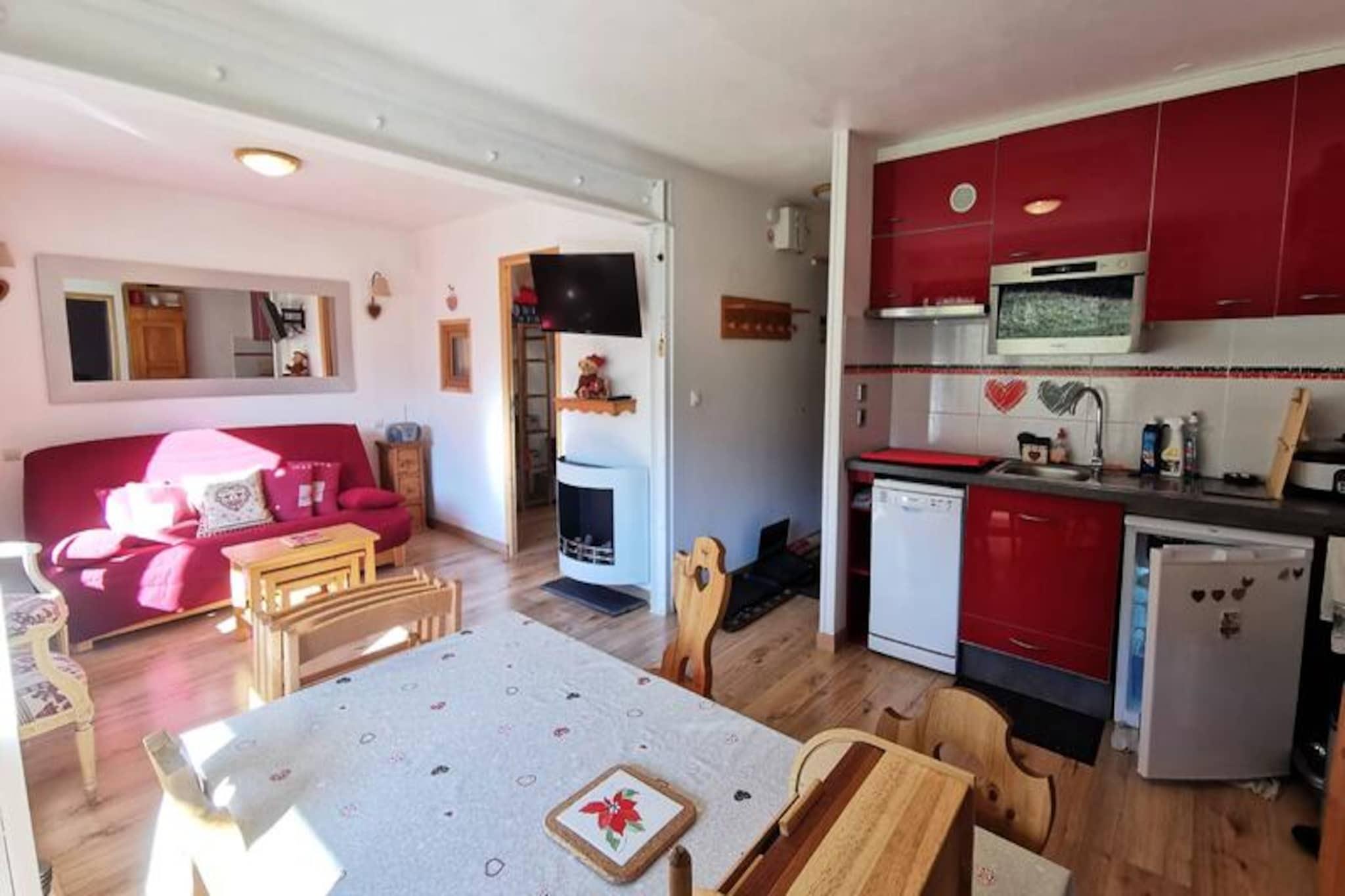 Belägen i det lugna nedre Mottaret-området i Méribel, erbjuder denna charmiga lägenhet en sömlös ski-in/ski-out-upplevelse, vilket gör den till en drömdestination för vintersportsentusiaster. Tänk dig att vakna upp till den friska alpluften, kliva ut på din privata balkong och titta på de snötäckta backarna som sträcker sig framför dig. Med direkt tillgång till pisterna börjar ditt äventyr i samma ögonblick som du kliver ut, medan det närliggande Roc de Tougne-residenset garanterar lugn borta från det livliga centrumet, men ändå bara en kort promenad från alla dess bekvämligheter. \n\nInuti kombinerar lägenheten modern komfort med alpin charm. Det ljusa vardagsrummet har en mysig bäddsoffa, fåtöljer och en TV, vilket skapar ett välkomnande utrymme att varva ner efter en dag i backarna. Det fullt utrustade öppna köket inbjuder dig att laga rejäla måltider, medan master-sviten erbjuder flexibilitet med sin bäddbara dubbelsäng, eget badrum och privat balkong för stunder av lugn. Ett separat fjällhörna med våningssängar, ett omklädningsrum och en pjäxtork säkerställer praktisk användning för familjer eller grupper. Ytterligare bekvämligheter inkluderar ett duschrum, säkra skidförvaringsskåp och rökfria policyer för att garantera en trevlig vistelse.\n\nRoc de Tougne-residenset är idealiskt beläget bara fem minuter från ortens centrum, där du hittar ESF:s skidskola, turistbyrå och en mängd olika butiker, barer och restauranger. Oavsett om du söker afterski eller en lugn kväll hemma, finns allt inom räckhåll. Méribel Mottarets livliga atmosfär, i kombination med denna lägenhets utmärkta läge och omtänksamma bekvämligheter, lovar en oförglömlig alpin semester. Boka nu för att uppleva magin i de franska Alperna på nära håll.