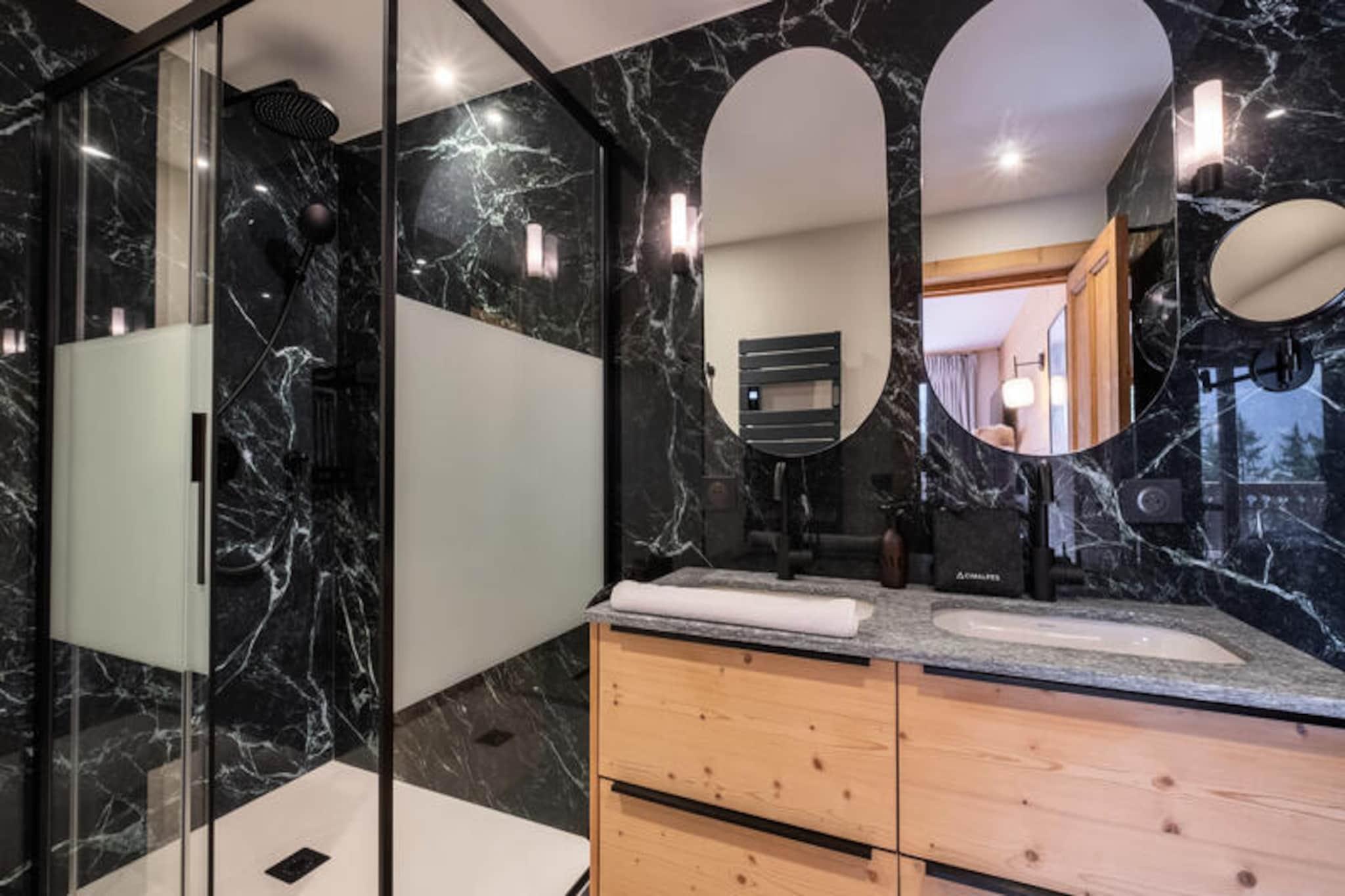 Mitt i den fridfulla charmen i Méribels Belvédère-distrikt erbjuder denna ljusa lägenhet på 110 m² i Ours Brun-residenset en exceptionell alpin tillflyktsort. Omgiven av majestätiska granar och bara några steg från backarna, kombinerar den lugn och ro med bekvämligheten av ski-in/ski-out-åtkomst. Här kan familjer och grupper fördjupa sig i de franska Alpernas skönhet samtidigt som de njuter av närheten till skidskolan och barnområdet vid Rond-Point, bara en kort promenad bort. Den fridfulla miljön kompletteras av områdets tillgänglighet, oavsett om det är till fots, med bil eller med den lokala transferservicen. Inuti garanterar lägenhetens genomtänkta planlösning både komfort och stil. Det rymliga vardagsrummet, badande i naturligt ljus, har en mysig öppen spis, en balkong i söderläge och ett fullt utrustat kök med moderna apparater inklusive Nespressomaskin, induktionshäll och diskmaskin. Fyra inbjudande sovrum erbjuder flexibla sovarrangemang: två med lyxiga dubbelsängar, ett med två enkelsängar och en master suite med eget duschrum och TV. Ytterligare bekvämligheter inkluderar ett separat badrum, ett duschrum med toalett och en tvättmaskin med torktumlare, vilket garanterar en smidig vistelse för upp till åtta gäster. Bortom lägenheten väntar Méribels livliga utbud. Från charmiga butiker och restauranger till spännande skidbackar och afterski-aktiviteter, tillgodoser regionen alla resenärers önskemål. På sommaren förvandlas landskapet till en fristad för vandring, cykling och naturutforskning. Med sitt idylliska läge, moderna bekvämligheter och oöverträffade tillgång till backarna är denna bostad det perfekta valet för att skapa värdefulla alpina minnen året runt.