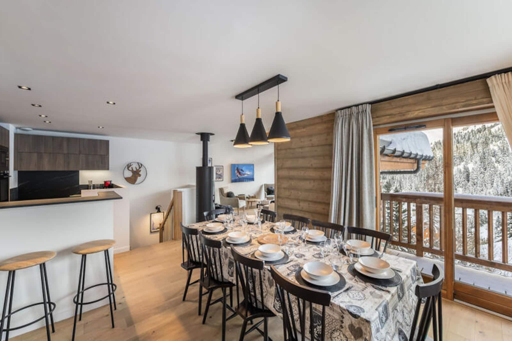 Högt ovanför den pittoreska Tarentaisedalen erbjuder Chalet Marmotte i Méribel-Mottaret en oförglömlig alpin reträtt. Denna parhusstuga, belägen på 1750 meters höjd, kombinerar charmen av traditionellt bergsliv med moderna bekvämligheter. Med panoramautsikt från sina balkonger i österläge är stugan perfekt belägen nära backarna och bara en kort promenad från Mottarets pulserande centrum, där skidbutiker, restauranger och afterski-barer väntar. Oavsett om du är här för spänningen med skidåkning eller naturens lugn, placerar denna stuga dig i hjärtat av allt. Chalet Marmotte, som sträcker sig över fyra våningar och är cirka 150 m² stor, är utformad för att rymma upp till 8 vuxna och 2 barn. Stugan har fyra rymliga sovrum, inklusive en lyxig mastersvit med bubbelbadkar och ett mysigt sovrum med bäddsoffa. Vardagsrummet och matsalen i öppen planlösning, komplett med en vedeldad spis, inbjuder dig att varva ner efter en dag i backarna. Det fullt utrustade köket har moderna apparater, inklusive en Nespressomaskin och ett fondue-set, perfekt för att skapa minnesvärda måltider. Ytterligare bekvämligheter inkluderar ett skidförvaringsskåp med pjäxtork, en tvättstuga och privat parkering för upp till tre fordon. Bortom stugan erbjuder Méribel-Mottaret oöverträffad tillgång till skidområdet Les Trois Vallées, det största i världen. Den närliggande