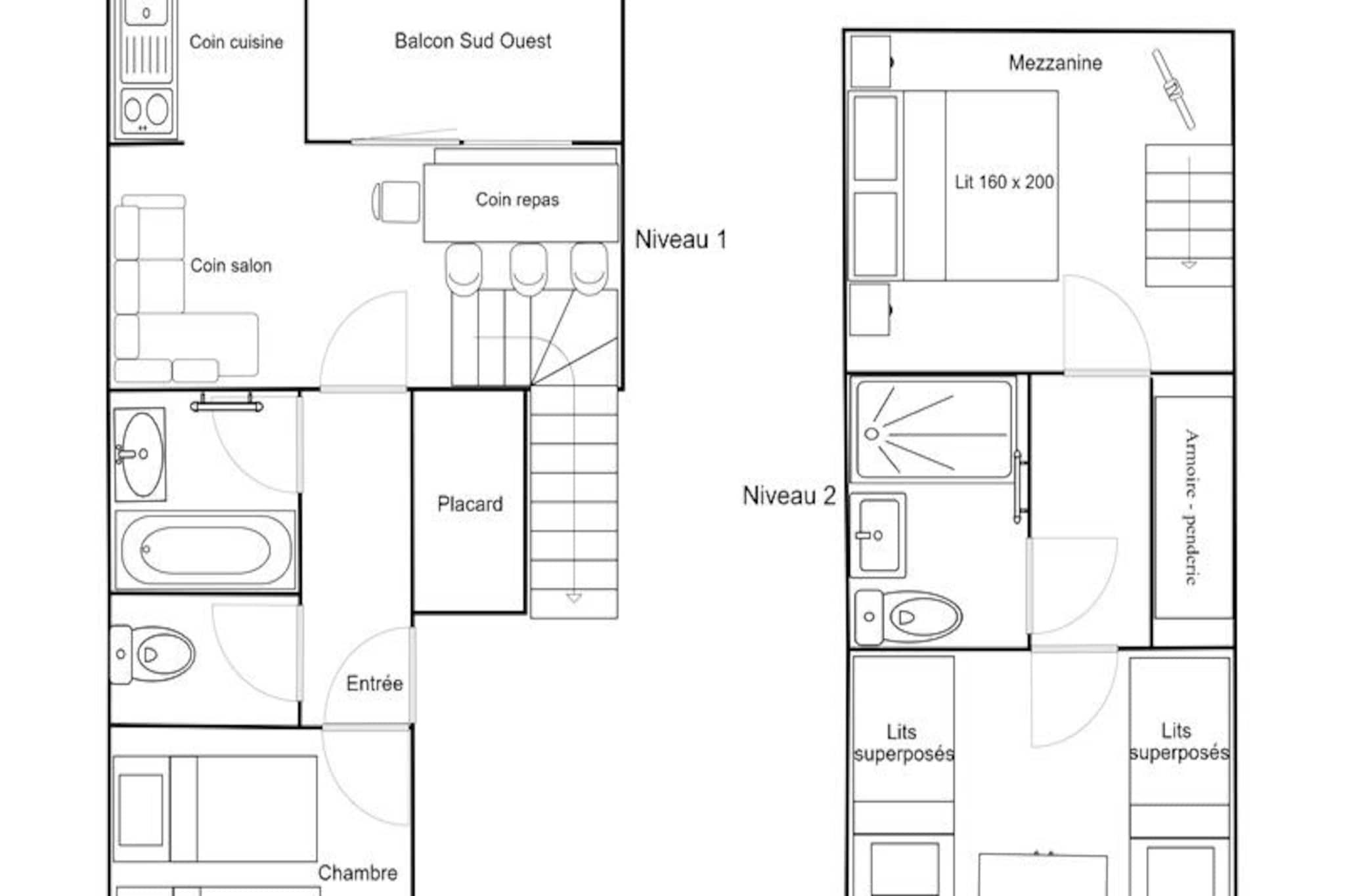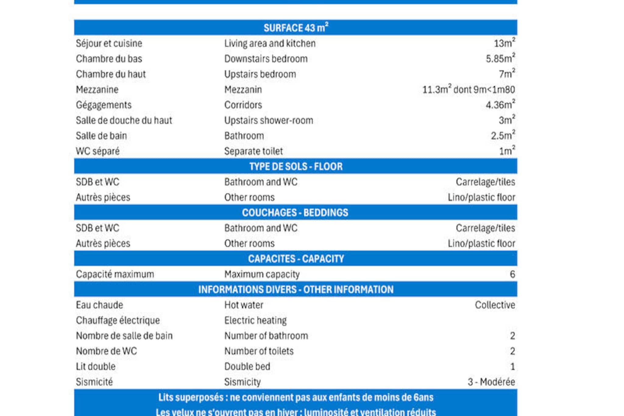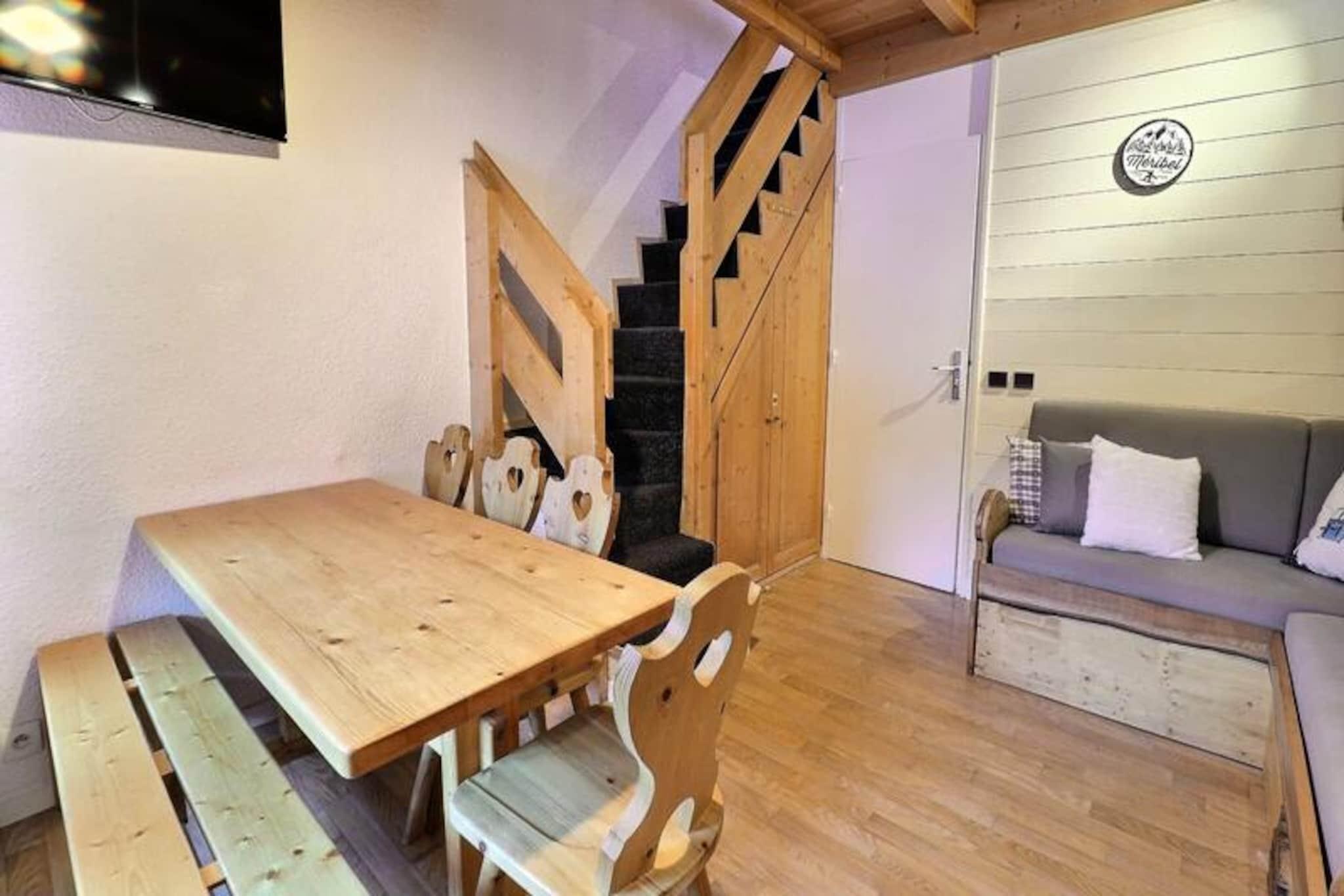 Högt ovanför den pittoreska dalen Méribel erbjuder denna charmiga duplexlägenhet i Creux de l'Ours-residenset en oförglömlig alpin flykt. Belägen i det lugna Hameau-området i Laitelet, är fastigheten perfekt placerad vid foten av backarna, vilket garanterar enkel tillgång till de orörda skidbackarna i Les Trois Vallées. Tänk dig att vakna upp till den friska bergsluften, gå ut på din sydvästvända balkong och njuta av den hisnande utsikten över snötäckta toppar och solbelysta stigar. Denna mysiga tillflyktsort är perfekt för familjer eller små grupper som söker både äventyr och avkoppling i hjärtat av de franska Alperna. \n\nLägenheten rymmer bekvämt upp till sex gäster i sina omsorgsfullt utformade utrymmen. På bottenvåningen hittar du ett välkomnande vardagsrum med matplats, ett öppet kök utrustat med moderna apparater inklusive en kombinerad mikrovågsugn/grillugn, kylskåp, diskmaskin och keramikhäll. Det första sovrummet har två enkelsängar, medan mezzaninen på övervåningen erbjuder en dubbelsäng med takfönster och en platt-TV för mysiga kvällar. Ett extra sovrum med våningssängar och ett duschrum med toalett kompletterar planlösningen, vilket garanterar komfort och bekvämlighet för alla. Gratis Wi-Fi finns tillgängligt, även om bandbredden kan vara begränsad, vilket gör att du kan hålla dig uppkopplad medan du njuter av lugnet i bergen. \n\nStig ut, och du är bara några minuter från den gröna nedfarten som leder till skidliftens huvudavgångspunkt. Chalets linbana, som är i drift från tidig morgon till sen kväll, ger gratis och enkel tillgång till Hameau och Laitelet-området, vilket gör det enkelt att utforska regionens backar i världsklass och livliga afterski-scen. Närliggande butiker och faciliteter säkerställer att allt du behöver finns inom räckhåll, medan Méribels charm lockar med sina mysiga restauranger, livliga barer och traditionella alpina atmosfär. \n\nOavsett om du är här för att åka genom färskt pudersnö, vandra på natursköna stigar eller bara varva ner mitt i fantastisk naturskönhet, erbjuder detta boende den perfekta basen för en oförglömlig bergssemester. Låt Creux de l'Ours bli ditt hem hemifrån i de förtrollande franska Alperna.