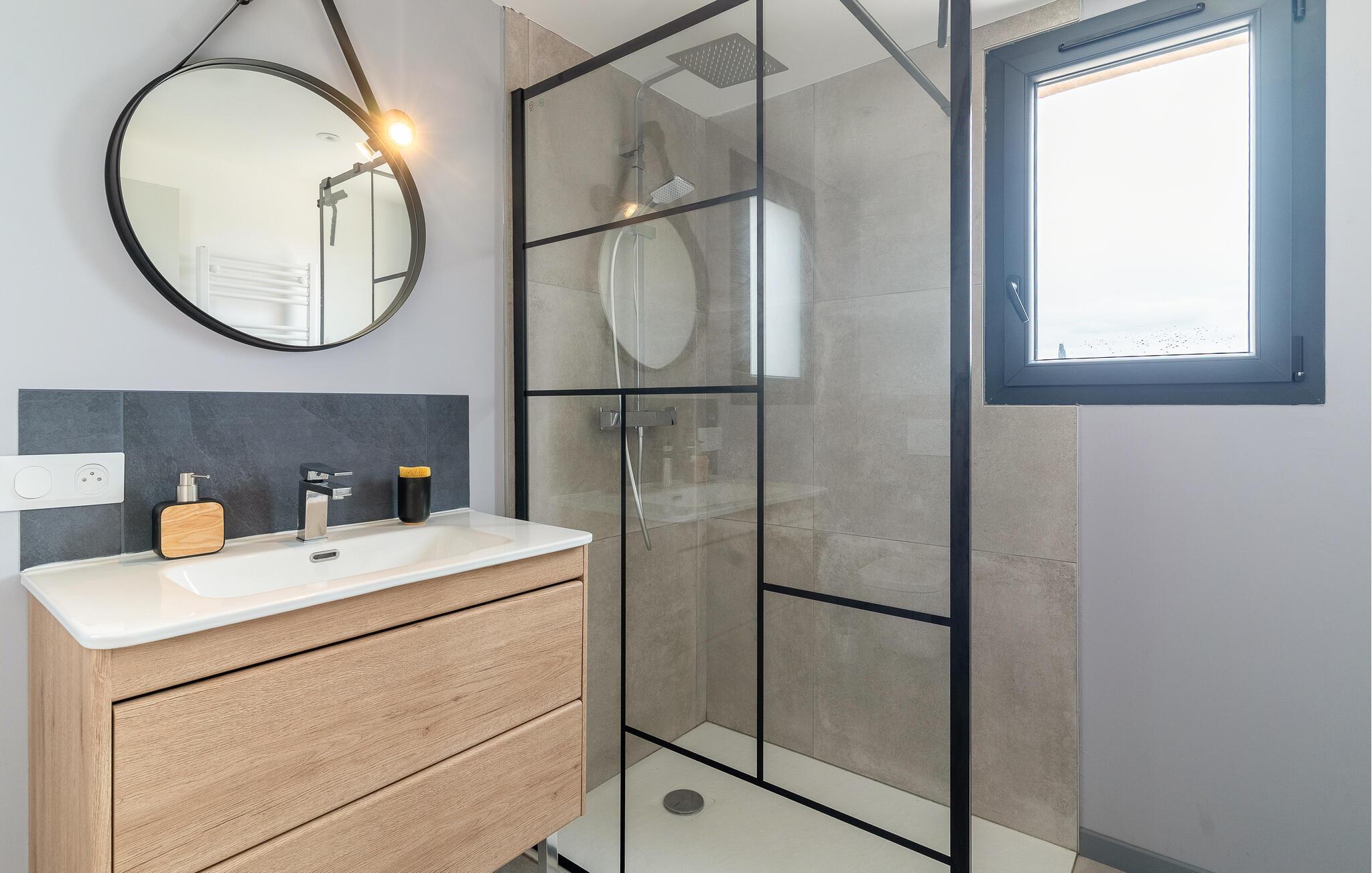 Detta moderna semesterhus inbjuder dig att tillbringa harmoniska dagar i de ljusa och smakfullt inredda rummen. Tillaga kulinariska läckerheter i det rymliga köket och njut av dina måltider i den eleganta matplatsen. Koppla av i det mysiga vardagsrummet med en god bok eller en kväll med spel.