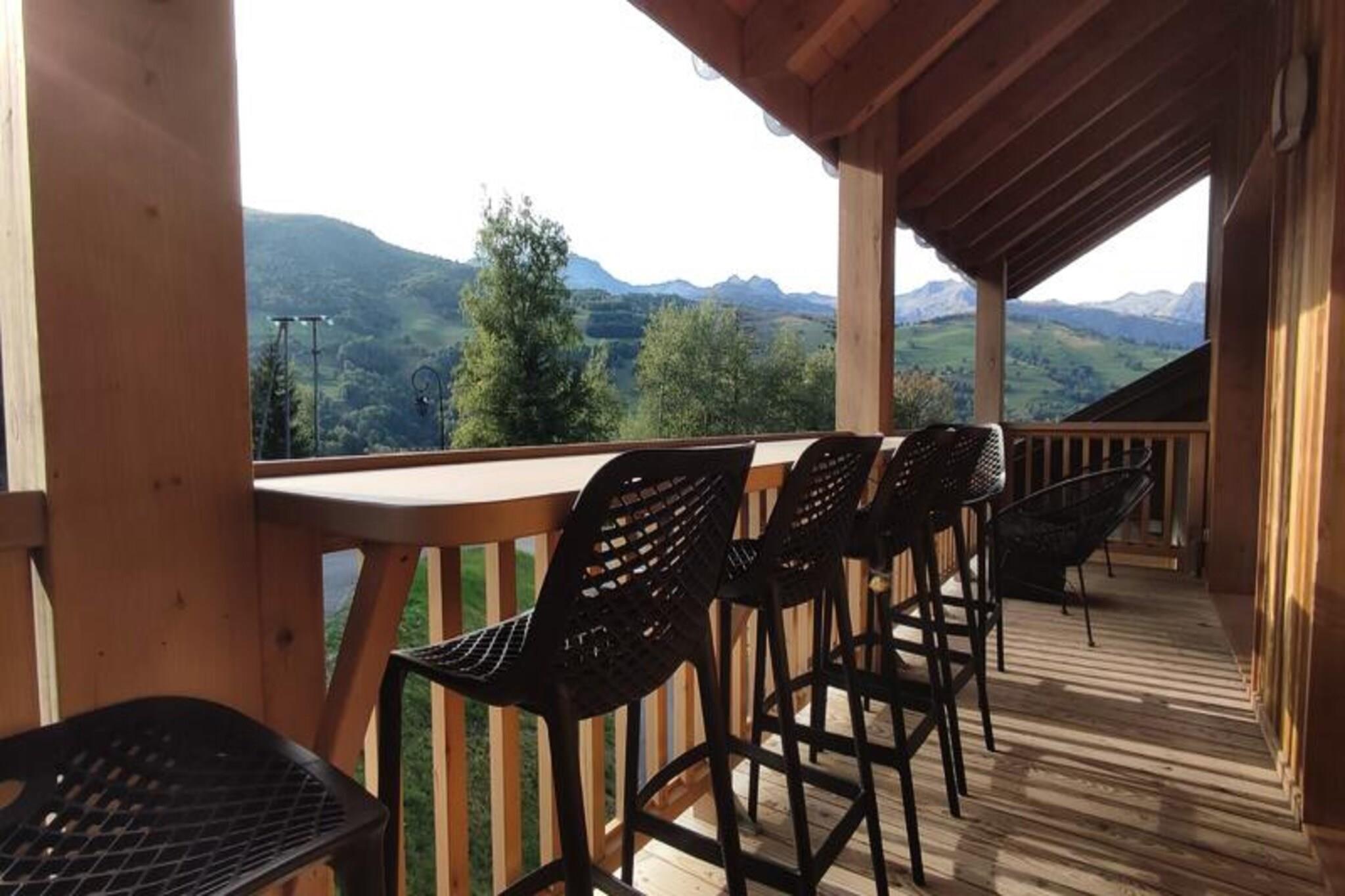 This 66 m² apartment, located on the 5th floor of a luxury residence, comfortably accommodates 7 guests with 2 bedrooms. Bedroom 1 features 2 single beds and a bunk bed, while Bedroom 2 has a double bed with a private bathroom. The apartment is non-smoking, pet-free, and includes Wi-Fi, satellite TV, underfloor heating, and 2 underground parking spaces. Bed linen, bathroom linen, and end-of-stay cleaning are included, excluding the kitchen and dishes. Located just 50 meters from the slopes, the apartment offers ski-in/ski-out access and is easily accessible by free public shuttle to the resort center. La Charmette is 3 km from Valmorel’s shops, and the area offers plenty of hiking, mountain biking, and snow sports activities. Restaurants, local markets, and a ski shop are nearby, making it a perfect spot for both winter and summer vacations. The apartment features a fully equipped kitchen with a dishwasher, induction hob, oven, microwave, two fridges, Nespresso coffee machine, and a raclette grill. The spacious living room includes a sofa bed, TV, and dining area, while the large south-west facing balcony offers stunning mountain views and sunsets. A laundry room with a washer and dryer is available for convenience.