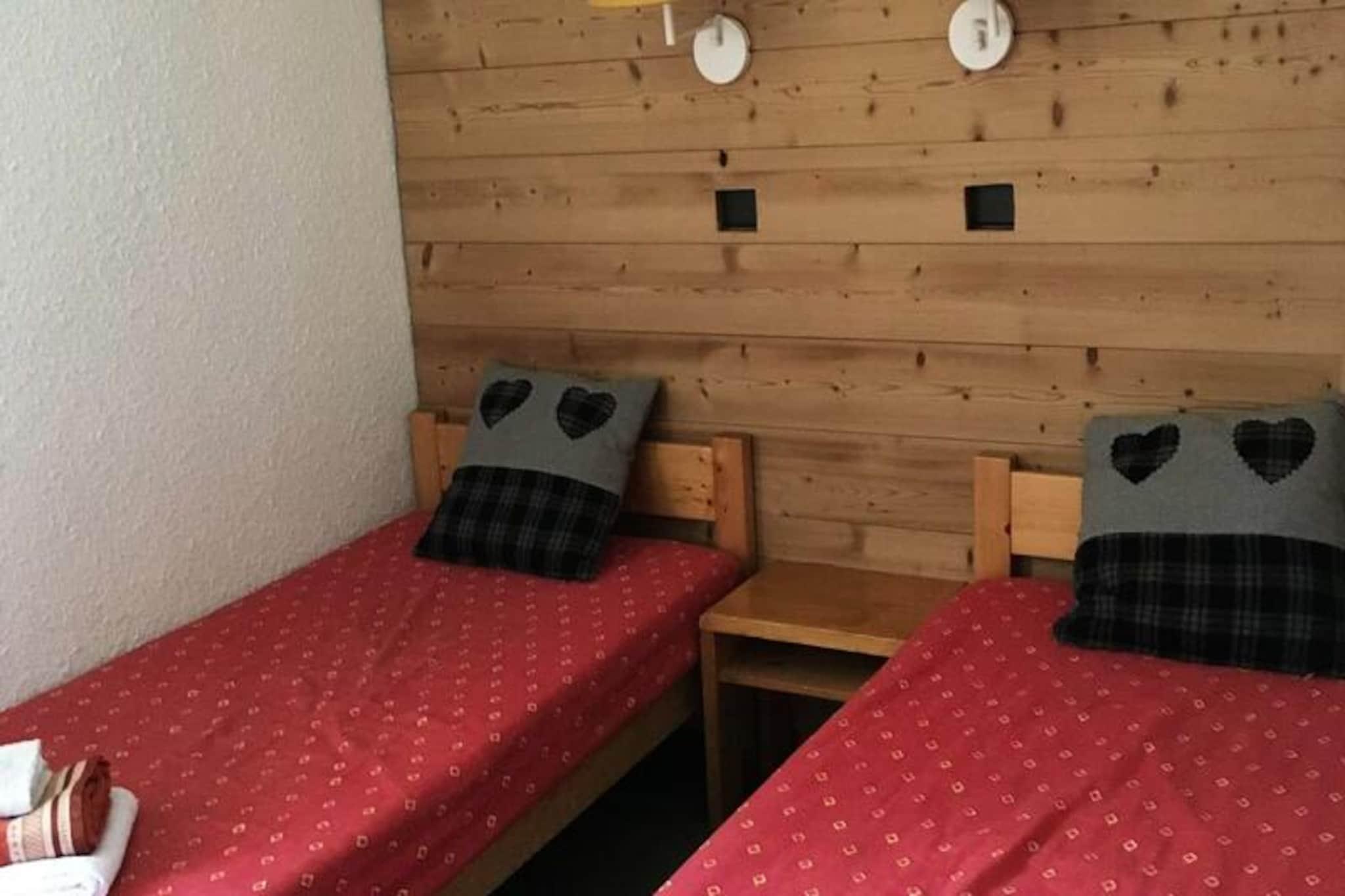 This cozy 2-room apartment accommodates up to 4 people. The living room and bedroom each feature 2 single beds, with duvets provided for all beds. The apartment is non-smoking, and pets are accepted under specific conditions for an additional fee. Linen and cleaning services are available for an extra charge, and the tourist tax is not included in the rental price. A balcony offers a relaxing space to enjoy the views. Located in the hamlet of Mottet, the apartment is ideally situated just 1 minute from the ESF lessons and 5 minutes from the Piou Piou club, making it perfect for families. It is also at the foot of the slopes for easy access to skiing and other winter sports. Local shops are just 5 minutes away, providing cafes, markets, and essential services, so guests can easily enjoy the local atmosphere. The apartment is equipped with a kitchenette featuring a Surfline refrigerator, Vedette Atoll dishwasher, and 2 electric hotplates. A Rowenta mini oven, coffee maker, kettle, and toaster ensure you can prepare your meals with ease. The bathroom and separate toilet offer added convenience, and heating ensures a comfortable environment throughout your stay. For entertainment, a TV is available for your enjoyment.