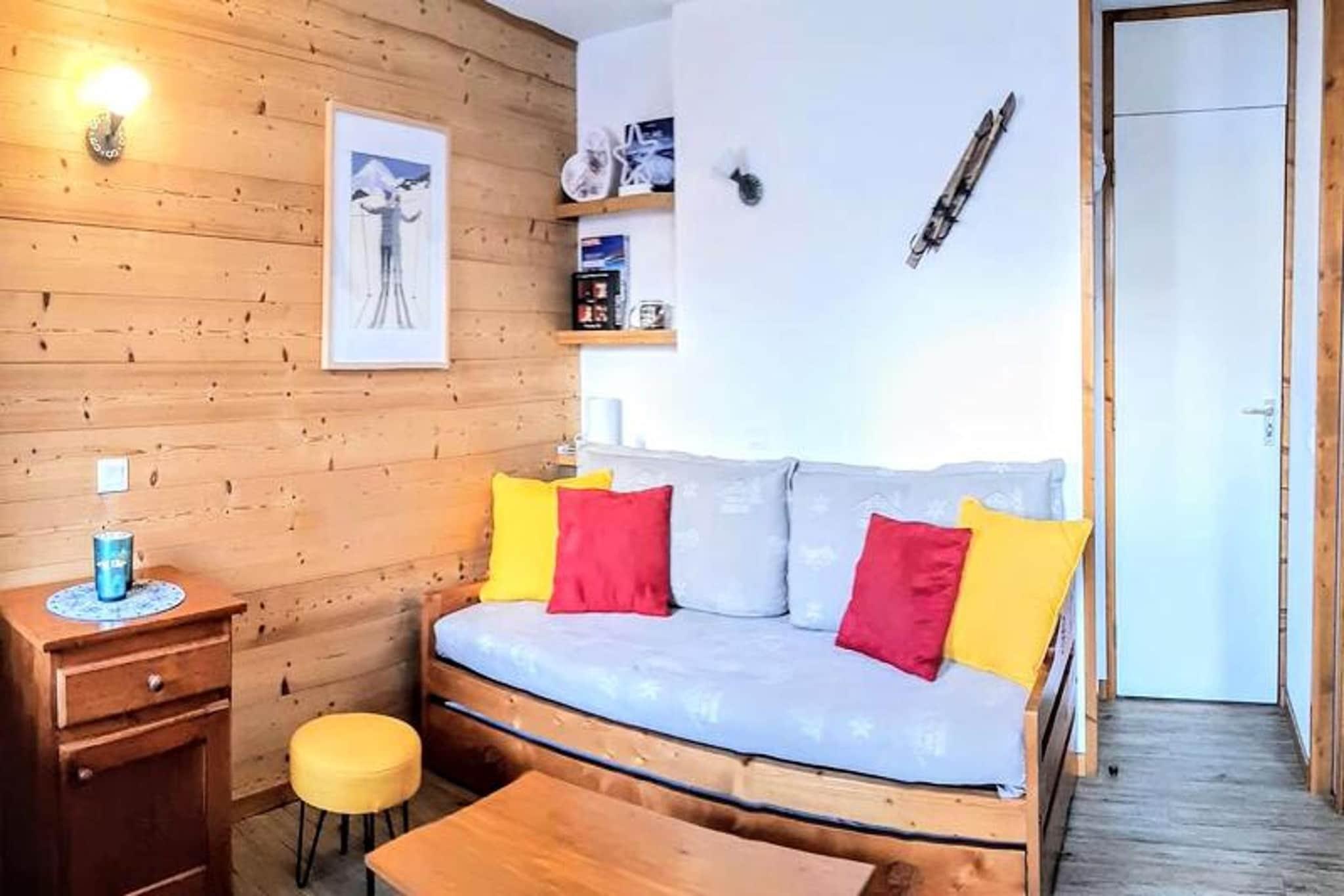 This charming 3-star apartment in the hamlet of Crève Coeur can accommodate up to 5 guests. It features a main room with a movable partition, creating a flexible space, and a separate sleeping area at the entrance. The living area offers 2 single sofa beds and 2 pull-out beds, while the entrance has a set of bunk beds. The apartment is non-smoking, pets are not allowed, and it is equipped with modern amenities including a TV, hair dryer, and a range of appliances. Please note that linen and cleaning services are available for an additional charge. Located just 5 minutes from the ESF course departures and the Piou Piou club, this apartment is ideally positioned for easy access to the resort center. It is also only 2 minutes away from the slopes and local shops, making it perfect for those looking to enjoy the skiing and amenities nearby. The area offers a variety of cafes and markets, perfect for après-ski relaxation or stocking up on essentials. The apartment comes with an independent kitchen, including a microwave, fridge, dishwasher, hob, and a full set of kitchenware. You’ll find everything you need for a self-catering stay, including a coffee maker, toaster, blender, and even a raclette and fondue set. A bathroom with a bathtub and a separate toilet add to the convenience of this cozy retreat.