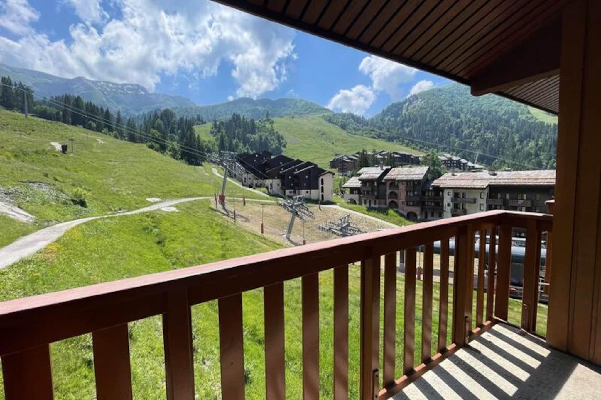 Högt ovanför Valmorels pittoreska sluttningar erbjuder denna inbjudande lägenhet en perfekt blandning av komfort och bekvämlighet för din alpina semester. Belägen på 5:e våningen i Le Pierrafort-residenset, har den direkt tillgång till ski-in/ski-out, vilket gör att du kan kliva direkt ut i snön och börja din äventyrsdag. Balkongen i söderläge erbjuder fantastisk utsikt över backarna, vilket gör den till en idealisk plats att njuta av ditt morgonkaffe eller varva ner efter en dag i pisterna. Oavsett om du är här för vintersport eller sommarvandringar, sätter det hisnande landskapet tonen för en oförglömlig vistelse. \n\nInuti sträcker sig lägenheten över 43 m² och är omsorgsfullt utformad för att rymma upp till sex gäster. Den ljusa och funktionella planlösningen inkluderar tre separata sovområden: ett vardagsrum med en bäddsoffa för en person och en utdragssäng, ett mysigt sovrum med två enkelsängar och en mezzanin med två extra enkelsängar. Köket är fullt utrustat med elektrisk spis, diskmaskin, ugn och mikrovågsugn, vilket gör det enkelt att laga rejäla måltider för att ladda batterierna efter dina äventyr. Ytterligare bekvämligheter inkluderar ett badrum med tvättmaskin och en separat toalett, vilket garanterar bekvämlighet under hela din vistelse. Observera att Wi-Fi inte ingår, och lägenheten är rökfri och husdjursfri.\n\nLe Pierrafort-residenset har ett perfekt läge i Crève Coeur-distriktet, bara 50 meter från butiker och Télébourgs skidlift, och 300 meter från ESF-skidskolan. Avgiftsbelagd parkering finns precis framför residenset, vilket gör det enkelt för gäster att komma och gå. Crève Coeur-området är anslutet till semesterorten och byn Mottet via Télébourgs linbana, vilket erbjuder tillgång till en mängd olika bekvämligheter, inklusive ett bageri, en minilivs och en sportaffär.\n\nOavsett om du söker spännande skidbackar, natursköna vandringsleder eller bara en mysig tillflyktsort i hjärtat av de franska Alperna, erbjuder denna lägenhet den perfekta basen för ditt Valmorel-äventyr. Med sitt oslagbara läge och charmiga atmosfär är det en plats där minnen skapas året runt.