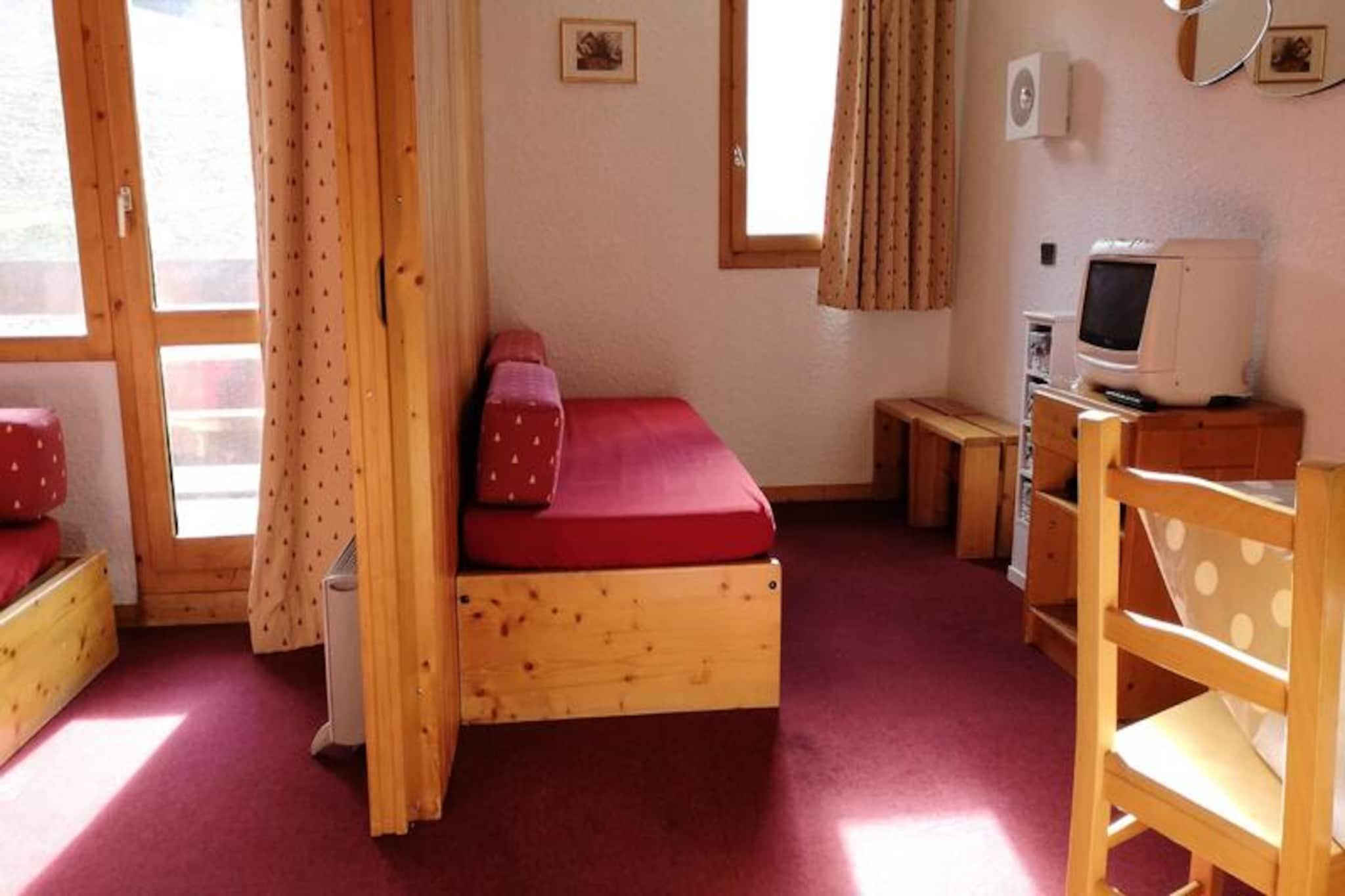 I utkanten av den pittoreska byn Crève Coeur i Valmorel erbjuder denna charmiga studiolägenhet en mysig alpin tillflyktsort med direkt tillgång till backarna bara några steg bort. Tänk dig att vakna upp till de franska Alpernas fridfulla skönhet, kliva ut på din balkong i söderläge för att njuta av fri utsikt över de omgivande topparna och ge dig direkt in i en dag med spännande skidäventyr. Residenset Le Gollet utstrålar traditionell savoyardsk charm med sin sten- och träkonstruktion som smälter sömlöst in i bergslandskapet. Oavsett om du är här för vintersport eller sommarvandringar, erbjuder detta läge den perfekta basen för din alpina flykt. \n\nLägenheten är omsorgsfullt möblerad för komfort och praktisk användning. Köket är fullt utrustat med elektrisk spis, diskmaskin, ugn, mikrovågsugn och kylskåp, vilket gör det enkelt att laga mat efter en dag i backarna. Det delbara vardagsrummet har en bäddsoffa med en utdragssäng och två enkelbäddsoffor, vilket säkerställer flexibla sovarrangemang för upp till fyra gäster. Ett separat badrum och toalett ger extra bekvämlighet, medan balkongen i söderläge inbjuder dig att koppla av och njuta av bergsluften. Skidförvaring finns i bostaden, vilket gör det enkelt att förvara din utrustning. Observera att Wi-Fi inte ingår och att lägenheten är rökfri och inte tillgänglig för gäster med nedsatt rörlighet. Ytterligare tjänster som slutstädning, sängkläder och handdukar kan bokas i förväg.\n\nByggnaden Crève Coeur har ett idealiskt läge och erbjuder enkel tillgång till semesterortens centrum och byn Mottet via linbanan Télébourg. I närheten hittar du viktiga butiker, inklusive ett bageri, en liten mataffär och en sportaffär, vilket säkerställer att alla dina behov tillgodoses under din vistelse. Avgiftsbelagd parkering finns bekvämt belägen vid foten av bostaden. Gästerna berömmer konsekvent denna lägenhet för dess komfort och läge, med ett genomsnittligt betyg på 7,79/10.\n\nOavsett om du söker spänningen med skidåkning, lugnet i alpina vandringar eller helt enkelt en lugn tillflyktsort omgiven av hisnande landskap, lovar denna studiolägenhet i Valmorel en oförglömlig bergssemester.