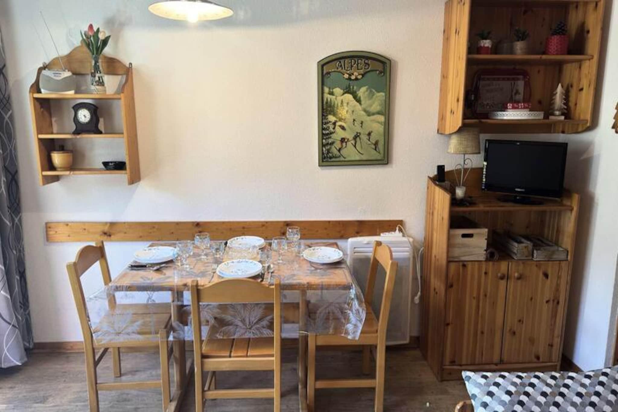 Högt ovanför den pittoreska byn Fontaine erbjuder denna charmiga studiolägenhet en mysig tillflyktsort för upp till tre gäster, perfekt belägen för dem som söker en lugn alpin tillflykt. Föreställ dig morgnar fyllda med frisk bergsluft och kvällar tillbringade med att titta på de stjärnklara backarna från din privata balkong. Oavsett om du är här för spänningen med skidåkning eller naturens lugn, placerar denna fastighet dig mitt i händelsernas centrum samtidigt som den bibehåller en fridfull atmosfär. \n\nLägenheten har ett omsorgsfullt utformat kök och vardagsrum med öppen planlösning, komplett med moderna bekvämligheter som kylskåp, diskmaskin och raclettegrill för rejäla måltider efter en dag av äventyr. Vardagsrummet är möblerat med en bekväm bäddsoffa och två våningssängar, alla utrustade med mysiga täcken för att garantera vilsamma nätter. Ett kompakt men funktionellt badrum bidrar till bekvämligheten, medan balkongen inbjuder dig att varva ner och njuta av den alpina utsikten. Husdjur är välkomna under vissa villkor, vilket gör detta till ett utmärkt val för familjer eller par som reser med pälsklingar. \n\nDenna studiolägenhet ligger vid foten av backarna, bara 10 minuter från ESF:s skidskola och Piou Pious barnklubb, vilket gör den idealisk för både nybörjare och erfarna skidåkare. Butiker ligger en kort 8 minuters promenad bort, vilket garanterar enkel tillgång till nödvändigheter och lokala delikatesser. På vintern lockar backarna till oändliga skidäventyr, medan sommaren förvandlar området till en fristad för vandring och utforskning av de omgivande lederna. \n\nOavsett om du dras av bergens lockelse eller det bekväma läget, lovar denna studiolägenhet en minnesvärd vistelse i de franska Alperna. Boka din resa idag och fördjupa dig i Fontaines skönhet och charm.