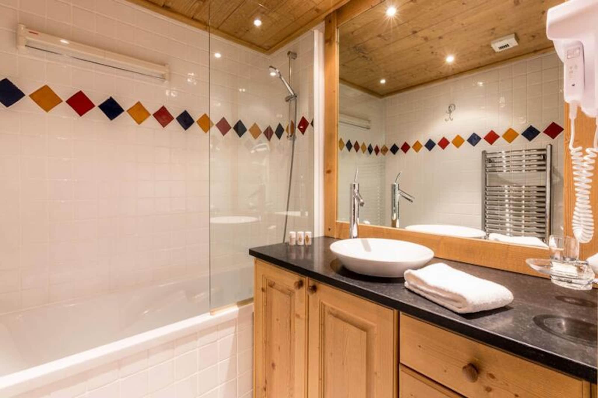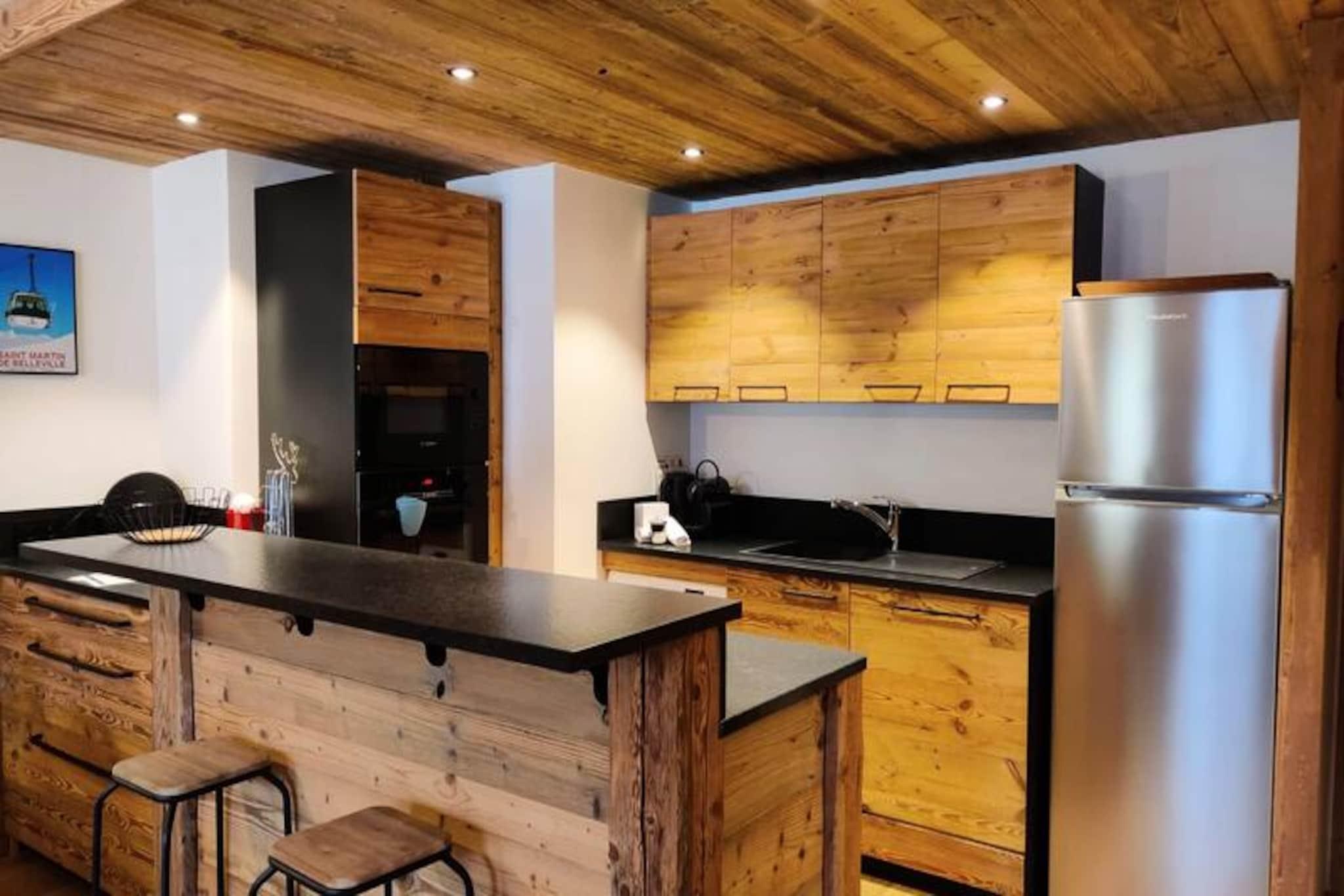 I den pittoreska byn Saint Martin de Belleville erbjuder denna lyxiga lägenhet med 2 sovrum en lugn tillflyktsort med oöverträffade bekvämligheter. Tänk dig att vakna upp till hisnande utsikt över backarna och den charmiga byn från din sydvästvända balkong, där den friska bergsluften väcker dina sinnen. Detta är en plats där modern komfort möter alpin charm, vilket skapar den perfekta miljön för en oförglömlig semester i hjärtat av skidområdet Les 3 Vallées. Lägenheten på 67 m² är omsorgsfullt utformad med mysig inredning i chaletstil och moderna detaljer. Det rymliga vardagsrummet inbjuder dig att koppla av efter en dag av äventyr, medan det fullt utrustade köket med öppen planlösning gör det enkelt att laga mat med familj eller vänner. De två sovrummen erbjuder vilsamma tillflyktsorter: ett med dubbelsäng och eget duschrum, och det andra med två enkelsängar. Ytterligare sovplats finns i vardagsrummet med en utdragbar bäddsoffa. Moderna bekvämligheter som tvättmaskin, Bluetooth-högtalare och skidförvaring med pjäxtork säkerställer en smidig vistelse. Gästerna har gratis tillgång till residensens hälsoavdelning med uppvärmd inomhuspool, bastu, hamam, jacuzzi och gym. Efter att ha åkt skidor eller utforskat byn kan du njuta av en avkopplande massage eller varva ner i solariet. Residenset erbjuder även concierge-tjänster, möjlighet att leverera bageri och samarbeten med lokala skidbutiker för extra bekvämlighet. Saint Martin de Belleville är en dold pärla i Alperna, som blandar autentisk charm med tillgång till skidområdet Les 3 Vallées i världsklass. Oavsett om du är här för de orörda backarna, den lugna naturen eller byns rika arv, erbjuder denna lägenhet den perfekta basen för en föryngrande bergssemester.