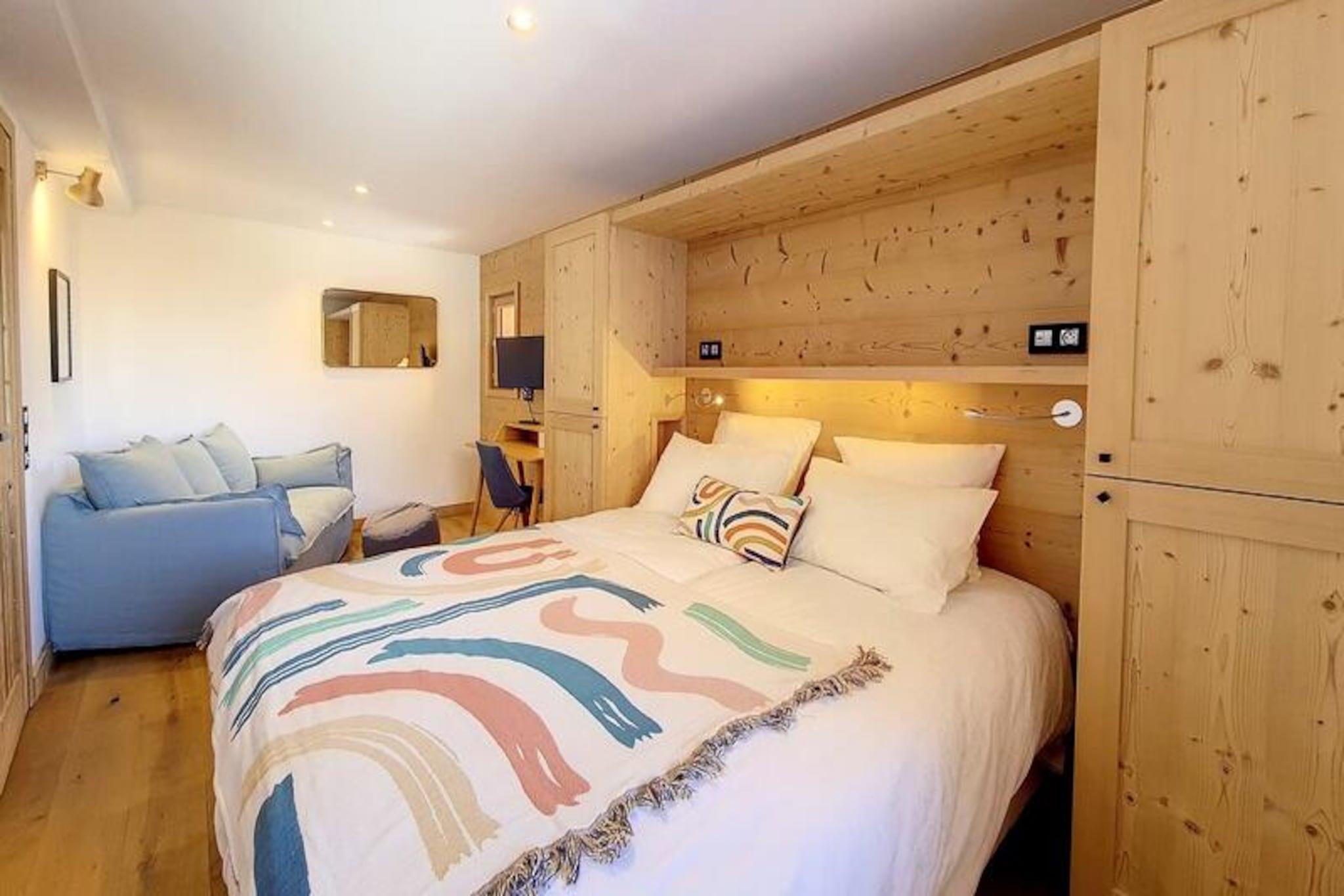 I den fridfulla byn Caseblanche, där charmen av alpint liv möter modern lyx, inbjuder Chalet Cachette dig att uppleva bergens magi. Bara 50 meter från Saint Martin-linbanan erbjuder denna soliga tillflyktsort direkt tillgång till det världsberömda skidområdet Les Trois Vallées, vilket gör det till en drömdestination för vintersportsentusiaster. Med sina pastellfärger och vedeldade spisar utstrålar stugan värme och mysighet och skapar den perfekta miljön för familjesammankomster eller avkopplande utflykter. Chalet Cachette är 90 kvadratmeter stor och rymmer bekvämt upp till åtta gäster. Bottenvåningen har ett fullt utrustat kök med moderna apparater, en matplats och ett vardagsrum som öppnar upp mot en 14 kvadratmeter stor terrass, perfekt för att njuta av den alpina utsikten. Nedre våningen har tre sovrum, inklusive ett dubbelrum med eget badrum, ett våningssängrum och ett tvåbäddsrum med TV-hörna och skrivbord. På övervåningen finns det stora sovrummet med eget badrum och omklädningsrum, vilket erbjuder avskildhet och komfort. Ytterligare bekvämligheter inkluderar en tvättstuga, garage och Wi-Fi, vilket garanterar en smidig vistelse. Utöver stugan erbjuder byn en sportbutik och ett bergsbrasserie, medan concierge-service tillgodoser alla dina behov. Oavsett om du ger dig ut i backarna, utforskar lederna eller bara varvar ner vid brasan, erbjuder Chalet Cachette en idyllisk bas för dina alpina äventyr. Med sin blandning av moderna bekvämligheter och bergscharm lovar denna rökfria, husdjursfria stuga en oförglömlig flykt i hjärtat av de franska Alperna.