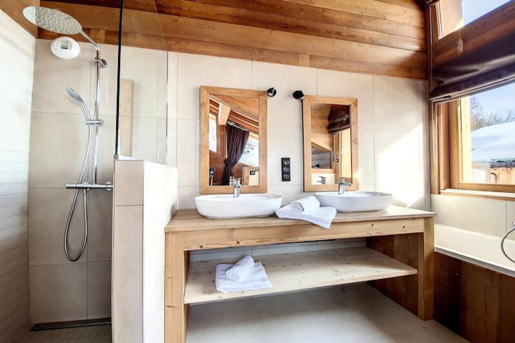 I den fridfulla byn Le Bettex, bara 4 km från de berömda skidorterna Les Menuires och Saint Martin de Belleville, erbjuder Chalet Edelweiss en lyxig alpin tillflyktsort. Denna fridfulla tillflyktsort, inbäddad i ett hisnande bergslandskap, ligger bara 200 meter från Bettex-liften, vilket ger smidig tillgång till det vidsträckta skidområdet Les Menuires. Oavsett om du söker spännande dagar i backarna eller lugna kvällar under stjärnorna, är denna stuga din port till oförglömliga stunder i de franska Alperna. \n\nChalet Edelweiss sträcker sig över imponerande 180 m² i tre våningar och rymmer bekvämt upp till 12 gäster. Bottenvåningen har ett skidförvaringsskåp med pjäxvärmare, vilket säkerställer att din utrustning är redo för nästa äventyr, samt ett sovrum med eget badrum och dubbelsäng. Första våningen är hemmets hjärta, med ett öppet kök och ett mysigt vardagsrum/matsal centrerat kring en öppen spis. Kliv ut på den 40 m² stora terrassen i söderläge för att njuta av panoramautsikten över Cime Caron eller varva ner i bubbelpoolen för 4 personer. De övre våningarna inrymmer ytterligare sovrum med eget badrum, en mezzanin med två enkelsängar och en master suite med omklädningsrum och badrum i öppen planlösning, vilket erbjuder både avskildhet och komfort för varje gäst.\n\nBortom stugan väntar charmen i Le Bettex. Den närliggande stolsliften förbinder dig med skidåkning i världsklass, medan omgivningarna erbjuder möjligheter till snöskor, vandring och att utforska den pittoreska Belleville-dalen. Efter en dag av äventyr kan du återvända till stugan för att koppla av i bastun eller samlas runt eldstaden med nära och kära. Med sin blandning av moderna bekvämligheter och alpin charm är Chalet Edelweiss den perfekta miljön för att skapa värdefulla minnen under alla årstider.