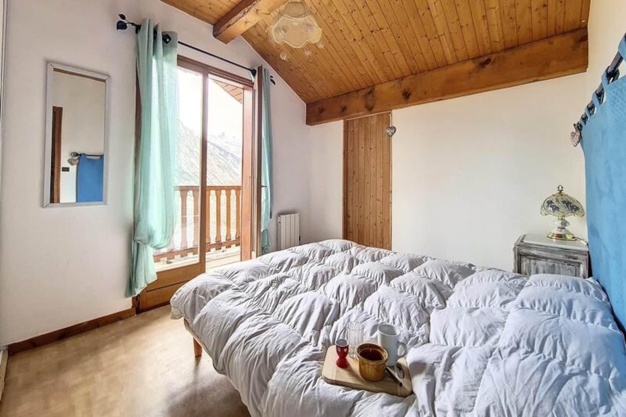 Högt ovanför Bellevilledalen, där alpin lugn möter spännande äventyr, erbjuder detta charmiga familjehus en oförglömlig flykt i Saint Martin de Belleville. På en höjd av 1 450 meter är denna pittoreska by en del av det världsberömda skidområdet Les 3 Vallées, med 600 kilometer orörda backar och toppmoderna faciliteter. Oavsett om du söker spännande pister eller lugna stunder kombinerar Saint Martin exceptionell skidåkning med en varm, autentisk bergslivsstil. Bara 450 meter från byns centrum och skidliften placerar denna fastighet dig i hjärtat av allt. \n\nDetta typiska Bellevilloise-hus sträcker sig över 90 kvadratmeter och rymmer bekvämt upp till sex gäster. Första våningen har ett mysigt vardagsrum och matplats med TV, bäddsoffa och direkt tillgång till en terrass i västerläge, perfekt för att njuta av den alpina utsikten. Köket i öppen planlösning är fullt utrustat med moderna apparater, inklusive diskmaskin, ugn och kaffebryggare, vilket garanterar alla bekvämligheter i ett hem. På övervåningen väntar två inbjudande sovrum: ett med två enkelsängar och balkongutgång, och ett annat med en dubbelsäng och egen balkong. Två badrum, alla med dusch och toalett, erbjuder bekvämlighet för familjer eller grupper. Saint Martin de Belleville erbjuder mer än bara skidåkning. Dess charmiga byatmosfär, lokala butiker och gourmetrestauranger skapar en härlig blandning av aktivitet och avkoppling. På sommaren kan du utforska vandringsleder som slingrar sig genom frodiga ängar och upptäcka hisnande vyer över de omgivande topparna. Med bekvämligheter som sängkläder och handdukar inkluderade under vintervistelser garanterar denna fastighet en smidig och bekväm semesterupplevelse. Oavsett om du är här för puderfyllda äventyr eller lugna alpina flykter, är detta hem din port till magin i Les 3 Vallées.