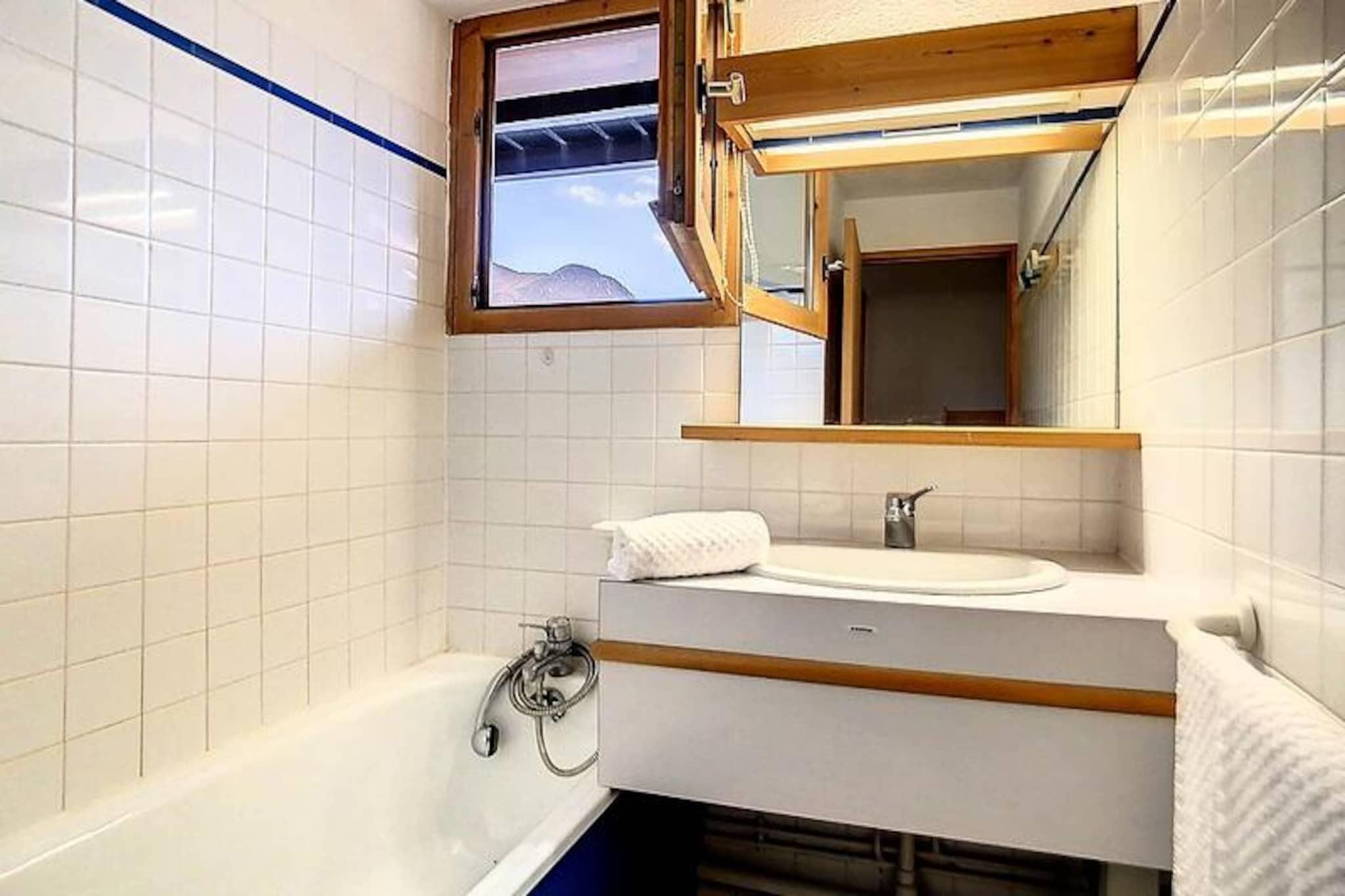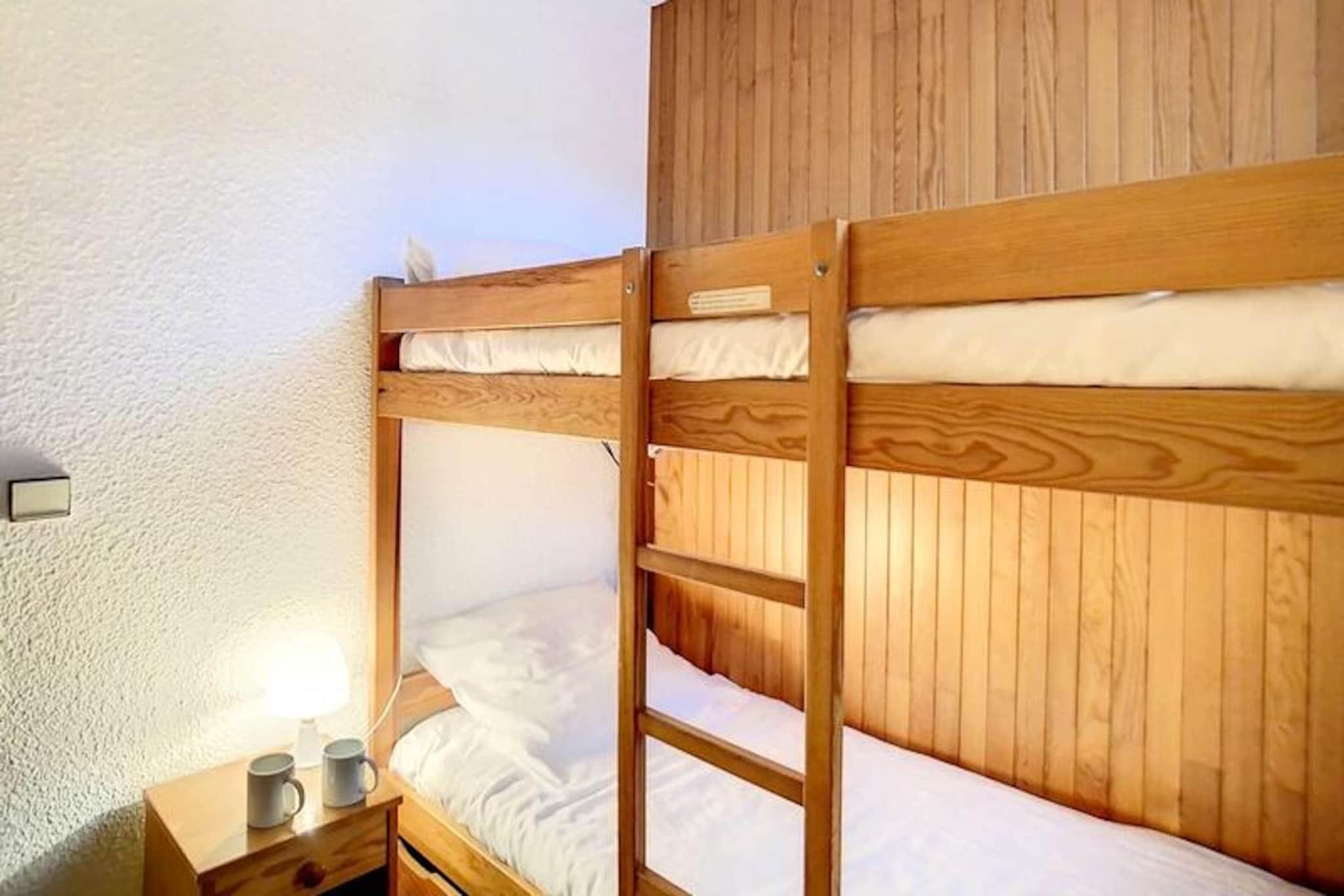 Mitt bland de charmiga gatorna i byns centrum erbjuder denna mysiga lägenhet i HORS PISTE-residenset en inbjudande tillflyktsort för din alpina semester. Med sitt utmärkta läge är du omgiven av lokala butiker, inklusive ett bageri, apotek och sportaffär, vilket garanterar bekvämlighet i varje hörn. Balkongen i västerläge erbjuder en pittoresk utsikt över byn, perfekt för att varva ner efter en dag av utforskning eller skidåkning. Oavsett om du är här för vintersport eller sommarvandringar är atmosfären varm och välkomnande och lovar en minnesvärd vistelse. \n\nDenna omsorgsfullt designade tvårumslägenhet sträcker sig över 30 m² och rymmer bekvämt upp till fyra gäster. Sovrummet har två våningssängar, medan vardagsrummet erbjuder en bäddsoffa för en person och en utdragbar enkelsäng, perfekt för familjer eller små grupper. Köket är utrustat med moderna bekvämligheter, inklusive elektriska spisar, miniugn, kylskåp, diskmaskin och viktiga apparater som vattenkokare och brödrost, vilket gör det enkelt att laga mat hemma. Ett badrum med badkar och separat toalett ökar bekvämligheten, medan lägenhetens rökfria policy garanterar en fräsch och trevlig miljö. \n\nBeläget bara några steg från skidliften är detta boende perfekt för vintersportsentusiaster. Det inkluderade skidskåpet gör förvaring av utrustning problemfritt, medan den täckta parkeringsplatsen ger extra bekvämlighet. Under vintervistelser på sju nätter eller mer får gästerna gratis sängkläder, handdukar och andra nödvändigheter levererade direkt till lägenheten. \n\nOavsett om du dras till spänningen i backarna eller lugnet i byn, erbjuder denna lägenhet den perfekta basen för att utforska de franska Alpernas skönhet. Med sin blandning av komfort, praktiska egenskaper och oslagbara läge är det ett idealiskt val för din nästa bergsresa.