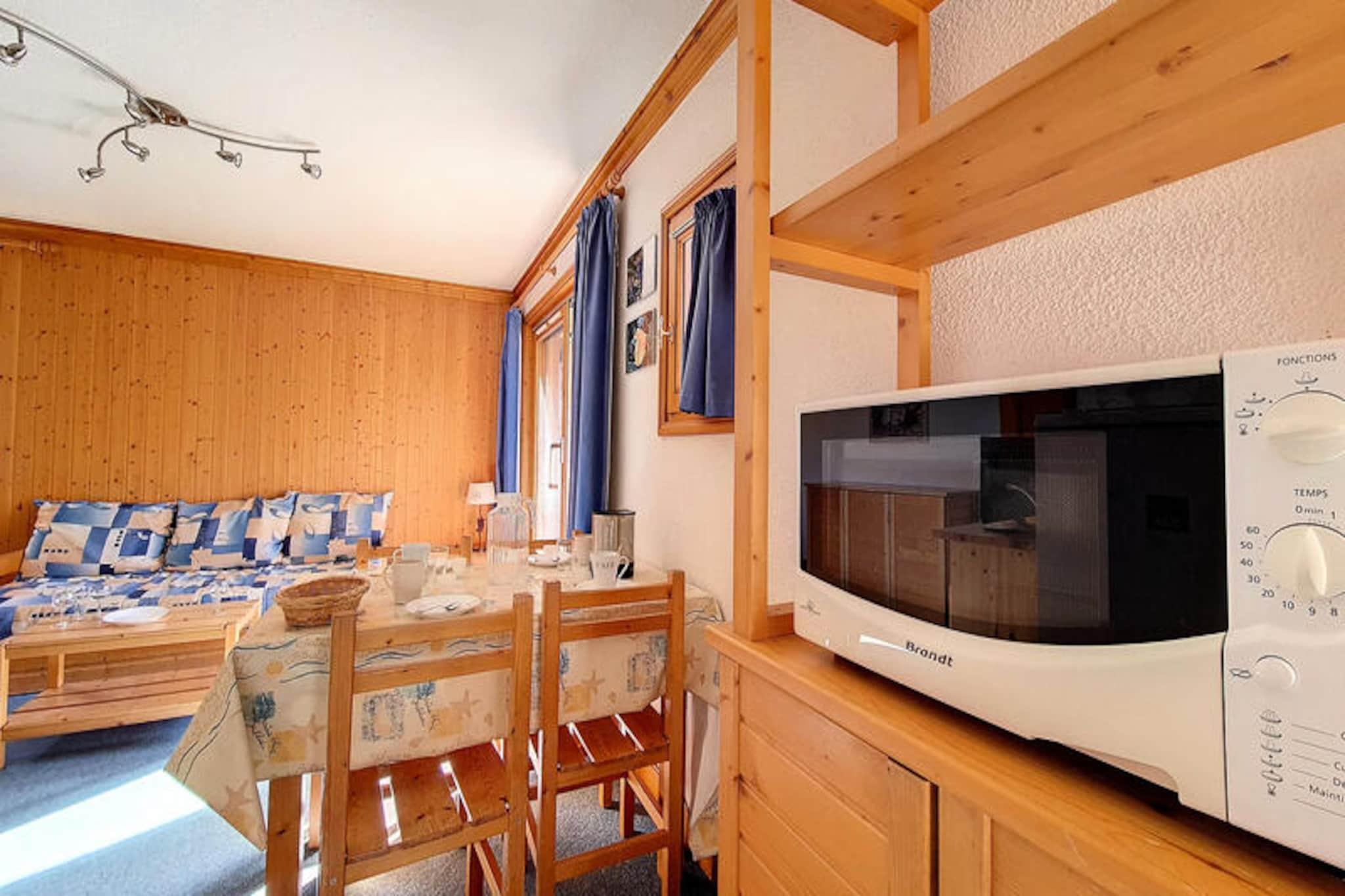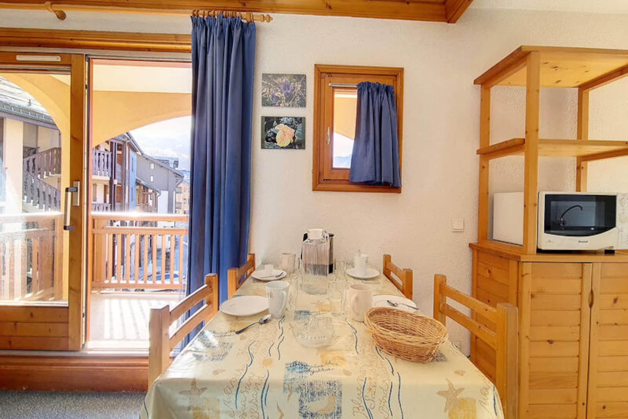 I det pittoreska Grangeraies-distriktet, där alpin charm möter modern bekvämlighet, erbjuder denna inbjudande lägenhet en mysig tillflyktsort för dina bergsäventyr. Med Saint Martin 1-linbanan bara några steg bort har du direkt tillgång till det berömda skidområdet Les Trois Vallées, vilket gör det till en idealisk bas för att utforska ett av världens största skidområden. Balkongen i syd-/västläge erbjuder en lugn plats att njuta av den hisnande utsikten och de gyllene solnedgångarna över de snötäckta topparna, vilket skapar en atmosfär av lugn och inspiration. Denna 47 m² stora lägenhet rymmer bekvämt upp till sex gäster med sin omsorgsfullt utformade planlösning. Det stora sovrummet har en plyschig dubbelsäng, medan det andra sovrummet har två våningssängar, perfekt för familjer eller grupper av vänner. Vardagsrummet har en bäddsoffa för två personer, satellit-TV och ett varmt och välkomnande utrymme att varva ner efter en dag i backarna. Det välutrustade köket har moderna apparater som miniugn, kylskåp, diskmaskin och mikrovågsugn, vilket gör att du enkelt kan laga rejäla måltider. Ett separat badrum med badkar och separat toalett bidrar till bekvämligheten och komforten under din vistelse. \n\nBeläget bara 10 minuters promenad från byns centrum hittar du livsmedelsbutiker, sportbutiker och skidskolor inom räckhåll. Oavsett om du söker spännande nedfarter, fridfulla promenader genom snötäckta leder eller en smak av lokal savoyardisk mat, placerar detta läge dig i hjärtat av allt. På vintern kan du njuta av den extra komforten med inkluderade sängkläder, handdukar och tillgång till skidförvaring för vistelser på sju nätter eller mer. \n\nVälj denna charmiga lägenhet för en minnesvärd alpin flykt, där varje detalj är utformad för att förbättra din upplevelse. Från dess utmärkta läge till dess mysiga interiör är det den perfekta tillflyktsorten för att skapa oförglömliga stunder i de franska Alperna.