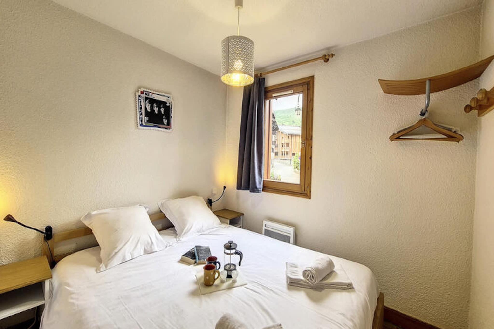 I det fridfulla Grangeraies-distriktet i Saint-Martin-de-Belleville erbjuder denna charmiga lägenhet på bottenvåningen en mysig tillflyktsort med direkt tillgång till det världsberömda skidområdet Les Trois Vallées. Tänk dig att kliva ut genom dörren och vara bara några minuter från gondolbanan Saint Martin 1, redo att ta dig in i ett vinterparadis med orörda backar och hisnande alpina vyer. Den lugna omgivningen, i kombination med bekvämligheten av närliggande butiker och skidtjänster, skapar den perfekta miljön för en oförglömlig bergssemester. \n\nDenna 47 m² stora lägenhet är omsorgsfullt utformad för att rymma upp till fyra gäster. Det inbjudande vardagsrummet har en bekväm soffa och TV, perfekt för avkopplande kvällar efter en dag i backarna. Sovrummen inkluderar ett sovrum med dubbelsäng och en alkov med två enkelsängar, vilket garanterar en vilsam natt för alla. Det fullt utrustade köket, komplett med rotisseriegrill, mikrovågsugn och diskmaskin, gör matlagningen till en barnlek, medan balkongen i sydvästläge erbjuder en härlig plats att njuta av bergsluften och den fantastiska utsikten. Ytterligare bekvämligheter inkluderar ett modernt badrum med dusch och tvättmaskin, samt en separat toalett för extra bekvämlighet.\n\nEn kort 10-minuterspromenad tar dig till hjärtat av byn, där du kan utforska charmiga butiker, njuta av lokal mat eller helt enkelt fördjupa dig i den varma och välkomnande atmosfären i Saint-Martin-de-Belleville. Oavsett om du är här för spänningen med skidåkning, lockelsen i det alpina landskapet eller den fridfulla bycharmen, är denna lägenhet din idealiska bas för en minnesvärd semester. Med sängkläder, handdukar och köksartiklar inkluderade i vintervistelser på sju nätter eller mer, kan du enkelt slå dig ner och fokusera på att skapa bestående minnen i hjärtat av de franska Alperna.