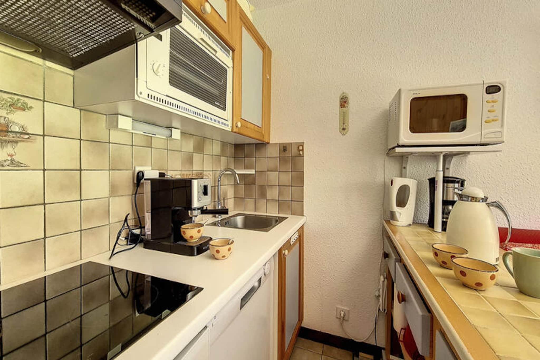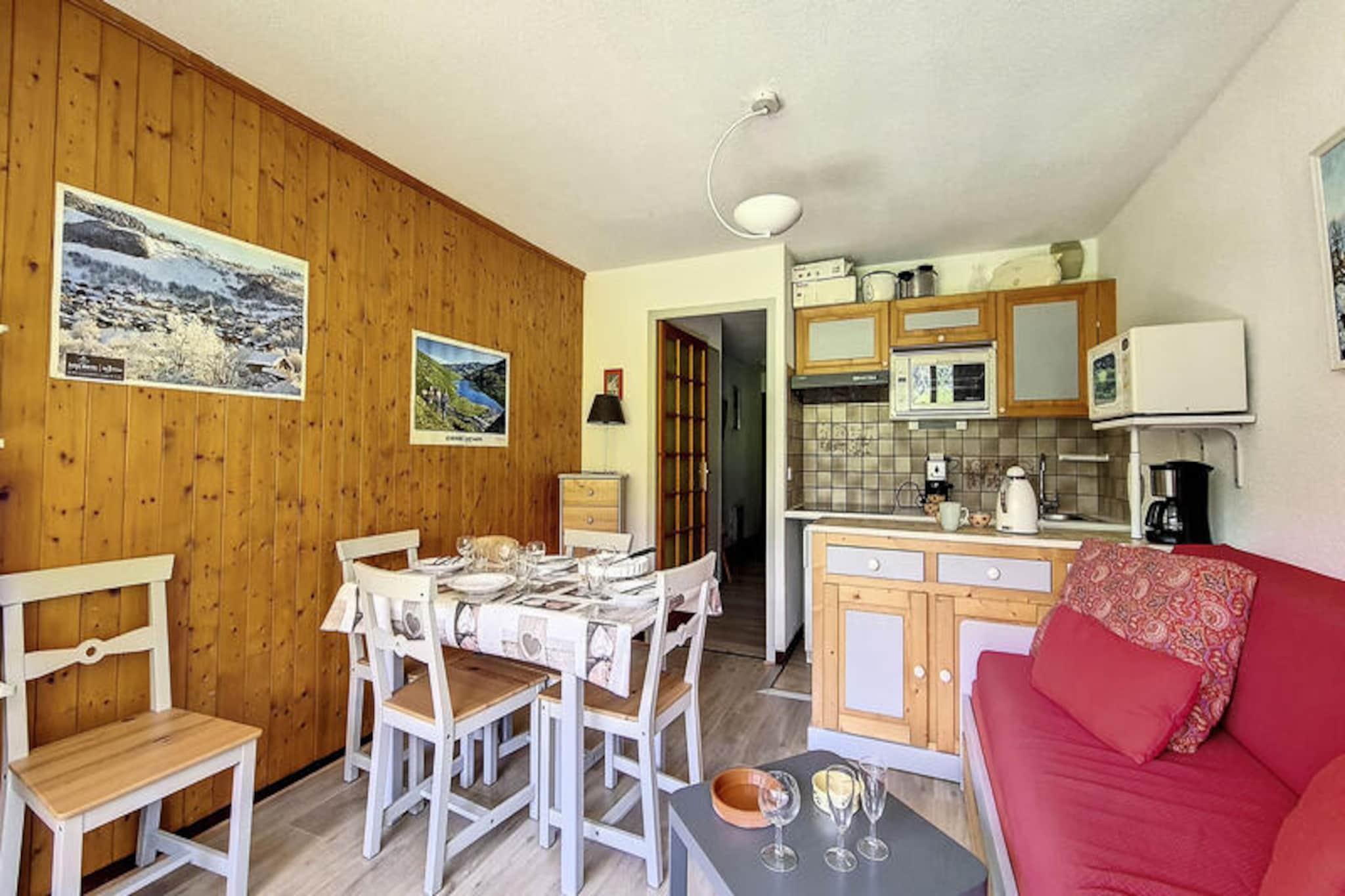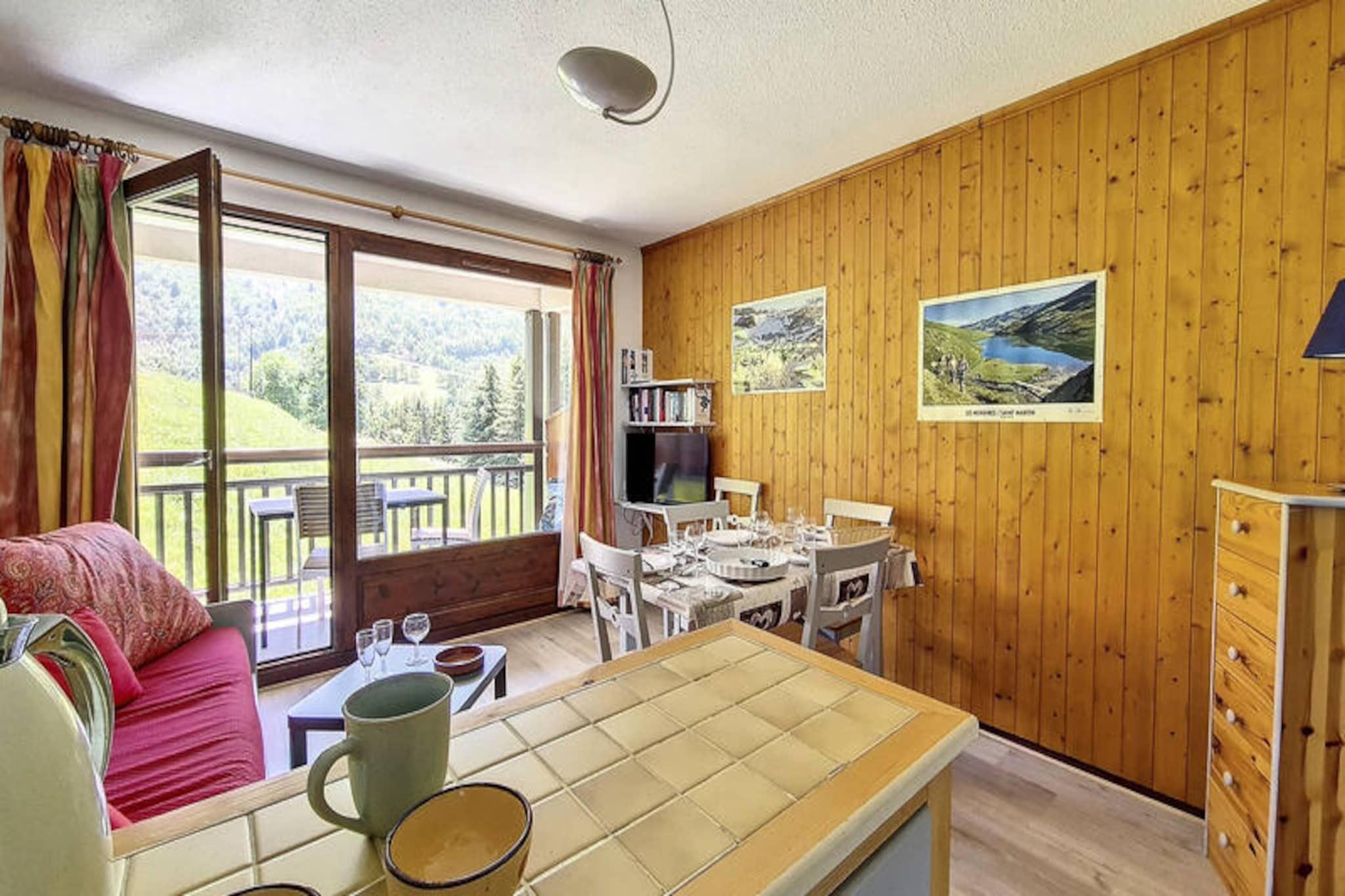 I det charmiga Grangeraies-distriktet erbjuder denna mysiga tvårumslägenhet en härlig alpin tillflyktsort bara några minuter från gondolbanan Saint Martin 1. Perfekt beläget för att utforska det världsberömda skidområdet Les Trois Vallées, kombinerar detta boende bekvämlighet med lugnet i en traditionell bergsby. Tänk dig att stiga ut på din sydvästvända balkong, njuta av den friska bergsluften och planera ditt nästa äventyr i hjärtat av de franska Alperna. \n\nLägenheten är designad för att rymma upp till fyra gäster, sträcker sig över 29 m² och ligger på första våningen i Les Murgers-boendet. Den ljusa interiören har ett bekvämt sovrum med dubbelsäng och TV för DVD-skivor, samt ett vardagsrum med en bäddsoffa för en enda person och en utdragbar enkelsäng. Det fullt utrustade köket har moderna apparater som keramikhäll, ugn, mikrovågsugn, diskmaskin och till och med en espressobryggare, vilket säkerställer att du har allt som behövs för en avkopplande vistelse. Badrummet har ett badkar och det finns en separat toalett för extra bekvämlighet. \n\nResidenset ligger bara en kort 2-minuterspromenad från gondolbanan och 5 minuters promenad från byns centrum, där du hittar butiker, en skidskola och viktiga tjänster. Med konstsnö som garanterar utmärkta skidförhållanden och ett skidförvaringsutrymme för din utrustning, kommer vintersportsentusiaster att tycka att detta läge är idealiskt. På sommaren förvandlas området till en fristad för vandrare och naturälskare, med stigar som leder till hisnande alpina landskap. \n\nOavsett om du söker spännande dagar i backarna eller fridfulla kvällar i en pittoresk miljö, erbjuder denna lägenhet den perfekta basen för din bergssemester. Med sin blandning av komfort, bekvämlighet och autentisk alpin charm lovar din vistelse här att bli oförglömlig.