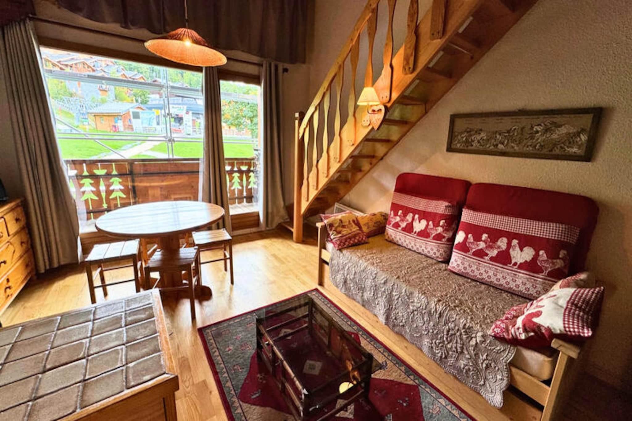 I det charmiga Grangeraies-distriktet i Saint Martin de Belleville erbjuder denna mysiga duplexlägenhet en idyllisk alpin tillflyktsort. Med sitt oslagbara läge vid foten av backarna och direkt mittemot Saint Martin 1-gondolliften har du smidig tillgång till det världsberömda skidområdet 3 Vallées. Tänk dig att vakna upp till en fantastisk utsikt över skidbackarna och den majestätiska toppen Le Cochet, kliva ut på din sydvästvända balkong och ge dig direkt ut på en dag full av snöiga äventyr. Den lugna byatmosfären i kombination med den livliga energin i backarna skapar den perfekta balansen för din semester i bergen. Denna genomtänkta duplexlägenhet på 44 m² rymmer bekvämt upp till fyra gäster. På bottenvåningen finns ett inbjudande vardagsrum med en mysig soffa, TV och ett pentry utrustat med allt du behöver, från en raclettegrill till ett våffeljärn för njutbara alpina kvällar. På övervåningen finns två inbjudande sovrum: ett med dubbelsäng och ett med två enkelsängar, vilket gör det perfekt för familjer eller små grupper. Lägenheten har också ett badrum med badkar och separat toalett för extra bekvämlighet. Bara en kort promenad från hjärtat av Saint Martin de Belleville hittar du en mängd butiker, restauranger och viktiga tjänster som skidskola, dagis och apotek. Oavsett om du utforskar backarna, njuter av en traditionell savoyardisk måltid eller helt enkelt njuter av den fridfulla utsikten över bergen, har denna plats något att erbjuda alla. Med sitt utmärkta läge, charmiga atmosfär och praktiska bekvämligheter är denna duplexlägenhet din port till oförglömliga alpina minnen. Oavsett om du är här för spännande skiddagar eller lugna sommarvandringar, lovar Saint Martin de Belleville en autentisk bergsupplevelse.