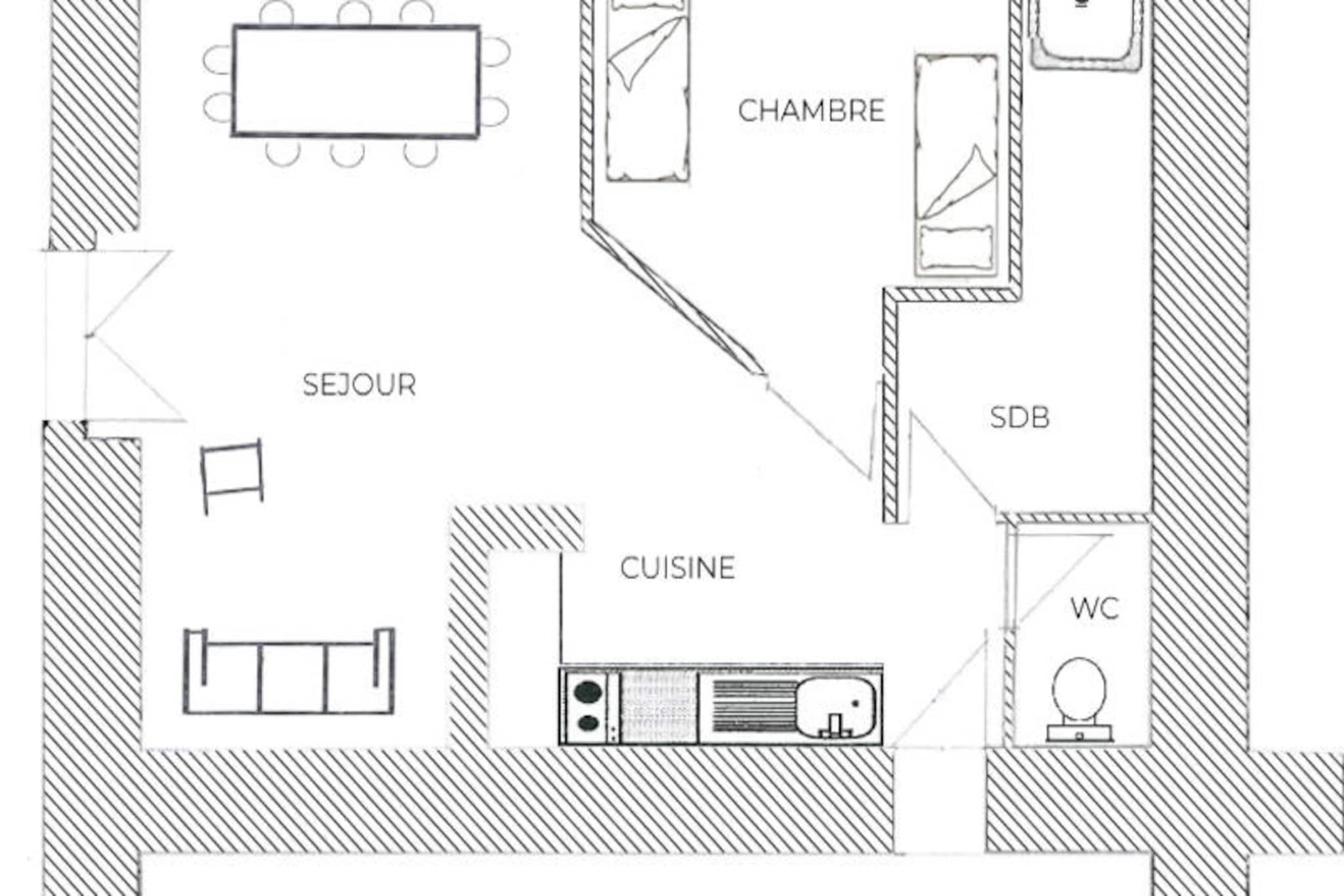 I den charmiga byn St Martin de Belleville, där alpin tradition möter modern komfort, inbjuder Abeille-residenset dig att uppleva en verkligt autentisk bergssemester. Beläget i det pittoreska distriktet La Villette, ligger detta mysiga byhus bara en kort promenad från byns hjärta och erbjuder enkel tillgång till skidbackar, lokala butiker och viktiga tjänster. Oavsett om du söker äventyr i backarna eller en lugn tillflyktsort, erbjuder detta läge den perfekta balansen mellan bekvämlighet och lugn. \n\nDenna förtjusande tvårumslägenhet på en mezzanin är 50 m² stor med ytterligare 10 m² och rymmer bekvämt upp till fyra gäster. Dess varma och inbjudande interiör har en omsorgsfullt utformad planlösning som blandar rustik charm med moderna bekvämligheter. Mezzaninen ger en unik touch och skapar en öppen och luftig atmosfär som är perfekt för avkoppling efter en dags utforskande. Med värme för att hålla dig varm och ett välutrustat kök kommer du att känna dig som hemma i denna alpina oas. \n\nBara 200 meter bort ger byns centrum skidliften smidig tillgång till de berömda backarna i Les Trois Vallées, ett av världens största skidområden. I närheten hittar du livsmedelsbutiker, sportaffärer, restauranger och till och med en skidskola för nybörjare, vilket säkerställer att alla dina behov tillgodoses inom gångavstånd. På sommaren förvandlas regionen till ett paradis för vandrare och naturälskare, med stigar som slingrar sig genom hisnande landskap. \n\nOavsett om du är här för att åka genom färsk pudersnö eller njuta av bergens fridfulla skönhet, erbjuder Abeille Residence en oförglömlig flykt i hjärtat av de franska Alperna. Låt charmen i St Martin de Belleville och bekvämligheten i denna mysiga lägenhet skapa minnen som varar livet ut.