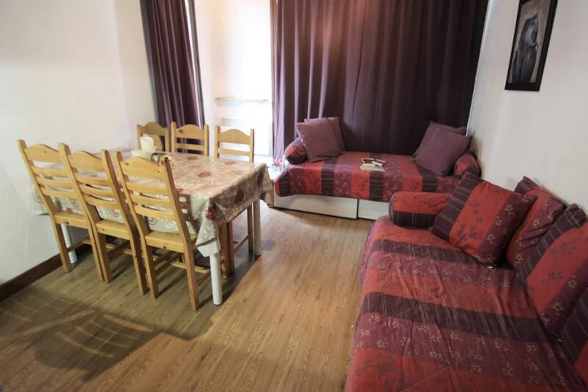 Högt ovanför Val Thorens livliga hjärta erbjuder denna charmiga lägenhet i det fridfulla slalomdistriktet en fridfull oas med enkel tillgång till skidåkning i världsklass. Tänk dig att vakna upp till den friska alpluften och gå ut på din balkong i österläge för att njuta av morgonsolen och den hisnande utsikten över bergen. Oavsett om du är här för spänningen i backarna eller lugnet på de snötäckta topparna, är denna bostad perfekt placerad för att göra din vistelse oförglömlig. Med tillgång till backen bara 50 meter bort kan du åka skidor direkt till byggnaden beroende på snöförhållandena, vilket garanterar en smidig start på din äventyrsdag. \n\nInuti är lägenheten noggrant utformad för att rymma upp till sex gäster, vilket gör den idealisk för familjer eller små grupper. Vardagsrummet har två bekväma bäddsoffor för enstaka personer och en TV, vilket skapar ett mysigt utrymme att varva ner efter en dag i backarna. Pentryt är utrustat med mikrovågsugn, elektrisk spishäll, kylskåp och diskmaskin, så att du enkelt kan laga mat. Det separata sovrummet med dubbelsäng och en stuga med våningssängar ger vilsamma sovarrangemang för alla. Ett badrum med badkar och handfat, samt en separat toalett, garanterar bekvämlighet under hela din vistelse. Slalomdistriktet ligger bara en kort promenad från köpcentret Péclet, där du hittar lokala butiker, restauranger och liftbiljettkontoret. Skiduthyrning finns tillgänglig på Skiset Goitschel Sport, som ligger 150 meter bort, och garageuthyrning eller användning av slalomparkeringen ökar bekvämligheten. Oavsett om du utforskar den pulserande orten eller åker genom färskt pudersnö, finns allt du behöver inom räckhåll. Välj denna lägenhet för dess oslagbara läge, mysiga atmosfär och närhet till backarna. Oavsett om du besöker detta boende för ett vinterparadis eller en sommarresa till alpina backar, lovar detta boende en minnesvärd vistelse i hjärtat av de franska Alperna.