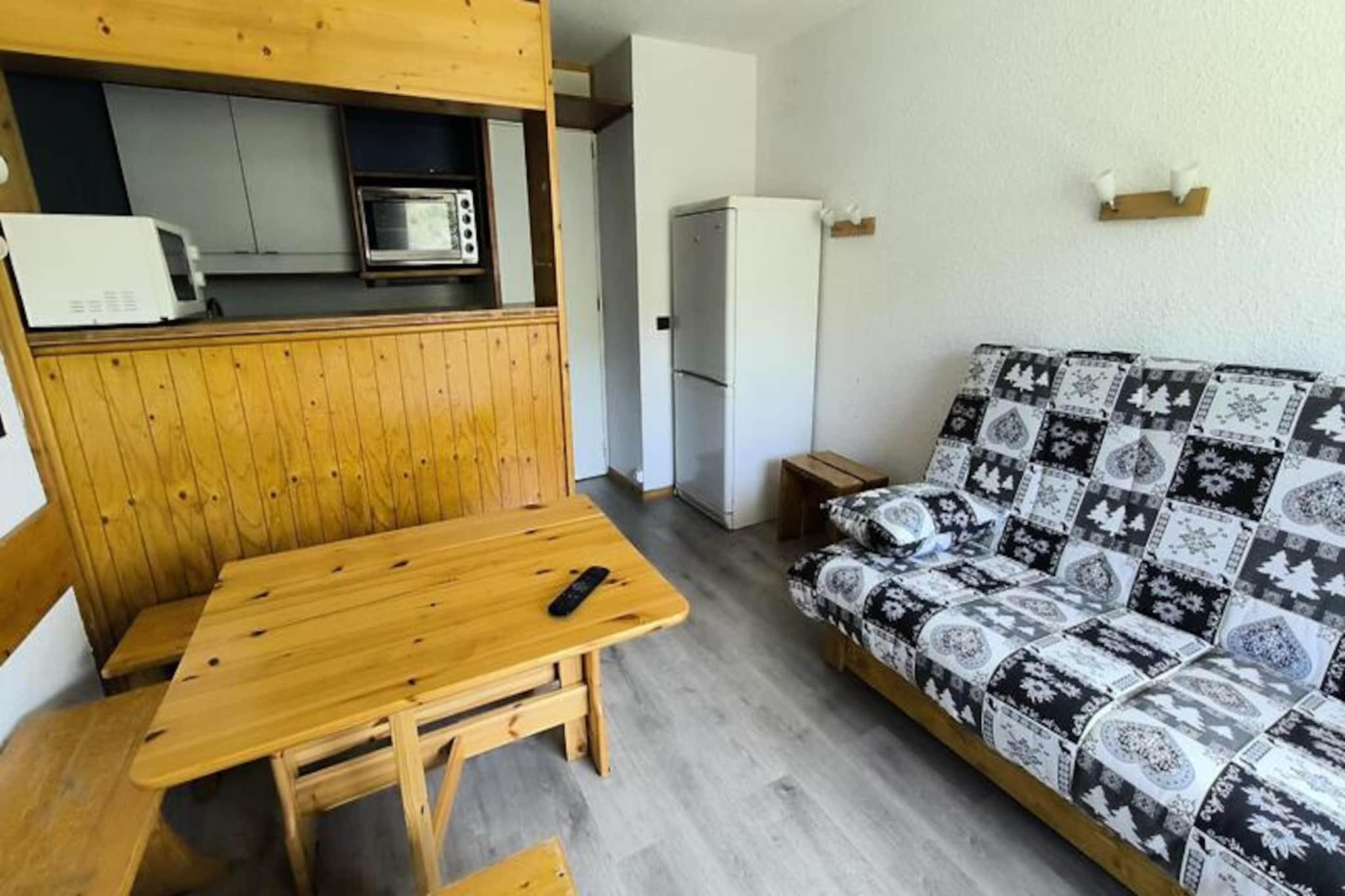 I hjärtat av Soleil-Machüu-distriktet, där charmen av alpint boende möter modern bekvämlighet, erbjuder denna mysiga tvårumslägenhet en perfekt tillflyktsort för din bergssemester. Belägen i det berömda Les Temples du Soleil-residenset, erbjuder den direkt tillgång till backarna, vilket gör den till ett idealiskt val för skidentusiaster som vill maximera sin tid i snön. Tänk dig att kliva ut ur ditt skidskåp och glida rakt ner i de orörda backarna i anläggningen, samtidigt som du njuter av den hisnande utsikten över de omgivande topparna. Denna omsorgsfullt designade lägenhet, belägen på 3:e och 4:e våningen i residenset, rymmer bekvämt upp till fyra gäster. Vardagsrummet har en mjuk bäddsoffa och en TV, vilket skapar ett välkomnande utrymme att varva ner i efter en dag av äventyr. Sovrummet, med två enkelsängar, garanterar en god natts sömn. Ett välutrustat pentry med ugn, mikrovågsugn, stort kylskåp, elektrisk spishäll och diskmaskin låter dig laga rejäla måltider att njuta av på balkongen i söderläge, där de soliga sluttningarna skapar en fantastisk bakgrund. Badrummet har badkar och handfat, medan en separat toalett ökar bekvämligheten. Les Temples du Soleil erbjuder en rad bekvämligheter på plats, inklusive ett spelrum, restaurang, bar, sportaffär och minilivs, vilket säkerställer att allt du behöver finns inom räckhåll. För dig som söker avkoppling har residenset ett gym, jacuzzi, bastu och ångbad, tillgängligt mot en avgift. Det pulserande Soleil-Machüu-distriktet är också ett centrum för aktiviteter, med sin livliga afterski-scen och enkel tillgång till anläggningens sevärdheter. Oavsett om du är här för att snubbla genom snön, utforska de alpina spåren eller bara njuta av den fridfulla bergsatmosfären, är denna lägenhet din port till en oförglömlig semesterupplevelse i de franska Alperna.