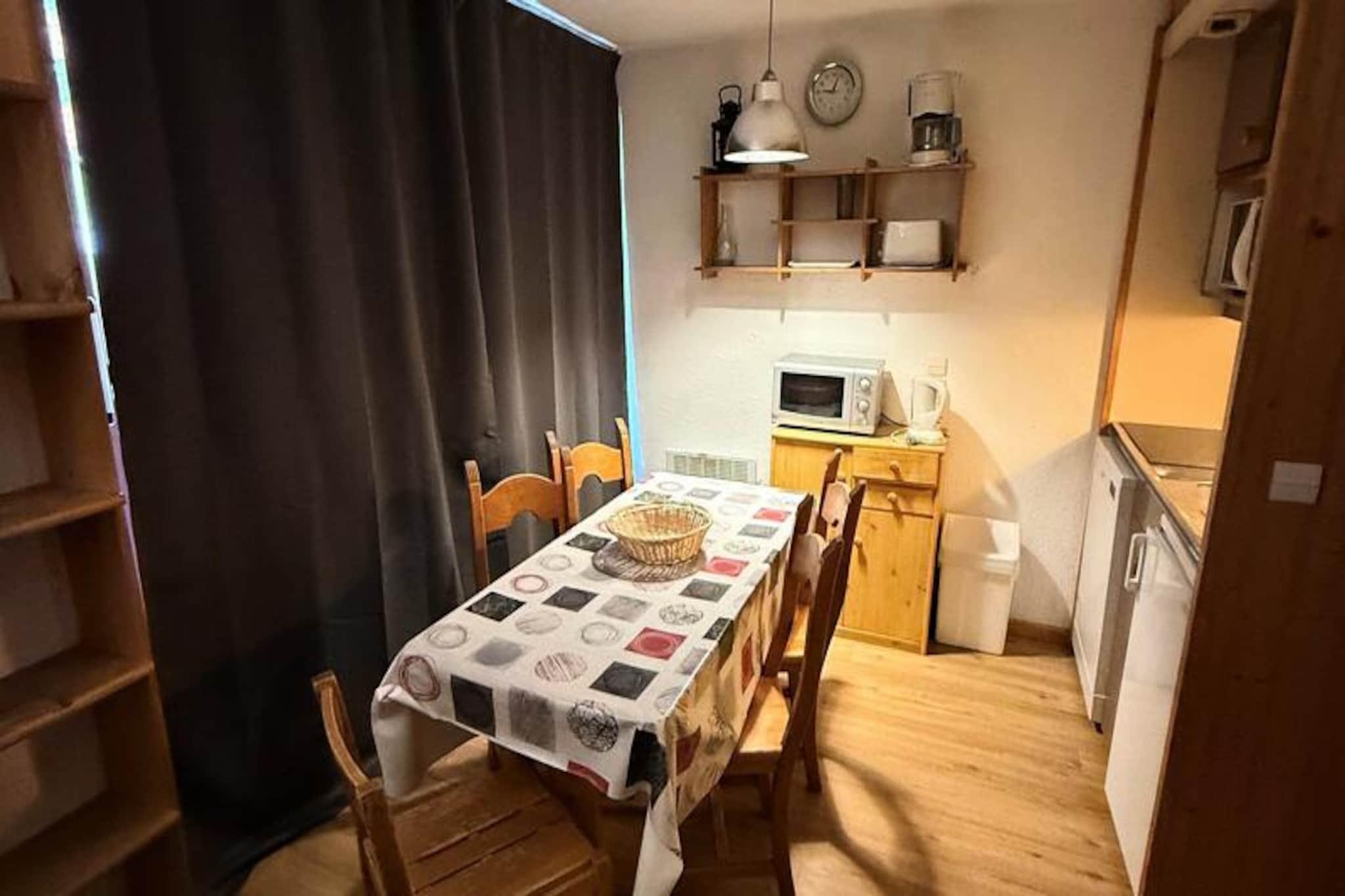 Mitt i Val Thorens pulserande energi erbjuder denna charmiga studiostuga en lugn tillflyktsort med direkt tillgång till backarna. Tänk dig att stiga ut genom din dörr och glida rakt ut på den orörda snön, omgiven av de franska Alpernas hisnande toppar. Med sin balkong i norrläge kan du njuta av lugna vyer och den friska alpina luften, vilket skapar den perfekta bakgrunden för din bergssemester. Oavsett om du är här för spännande skidäventyr eller en fridfull tillflyktsort, erbjuder denna bostad en sömlös blandning av bekvämlighet och komfort. Studiostugan på 28 m² är designad för att rymma upp till fyra gäster och är omsorgsfullt utrustad för en mysig vistelse. Vardagsrummet har en bäddsoffa som kan omvandlas till två enkelsängar, medan stugan erbjuder våningssängar, vilket gör den idealisk för familjer eller små grupper. Pentryt har en miniugn, mikrovågsugn, kylskåp, elektrisk spis och diskmaskin, vilket säkerställer att du har allt som behövs för att laga rejäla måltider efter en dag i backarna. Ett separat badrum med badkar och handfat, tillsammans med en separat toalett, bidrar till det praktiska i detta inbjudande utrymme. L'Orsière ligger i hjärtat av skidorten, inom bekvämt räckhåll från två köpcentra, en mängd olika restauranger och viktiga tjänster som skidskolor, en turistbyrå och till och med en bowlinghall för afterski. Den närliggande Skiset-butiken säkerställer att du har all utrustning du behöver bara 100 meter bort, medan barnens rodelbana ger en lekfull touch för yngre besökare. Oavsett om du söker spännande skiddagar eller mysiga kvällar inne, erbjuder detta ski-in/ski-out-boende den ultimata alpina upplevelsen. Låt Val Thorens majestätiska skönhet och L'Orsières bekvämlighet skapa oförglömliga minnen för din nästa bergsresa.