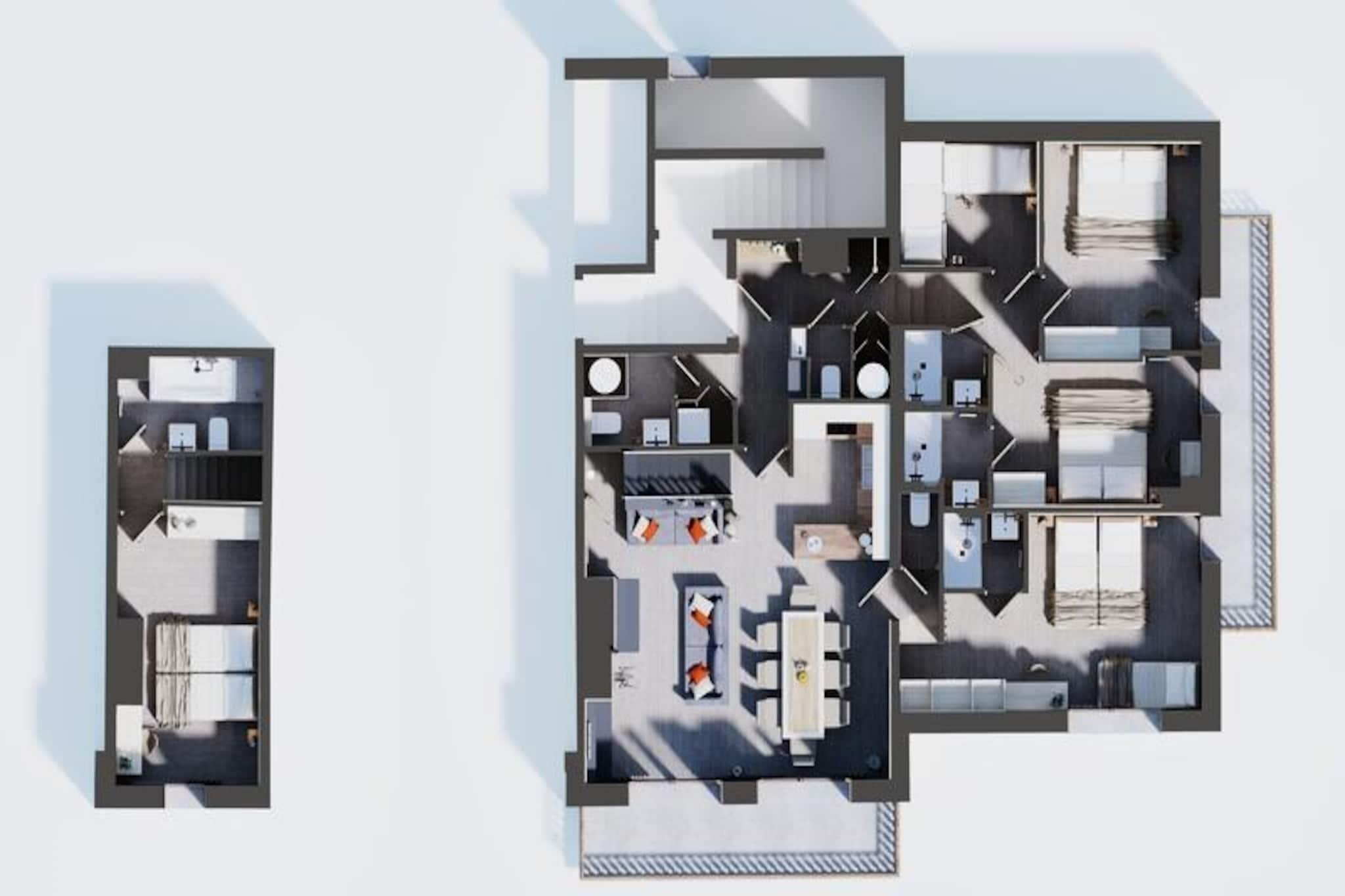 Högt ovanför Val Thorens hisnande toppar erbjuder denna fantastiska duplexlägenhet en lyxig alpin reträtt i det prestigefyllda Balcons-distriktet. Denna fastighet kombinerar modern elegans med autentisk bergscharm och är perfekt för stora familjer eller grupper av vänner som söker en minnesvärd vistelse på 2 400 meters höjd. Tänk dig att vakna upp till panoramautsikt över snöklädda toppar och kliva direkt ut i backarna genom bekväm ski-in/ski-out-åtkomst via residensens garage. Rosaël-residensen, där denna lägenhet ligger, ligger bara en kort promenad från ortens centrum, vilket garanterar enkel tillgång till butiker, restauranger och livliga afterski-aktiviteter. \n\nDenna rymliga lägenhet är 131 kvadratmeter stor och är omsorgsfullt utformad i två våningar. Nedre våningen har en välkomnande entré, ett fullt utrustat kök och ett mysigt vardagsrum med vardagsrum och matplats som öppnar upp mot en privat balkong. Fem vackert inredda sovrum, inklusive badrumsalternativ, erbjuder flexibla sovarrangemang för upp till tolv gäster. Moderna bekvämligheter som Wi-Fi, skidförvaring och ett relaxområde med pool garanterar komfort och bekvämlighet under hela din vistelse. \n\nVal Thorens är känt för sin skidåkning i världsklass och livliga atmosfär. Bortom backarna kan gästerna utforska den charmiga byn, njuta av lokal savoyardisk mat eller njuta av wellnessbehandlingar på närliggande spa. På sommaren förvandlas regionen till en fristad för vandring, mountainbike och alpina äventyr. Med sitt utmärkta läge, exceptionella bekvämligheter och oöverträffade utsikter lovar denna duplexlägenhet en oförglömlig resa till de franska Alperna.
