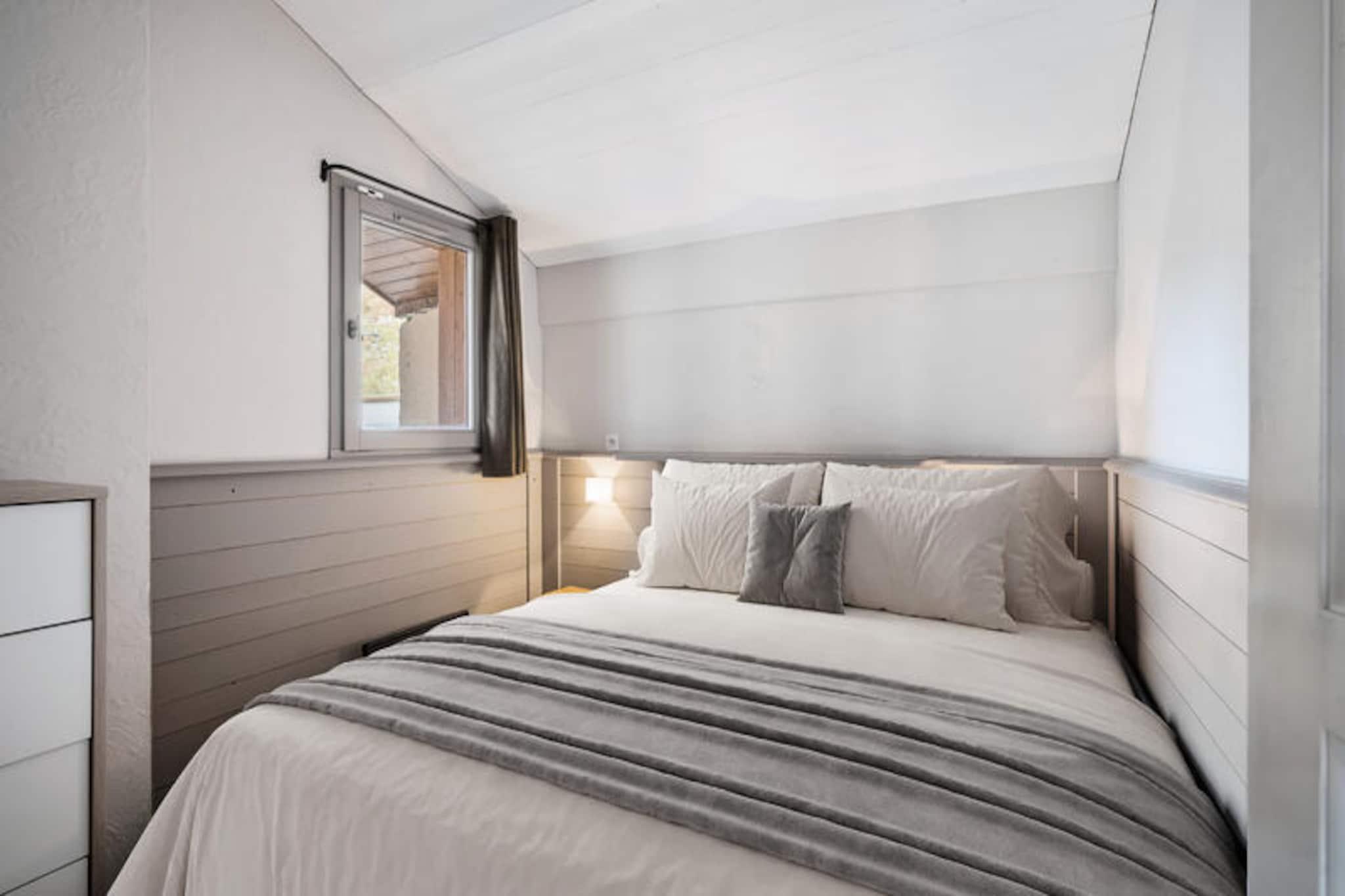 Högt ovanför Val Thorens skimrande sluttningar erbjuder denna charmiga lägenhet i chaletstil i Balcons-distriktet en lugn alpin tillflyktsort på 2 400 meters höjd. Tänk dig att vakna upp till hisnande bergsvyer, kliva ut i orörd snö och åka skidor direkt från residensens garage för att utforska de världsberömda backarna i Les Trois Vallées. Denna duplexlägenhet i Rosael-residenset kombinerar rustik charm med moderna bekvämligheter och skapar den perfekta tillflyktsorten för familjer och grupper som söker en blandning av äventyr och avkoppling. \n\nLägenheten är 62 kvadratmeter stor och har tre mysiga dubbelrum, två badrum och en separat toalett, vilket garanterar gott om plats för upp till sex gäster. Vardagsrummet, komplett med ett utrustat kök och en sprakande öppen spis, inbjuder dig att varva ner efter en spännande dag i backarna. Gästerna har också tillgång till residensens hälsoavdelning, som inkluderar en pool och bastu, vilket erbjuder den ultimata avkopplingsupplevelsen bland de snötäckta topparna. Genomtänkta detaljer som toalettartiklar, sängkläder och bäddade sängar vid ankomst garanterar en smidig och bekväm vistelse.\n\nUtöver residenset lockar Val Thorens med sin livliga atmosfär, halvgågator och en mängd aktiviteter för alla årstider. Från spännande skidbackar till afterski-upplevelser tillgodoser denna destination alla resenärers önskemål. På sommaren förvandlas bergen till en fristad för vandring och mountainbike, med panoramautsikt som kommer att lämna dig i vördnad. Oavsett om du är här för vintersport eller sommaräventyr, lovar denna anläggning oförglömliga minnen i hjärtat av Alperna.