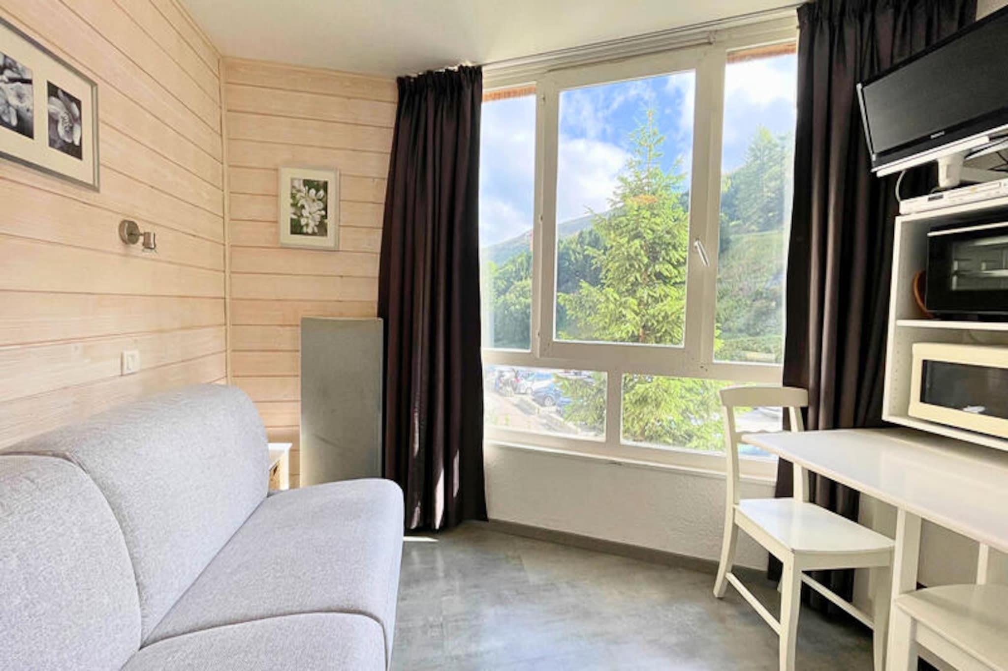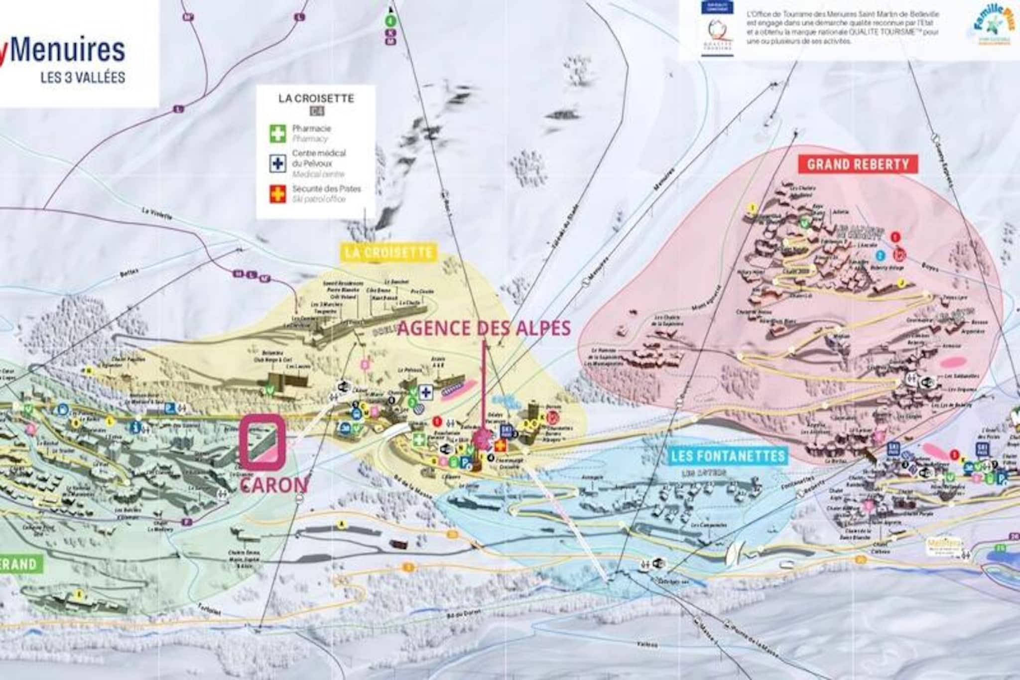 I det lugna Preyerand-distriktet i Les Menuires erbjuder denna mysiga studiolägenhet en härlig tillflyktsort för två, perfekt lämpad för skidentusiaster eller par som söker en lugn alpin semester. Caron Residence är idealiskt beläget vid foten av backarna, vilket garanterar enkel tillgång till de snöiga äventyr som väntar. Med en gratis gondolbana som förbinder dig med ortens livliga hjärta från tidig morgon till sen kväll, finns alla bekvämligheter nära till hands. Kliv in i denna omsorgsfullt designade studio på 13 m², där komfort möter funktionalitet. Vardagsrummet har en bekväm bäddsoffa, en TV med DVD-spelare och ett välutrustat pentry komplett med elektriska spishällar, en miniugn, mikrovågsugn, kylskåp och viktiga apparater som kaffebryggare och brödrost. Badrummet är utrustat med en modern dusch, handfat, handdukstork och toalett, vilket garanterar en uppfriskande start eller slut på dagen. Individuell uppvärmning håller utrymmet varmt och inbjudande, medan ett skidförvaring på bottenvåningen gör din vistelse mer praktisk. Bortom lägenheten erbjuder Preyerand-distriktet ett urval av butiker och skidbutiker i närheten, vilket gör det enkelt att förbereda sig för dina alpina äventyr. Den stora utomhusparkeringen säkerställer problemfria ankomster och avgångar, medan residensens hissar ger smidig åtkomst till ditt boende på tredje våningen. Oavsett om du ger dig ut i backarna eller utforskar den charmiga byatmosfären, tillgodoser detta läge alla dina behov. Välj denna studio för dess oslagbara läge, mysiga atmosfär och bekvämligheten av att vara bara några steg från backarna. Oavsett om du är här för en weekendresa eller en längre vistelse, lovar Caron-residenset en minnesvärd alpin upplevelse i hjärtat av Les Menuires.