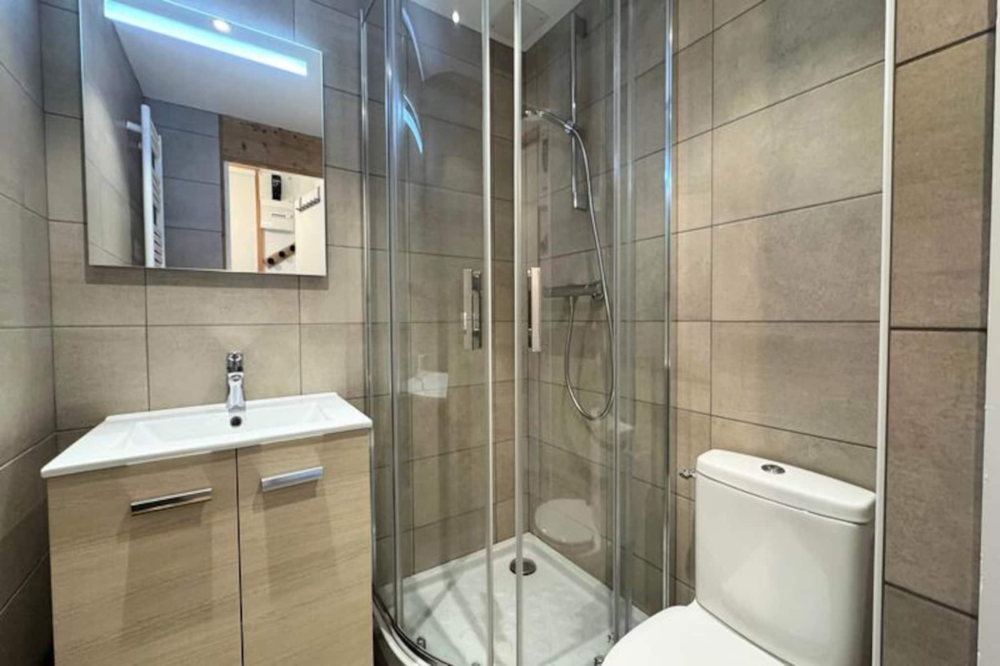 Högt ovanför Belleville-dalen inbjuder denna charmiga studiolägenhet i Caron-residenset dig att uppleva magin i Les Menuires. Med sin balkong i söderläge som erbjuder fantastisk utsikt över det alpina landskapet är denna mysiga tillflyktsort perfekt för par eller små grupper som söker en lugn men äventyrlig tillflyktsort. Residenset är bekvämt beläget vid foten av backarna, vilket garanterar enkel tillgång till de världsledande skidbackarna som gör denna region till ett vinterparadis. Oavsett om du är här för att åka i färskt puder eller njuta av bergens fridfulla skönhet, placerar denna fastighet dig i hjärtat av allt. Lägenheten är omsorgsfullt utformad för att maximera komforten inom sin 19 m² stora planlösning. Vardagsrummet har våningssängar och en bäddsoffa, med plats för upp till tre gäster. Ett välutrustat kök med keramikhäll, mikrovågsugn, miniugn och raclettegrill låter dig laga rejäla måltider efter en dag i backarna. Badrummet har dusch, handdukstork och moderna bekvämligheter, vilket garanterar ett avkopplande slut på din dag. Centralvärme och mysiga täcken bidrar till värmen och komforten i detta inbjudande utrymme. Gå ut och upptäck bekvämligheten med närliggande butiker och skidbutiker, eller utnyttja den kostnadsfria gondolbanan som förbinder Preyerand-distriktet med det pulserande hjärtat av Les Menuires. Denna lift är öppen från morgon till sen kväll och gör det enkelt att utforska ortens livliga atmosfär, inklusive restauranger, afterski-aktiviteter och kulturevenemang. Oavsett om du besöker orten för den spännande skidåkningen, hisnande vandringslederna eller helt enkelt för att varva ner i den friska bergsluften, erbjuder denna studiolägenhet en perfekt blandning av komfort och tillgänglighet. Skapa oförglömliga minnen i de franska Alperna, där varje ögonblick inramas av de majestätiska topparna och Les Menuires charm.
