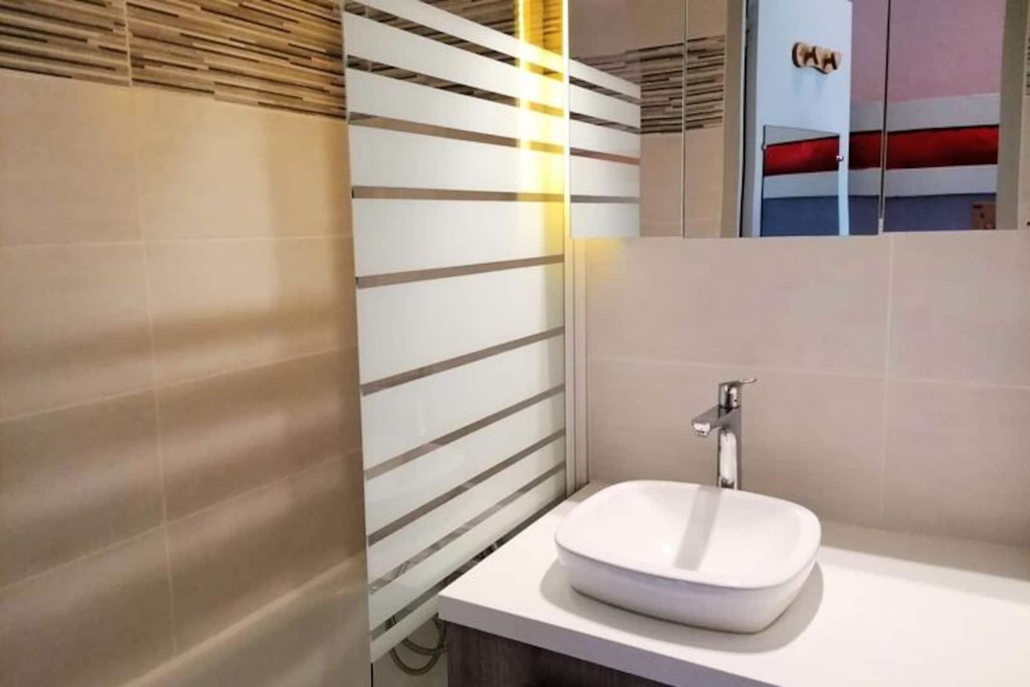Högt ovanför Val Thorens livliga sluttningar erbjuder denna lägenhet på översta våningen en mysig alpin tillflyktsort med hisnande utsikt över bergen. Badande i solljus, erbjuder de två balkongerna i söderläge den perfekta platsen att smutta på ditt morgonkaffe eller varva ner efter en dag av äventyr, samtidigt som du njuter av de majestätiska landskapen i de franska Alperna. Oavsett om du är här för spänningen med skidåkning eller lugnet i bergen, lovar denna bostad en oförglömlig vistelse. Lägenheten på 45 m² är utformad för att bekvämt rymma upp till sex gäster och är omsorgsfullt inredd för både avkoppling och bekvämlighet. Vardagsrummet har en plyschsoffa, en TV och en matplats med plats för sex personer, vilket skapar en välkomnande plats att samlas i. Det fullt utrustade pentryt har induktionshäll, ugn, mikrovågsugn, kylskåp, diskmaskin och kaffebryggare (både dropp- och Nespresso-kaffebryggare), vilket säkerställer att du har allt som behövs för att laga rejäla måltider. Sovrumsarrangemangen inkluderar ett rymligt sovrum med en dubbelsäng och två mysiga alkover, var och en med våningssängar, vilket gör det idealiskt för familjer eller grupper av vänner. Två badrum med toaletter, tillsammans med bekvämligheter som dammsugare, skidförvaring och hårtork, bidrar till en bekväm vistelse. Beläget i Dôme de Polset-residenset i övre Val Thorens, är läget oslagbart. Vid foten av residenset hittar du liftbiljettkontor och en livlig marknad som hålls två gånger i veckan. En kort promenad tar dig till köpcentret Péclet, där du hittar en mängd olika butiker, inklusive ett apotek, som säkerställer att alla dina behov tillgodoses. Oavsett om du snubblar genom orörda backar, utforskar den pulserande afterski-scenen eller bara njuter av den friska bergsluften, är denna lägenhet din port till en extraordinär alpin upplevelse. Låt charmen i Val Thorens och komforten i detta residens skapa minnen som du kommer att vårda för alltid.