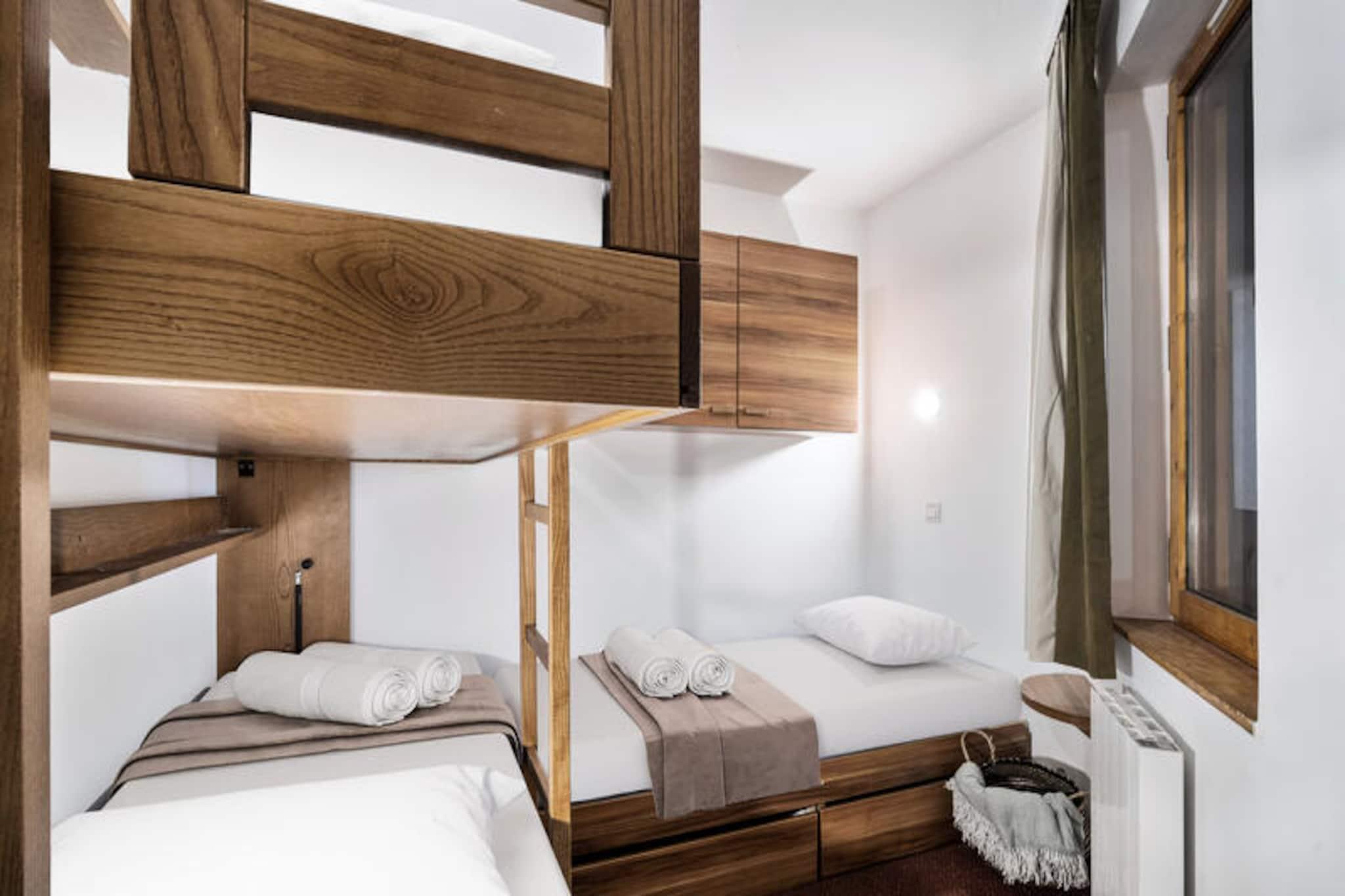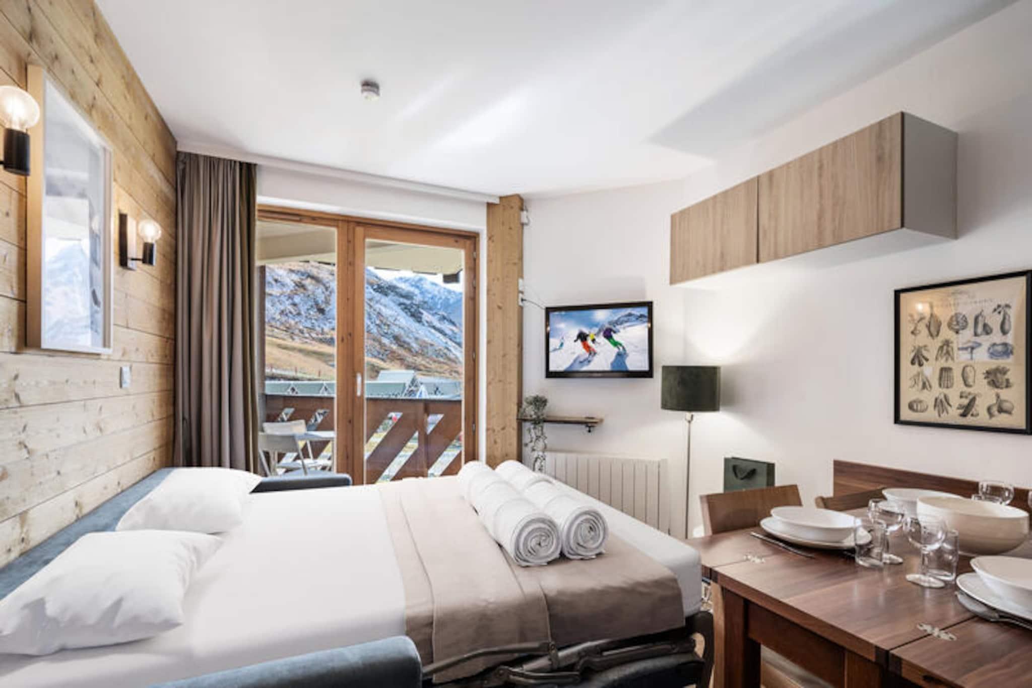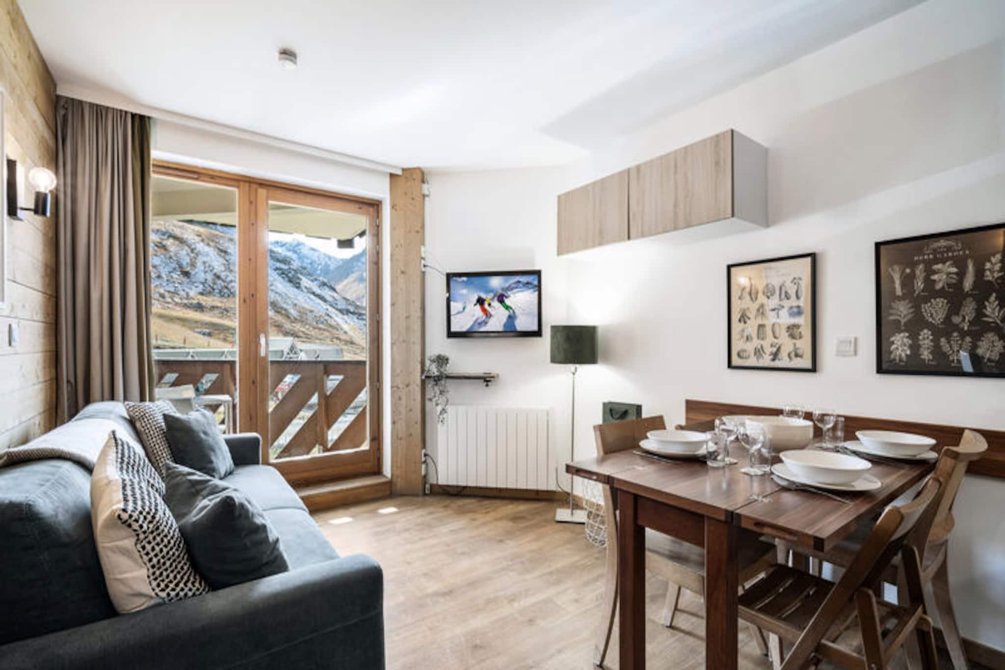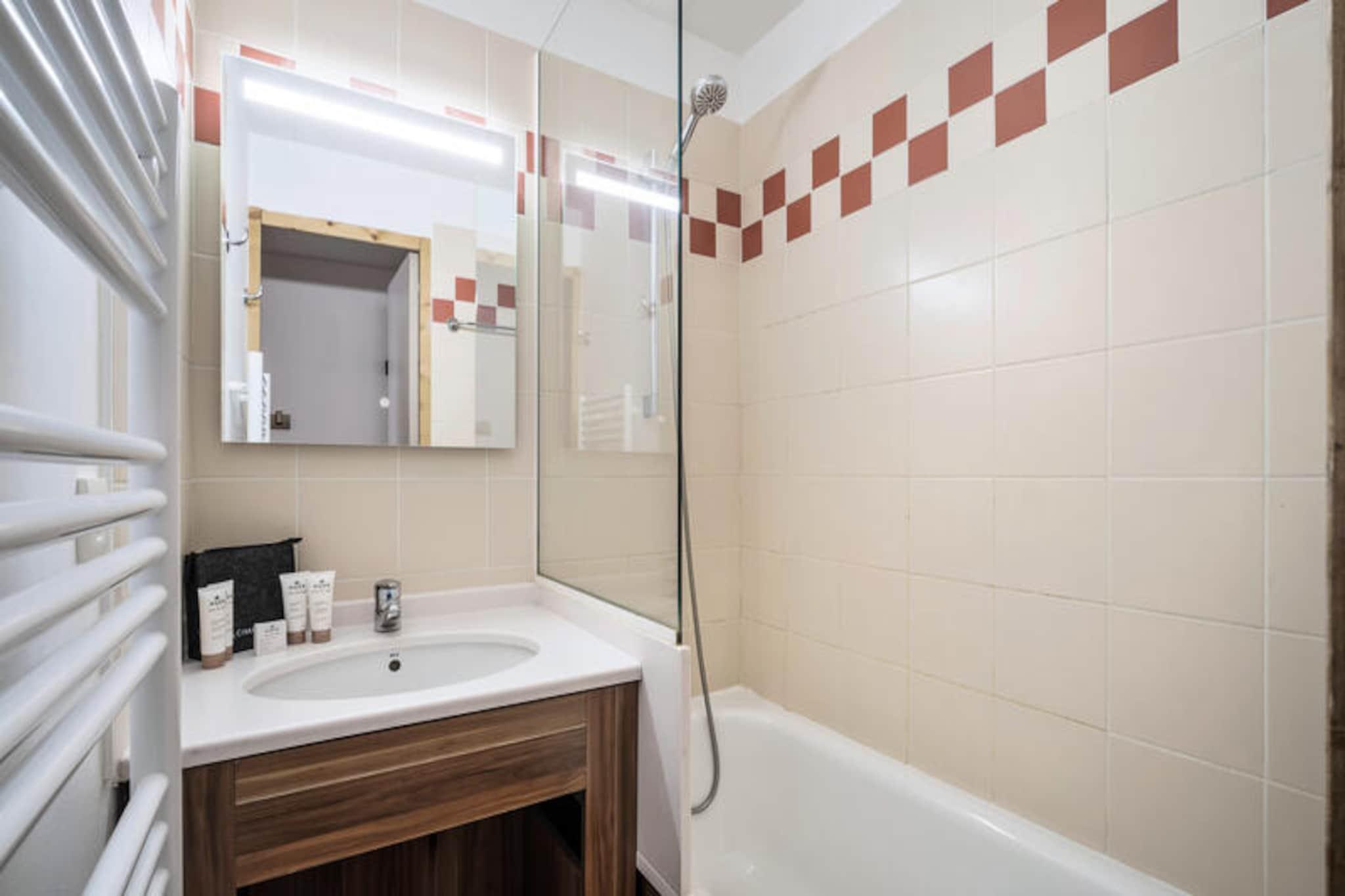 Där den friska bergsluften möter spänningen i ett alpint äventyr, erbjuder MACHU PICHU-residenset i Val Thorens en oöverträffad ski-in/ski-out-upplevelse. Beläget på Rue du Soleil, inbjuder denna charmiga oas dig att vakna upp till hisnande utsikter över snötäckta backar och majestätiska toppar, med bekvämligheten av direkt tillgång till den världsberömda skidområdet direkt från din tröskel. Oavsett om du är här för att vandra genom puderiga spår eller bara njuta av de franska Alpernas fridfulla skönhet, är denna residens din port till oförglömliga stunder. \n\nKliv in i PICHU 305, en omsorgsfullt designad lägenhet på 27 m² som bekvämt rymmer upp till fyra gäster. Den moderna interiören, utsmyckad med varma, moderna toner, skapar en mysig och inbjudande atmosfär för din bergsresa. Planlösningen inkluderar ett separat sovrum med två enkelsängar, ett vardagsrum med en bäddsoffa för två personer och ett öppet kök utrustat med allt du behöver för att laga rejäla måltider efter en dag i backarna. Badrummet, komplett med badkar och dusch, och en separat toalett säkerställer extra bekvämlighet för din vistelse. \n\nUtöver lägenheten erbjuder residensens utmärkta läge smidig tillgång till backarna och närheten till det pulserande stadskärnan, där du hittar butiker, restauranger och afterski-underhållning. Oavsett om du utforskar de orörda lederna eller njuter av det lokala köket, lovar Val Thorens en blandning av spänning och avkoppling. \n\nMed inkluderade tjänster som sängkläder, bäddade sängar vid ankomst, toalettartiklar och slutstädning, är varje detalj omhändertagen för att garantera en problemfri semester. Välj MACHU PICHU-residensen för en perfekt balans mellan komfort, bekvämlighet och alpin charm – din drömresa till bergen väntar.