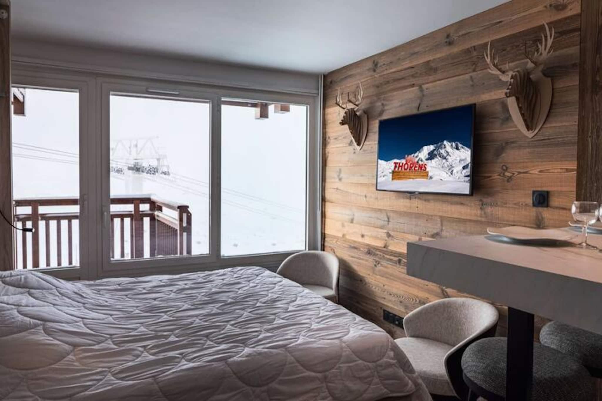 Vakna varje morgon till den hisnande panoramautsikten över snöklädda toppar och orörda sluttningar från denna vackert renoverade lägenhet på 25 m² i hjärtat av Val Thorens. Med sin moderna inredning i bergsstil och ett utmärkt läge i Roc de Péclet I-residenset erbjuder denna mysiga tillflyktsort en perfekt blandning av charm och bekvämlighet för upp till fyra gäster. Oavsett om du är här för att vandra genom de världsberömda backarna eller bara njuta av den fridfulla alpina atmosfären, lovar denna lägenhet en oförglömlig vistelse. Stig in för att upptäcka ett omsorgsfullt utformat vardagsrum med en nedfällbar säng, två bekväma fåtöljer och en TV, allt placerat för att maximera den fantastiska utsikten i söderläge. Köket med öppen planlösning är fullt utrustat med moderna apparater, inklusive keramikhäll, diskmaskin, mikrovågsugn och Nespressomaskin, vilket säkerställer att du har allt som behövs för att laga rejäla måltider efter en dag i backarna. En separat sovalkov med våningssängar ger en touch av mysighet, medan badrummet erbjuder en uppfriskande dusch, handdukstork och allt du behöver för din komfort. Beläget i det lugna och charmiga slalomområdet erbjuder Roc de Péclet I direkt tillgång till ski-in/ski-out, vilket gör det till en fristad för vintersportsentusiaster. Bara några steg bort ligger köpcentret Péclet med en mängd olika butiker, ett apotek och en marknad som öppnar två gånger i veckan, vilket säkerställer att alla dina behov tillgodoses inom några ögonblick. Oavsett om du dras till de spännande backarna, de lugna bergsutsikterna eller den pulserande lokala kulturen, är denna lägenhet din port till den ultimata Val Thorens-upplevelsen. Boka din vistelse och skapa minnen som varar livet ut.