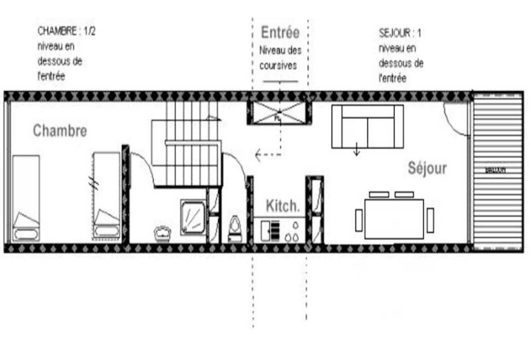 Résidence Les Lauzes badar i de franska Alpernas gyllene nyanser och erbjuder en lugn tillflyktsort i Croisette-distriktet i Les Menuires. Denna charmiga duplexlägenhet är perfekt belägen bara 100 meter från backarna och inbjuder dig att omfamna spänningen i alpina äventyr. Med en balkong i sydvästläge kan du njuta av hisnande utsikt över de omgivande topparna och värmen från eftermiddagssolen när den går ner över bergslandskapet. Den fridfulla atmosfären i residenset garanterar en vilsam tillflykt, medan den närliggande köpcentret Croisette ger bekvämlighet och livlighet till din vistelse. \n\nInuti sträcker sig den helrenoverade tvårumslägenheten på 36 m² och rymmer bekvämt upp till fem gäster. Vardagsrummet har en mysig bäddsoffa för två personer och en platt-TV, perfekt för att varva ner efter en dag i backarna. Sovrummet är utrustat med två våningssängar, perfekt för familjer eller grupper av vänner. Ett modernt badrum med dusch och separat toalett ger praktiska bekvämligheter, medan det fullt utrustade köket ståtar med keramikhäll, stort kylskåp, diskmaskin, mikrovågsugn/grill, brödrost, vattenkokare och kaffebryggare, vilket garanterar alla bekvämligheter i ett hem. Linoleumgolv i hela huset ger en touch av modern stil, och filtar finns för extra mysighet. \n\nStig ut och upptäck charmen i Les Menuires, där gratis parkering vid foten av bostaden (i mån av tillgång) gör det enkelt att utforska området. Oavsett om du åker skidor nerför orörda backar eller promenerar genom Croisetten-arkaden, erbjuder läget oändliga möjligheter till äventyr och avkoppling. Med sin lugna miljö och moderna bekvämligheter är Résidence Les Lauzes det perfekta valet för dig som söker en minnesvärd alpin semester. \n\nLåt de franska Alpernas skönhet och komforten i denna förtjusande lägenhet skapa oförglömliga minnen för dig och dina nära och kära.