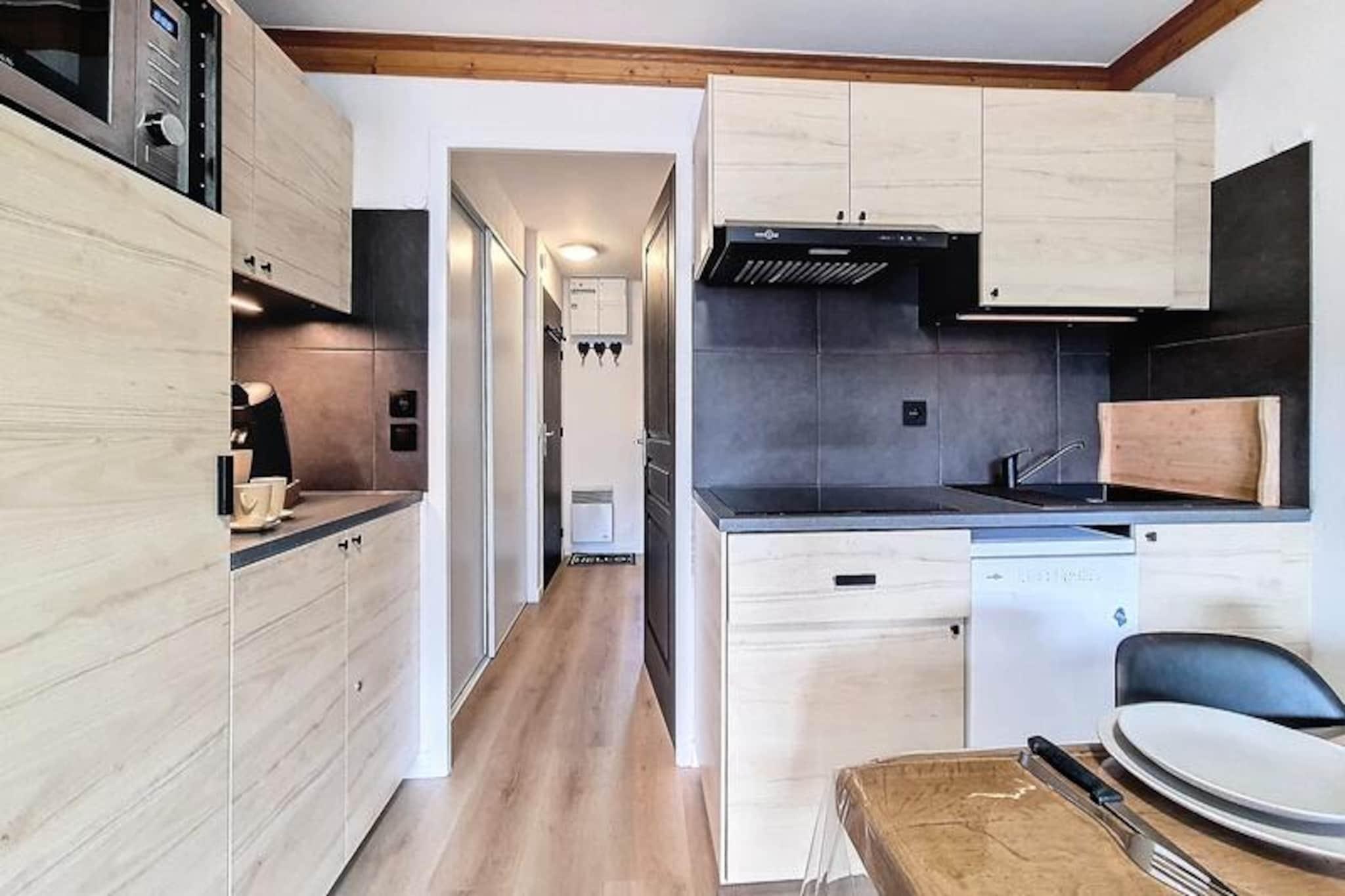Högt ovanför det livliga Bruyères-distriktet inbjuder denna charmiga tvårumslägenhet dig att uppleva magin i de franska Alperna med oöverträffad bekvämlighet och komfort. Belägen på 8:e våningen erbjuder den sydvästvända balkongen hisnande utsikt över backarna, där solljuset dansar över de snötäckta topparna. Oavsett om du är här för spännande skidäventyr eller lugna bergsresor, är denna bostad din port till oförglömliga stunder i Les Menuires. \n\nInuti utstrålar lägenheten värme och praktiskhet. Den rymmer upp till fyra gäster och har ett mysigt vardagsrum med en bäddsoffa för två personer och ett sovrum med två våningssängar, perfekt för familjer eller små grupper. Köket är fullt utrustat med moderna apparater, inklusive diskmaskin, induktionshäll och Senseo-kaffebryggare, vilket säkerställer att du kan laga rejäla måltider efter en dag av utforskande. Parkettgolv ger en touch av elegans, medan bekvämligheter som Wi-Fi, USB-laddningsportar och rulljalusier förbättrar din vistelse med modern bekvämlighet. \n\nStig ut och upptäck det livliga Bruyères-distriktet, där allt du behöver finns nära till hands. Från restauranger och butiker till en vattenpark, hälsocenter och biograf, surrar området av aktivitet. Familjer kommer att älska rodelbanan, skidskolan och lekplatsen, medan äventyrare enkelt kan nå backarna och liftarna bara några steg bort. På sommaren förvandlas området till en fristad för vandrare och naturentusiaster, med stigar som leder till fantastiska alpina vyer. \n\nOavsett om du söker adrenalinfyllda dagar i backarna eller fridfulla kvällar som njuter av den alpina atmosfären, erbjuder denna lägenhet den perfekta blandningen av komfort, läge och charm. Förverkliga dina bergsdrömmar i hjärtat av Les Menuires.
