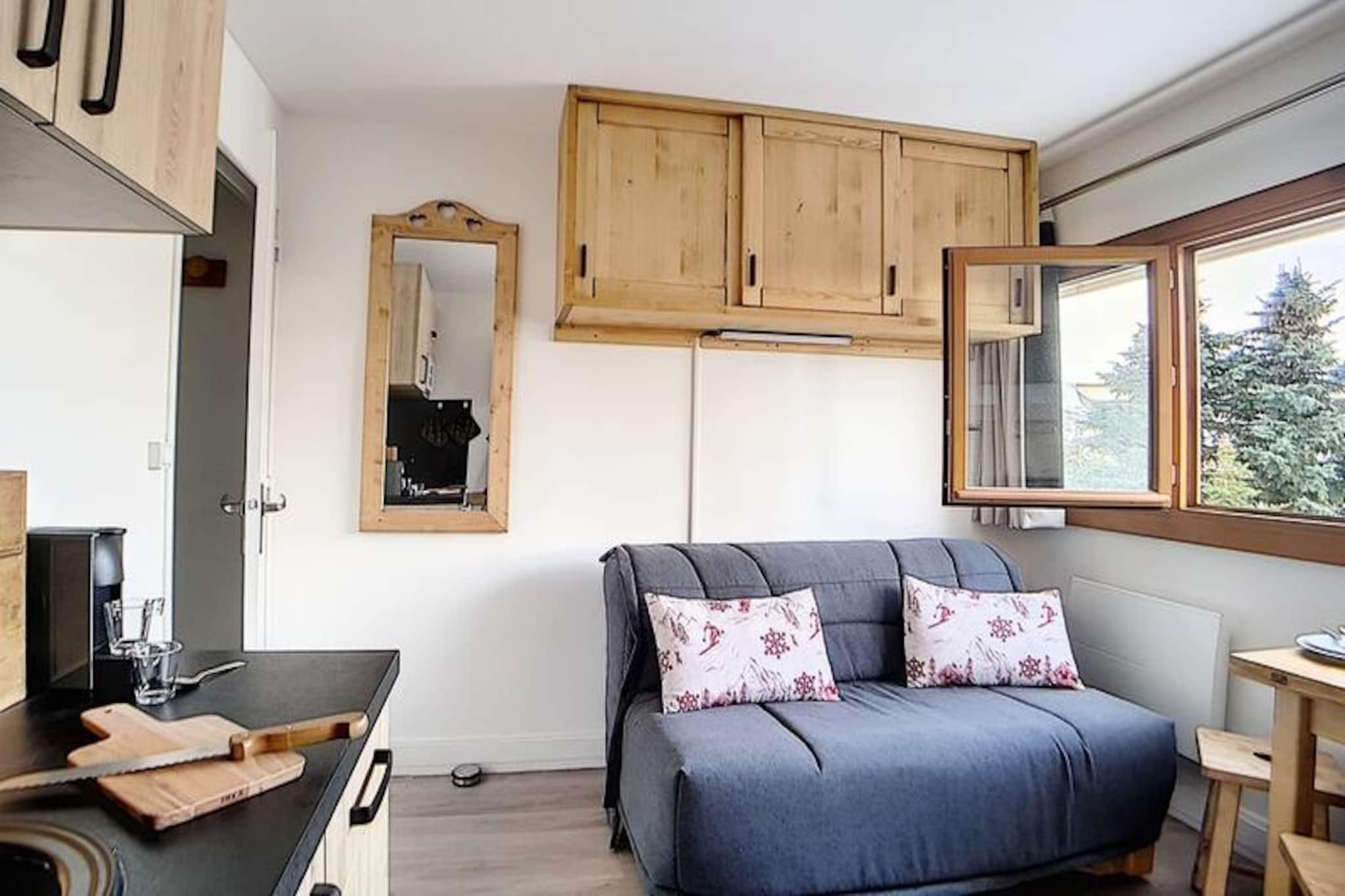 I hjärtat av de pittoreska franska Alperna erbjuder denna mysiga studiolägenhet en intim tillflyktsort för två, perfekt för en romantisk semester eller en fridfull bergsflykt. Belägen i Burons-byggnaden, bara några steg från den livliga shoppinggallerian La Croisette, kommer du att befinna dig i charmen hos denna alpina resort, med allt du behöver nära till hands. Från det ögonblick du anländer sätter det hisnande bergslandskapet och den friska alpina luften tonen för en oförglömlig vistelse. Denna studio på 13 m² renoverades 2020 och är omsorgsfullt utformad för att maximera komfort och funktionalitet. Vardagsrummet har en bekväm bäddsoffa för två och en platt-TV, vilket skapar ett välkomnande utrymme att koppla av i efter en dag av äventyr. Det kompakta men välutrustade köket har två elektriska spisar, kylskåp, mikrovågsugn, brödrost, vattenkokare och kaffebryggare, vilket gör det enkelt att laga mat eller snacks. Badrummet är modernt och utrustat med dusch och toalett, medan linoleumgolvet ger en touch av praktiskhet och värme. Lägenheten är rökfri, husdjursfri och har täcken och filtar för att garantera en mysig vistelse. Bekvämt beläget bara 100 meter från backarna är detta boende en dröm för skidentusiaster. Barnens dagis och snöträdgård ligger vid foten av byggnaden, vilket gör det till ett utmärkt val för familjer. Med en busshållplats bara 50 meter bort och busstationen bara 2 minuters resa bort är det enkelt att utforska området. Skidförvaring i källaren ökar bekvämligheten, medan det betalda Wi-Fi-läget säkerställer att du håller dig uppkopplad. Oavsett om du är här för att åka i färskt pudersnö, utforska den pulserande atmosfären i resorten eller bara njuta av den fridfulla alpina skönheten, erbjuder denna charmiga studio den perfekta basen för dina bergsäventyr. Boka nu och skapa minnen som varar livet ut.