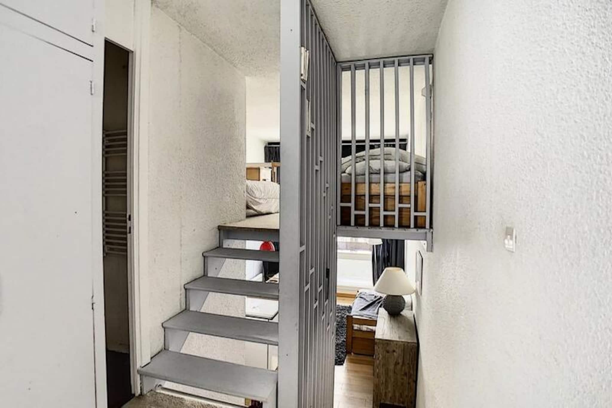Högt ovanför den charmiga skidorten Les Menuires erbjuder Brelin-byggnaden en unik utsiktspunkt för din alpina semester. Med hisnande utsikt och bekväm tillgång till La Croisette-distriktet via dygnet runt-öppna hissar, kombinerar detta läge lugn och praktiskhet. Oavsett om du är här för skidåkning eller en avkopplande reträtt, inbjuder den sydvästvända balkongen på 12:e våningen dig att njuta av skönheten i bergen badande i gyllene solljus. Denna renoverade duplexlägenhet är din mysiga oas i hjärtat av Alperna. \n\nLägenheten är designad för att rymma upp till sex gäster och har en mezzanin och en genomtänkt planlösning. Vardagsrummet har en bäddsoffa för en person och en utdragbar säng, kompletterad med en TV för din underhållning. Det utrustade köket är utrustat med keramikhäll, miniugn, kylskåp, diskmaskin, brödrost, vattenkokare och kaffebryggare, vilket säkerställer att du har allt du behöver för att laga läckra måltider. Sovrummet och mezzaninen har båda en bekväm dubbelsäng, medan badrummet har en tvättmaskin och handdukstork för extra bekvämlighet. Parkettgolv i vardagsrummet och mysig heltäckningsmatta i sovrummen skapar en varm och inbjudande atmosfär.\n\nBrelin-byggnaden ligger på ski-in/ski-out-nivån och erbjuder skidförvaring för enkel förvaring och direkt tillgång till backarna. Danchet-liften, med gratis parkering vid basen, gör det enkelt att utforska området. Inom byggnaden hittar du butiker och liftbiljettkontor i arkaden, vilket säkerställer att alla dina behov tillgodoses utan att du behöver gå långt.\n\nOavsett om du dras till spänningen med skidåkning eller Alpernas fridfulla skönhet, är denna lägenhet den perfekta basen för att skapa oförglömliga minnen. Med sin blandning av komfort, bekvämlighet och fantastiska utsikter börjar ditt alpina äventyr här.