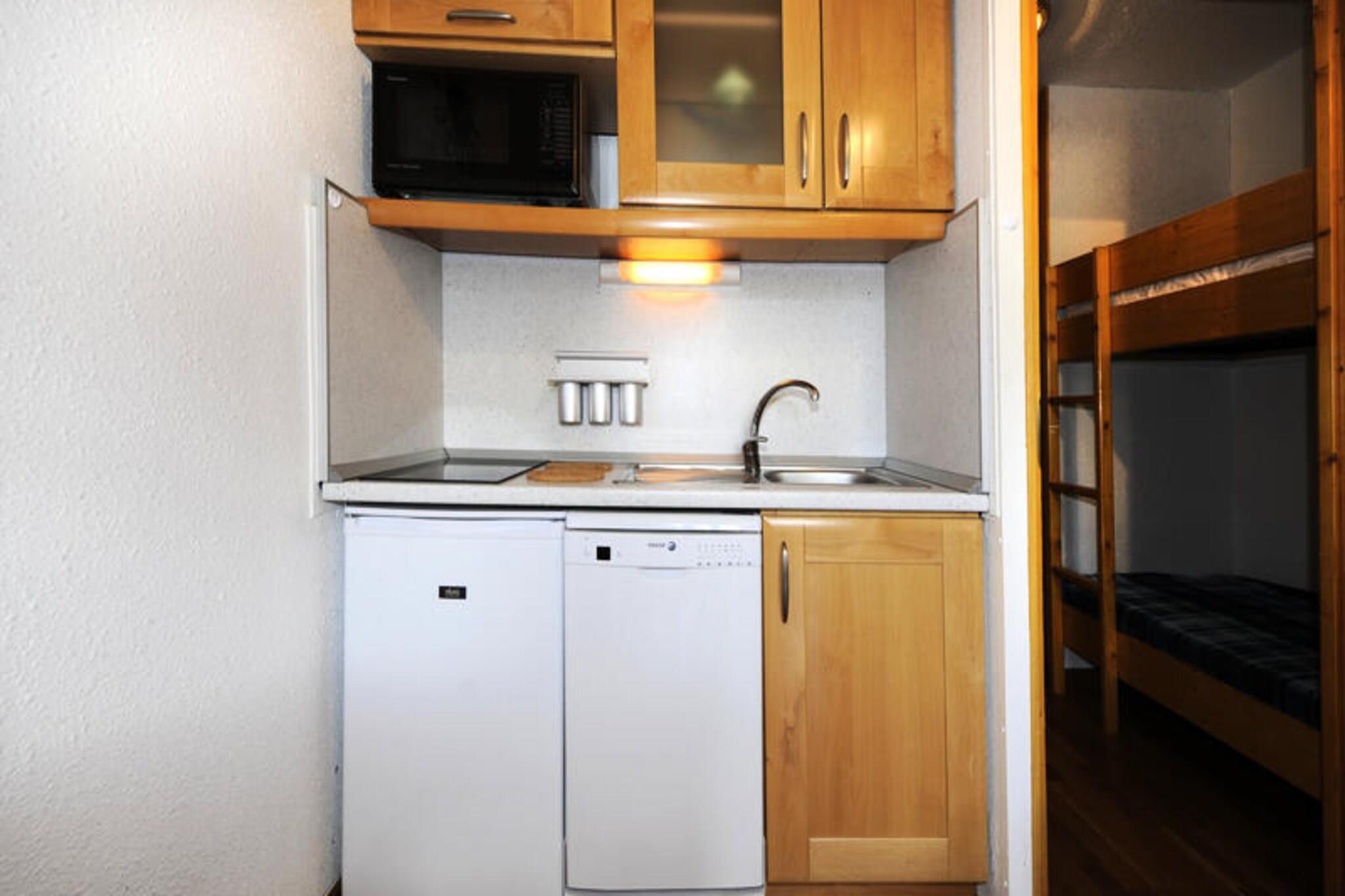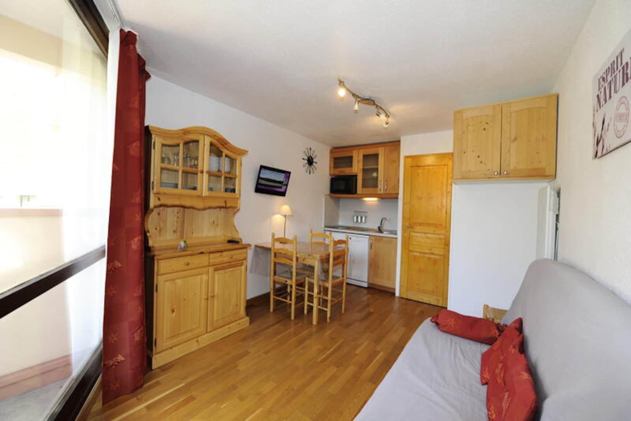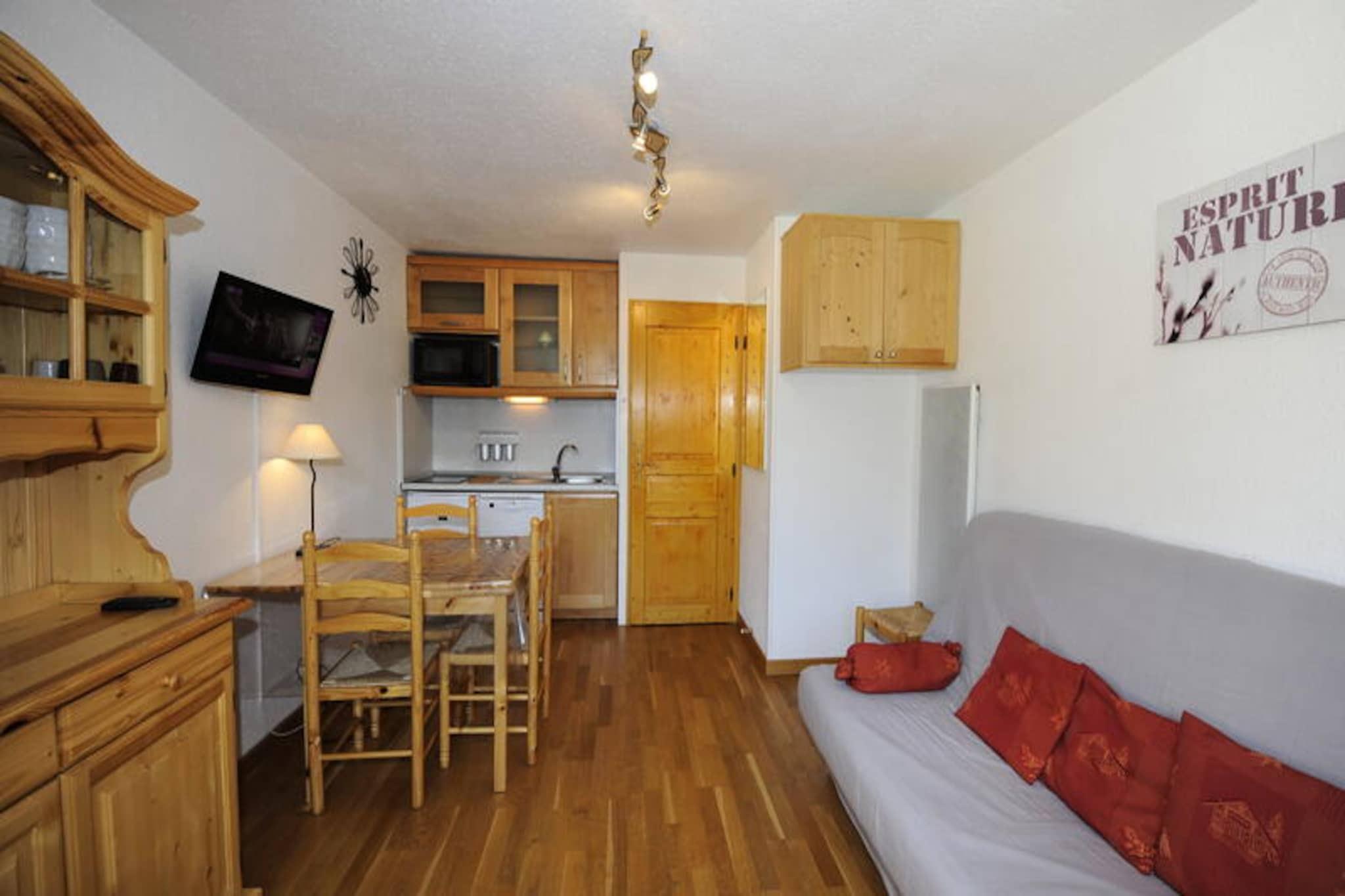 Högt ovanför det pulserande Preyerand-distriktet inbjuder denna charmiga studiolägenhet dig att uppleva magin i de franska Alperna med direkt tillgång till backarna. Från din balkong i söderläge kan du njuta av den friska bergsluften och den fantastiska utsikten medan du planerar din dag med alpina äventyr. Grande Masse-residenset erbjuder sömlös anslutning till det centrala La Croisette-distriktet via den kostnadsfria linbanan TéléPreyerand, som går dagligen från morgon till sen kväll, vilket garanterar bekvämlighet och tillgänglighet under hela din vistelse. Oavsett om du är här för skidåkning, vandring eller bara avkoppling, är denna mysiga tillflyktsort din port till Les Menuires skönhet. \n\nStudioen på 20 m² är designad för upp till tre gäster och har en praktisk planlösning med en bäddsoffa för två i vardagsrummet och ett separat fjällhörn med två våningssängar. Det välutrustade köket har moderna bekvämligheter som mikrovågsugn/grillugn, diskmaskin, kylskåp och kaffebryggare, vilket gör det enkelt att laga rejäla måltider efter en dag i backarna. Badrummet har badkar och handdukstork för extra komfort, medan vardagsrummet har en TV för avkopplande kvällar inomhus. Observera att den övre våningssängen inte är lämplig för barn under sex år.\n\nStig ut och befinn dig vid foten av backarna, redo att utforska det vidsträckta skidområdet Les Menuires. Det närliggande La Croisette-distriktet erbjuder en mängd olika butiker, restauranger och afterski-aktiviteter, vilket säkerställer att allt du behöver finns inom räckhåll. På sommaren förvandlas regionen till en fristad för vandrare och naturentusiaster med hisnande stigar och panoramautsikt.\n\nOavsett om du söker spännande vintersport eller lugna sommarresor, lovar denna studio på Grande Masse en oförglömlig alpin upplevelse, som blandar komfort, bekvämlighet och den tidlösa charmen i de franska bergen.