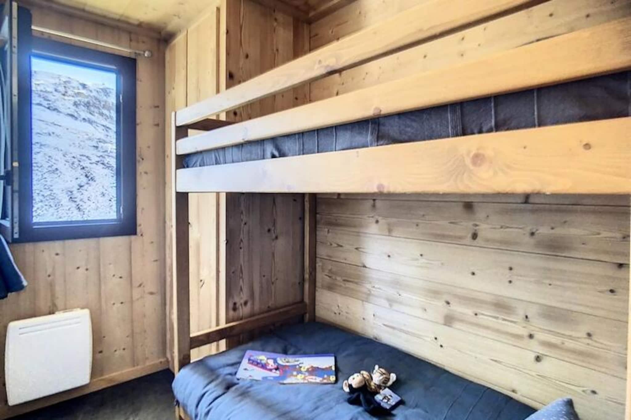 I hjärtat av de franska Alperna, där den majestätiska bergskedjan La Masse dominerar horisonten, erbjuder denna charmiga lägenhet i Biellaz-residenset en mysig tillflyktsort för dina alpina äventyr. Med direkt tillgång till ski-in/ski-out kan du gå direkt ut i backarna och fördjupa dig i den orörda skönheten i Les Menuires, en del av det världsberömda skidområdet Les Trois Vallées. Lägenheten i sydvästläge inbjuder dig att njuta av eftermiddagssolens varma glöd medan du njuter av hisnande utsikt över de omgivande topparna. Denna vackert renoverade lägenhet på 29 m² är omsorgsfullt utformad i alpin loftstil och rymmer bekvämt upp till fyra gäster. Vardagsrummet har en TV och stereo för mysiga kvällar, medan det fullt utrustade köket inkluderar moderna bekvämligheter som keramikhäll, diskmaskin, elektrisk ugn och till och med en raclettegrill för autentiska matupplevelser i bergen. Sovrummet har en lyxig dubbelsäng, och sovalkoven med våningssängar är perfekt för barn eller extra gäster. Lägenheten är certifierad FAMILLE PLUS och är skräddarsydd för familjer och erbjuder allt från en resesäng till en barnstol och till och med en skötbädd. Residenset ligger på Place des Bouquetins, bara en kort gångbro från det livliga Bruyères-distriktet, där du hittar en mängd olika restauranger, butiker, en biograf, en vattenpark och ett hälsocenter. Familjer kommer att älska rodelbanan, skidskolan och lekplatsen, medan Croisette-distriktet, med dess ytterligare bekvämligheter, bara ligger 15 minuters promenad längs en naturskön stig. Oavsett om du söker spännande dagar i backarna eller lugna kvällar omgivna av alpin charm, erbjuder denna lägenhet den perfekta balansen mellan komfort, bekvämlighet och hisnande landskap. Gör din nästa bergssemester oförglömlig i denna idylliska oas.