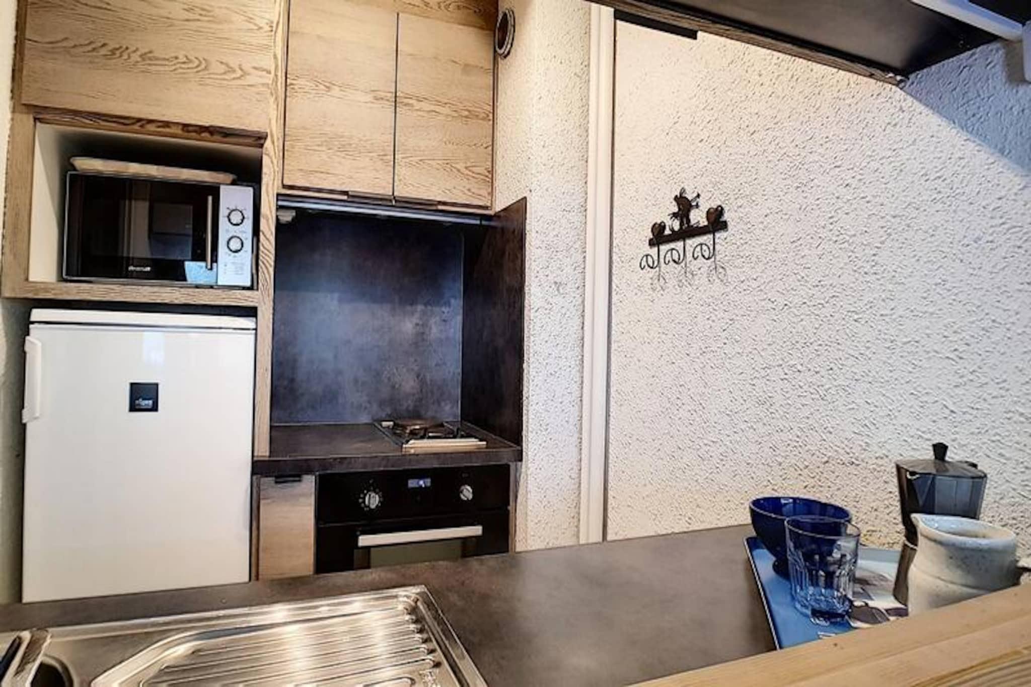 I hjärtat av det pulserande distriktet La Croisette erbjuder denna charmiga alpina lägenhet en mysig tillflyktsort med oslagbar ski-in/ski-out-bekvämlighet. Tänk dig att kliva ut ur din byggnad och direkt ut i backarna, med nybörjarvänliga pister precis utanför dörren. Aravis-byggnaden är perfekt belägen för både avkoppling och äventyr, med den livliga shoppinggallerian bara 2 minuters promenad bort och busstationen bara 5 minuter till fots. Oavsett om du är här för spänningen med skidåkning eller den fridfulla utsikten över bergen, har detta läge allt. Denna 42 m² stora lägenhet, belägen på 3:e våningen, rymmer bekvämt upp till sex gäster. Vardagsrummet har en bäddsoffa för två, en TV och en DVD-spelare, vilket skapar ett mysigt utrymme att varva ner efter en dag i backarna. Sovrummet är omsorgsfullt utformat med två uppsättningar våningssängar, vilket gör det idealiskt för familjer eller grupper av vänner. En balkong i söderläge inbjuder dig att njuta av solen och beundra det fantastiska alpina landskapet. Det fullt utrustade köket har allt du behöver för att laga rejäla måltider, från kylskåp och ugn till en raclettegrill för en autentisk matupplevelse i bergen. Moderna bekvämligheter som tvättmaskin, diskmaskin och Wi-Fi (mot avgift) garanterar en problemfri vistelse. Familjer kommer att uppskatta närheten till Pioupiou Club, en dagis och snöträdgård som ligger bara 10 minuters promenad bort, vilket gör det till ett perfekt val för dem som reser med små barn. För extra bekvämlighet finns ett garage i den närliggande Pelvoux-residensen att hyra. Med sitt utmärkta läge och genomtänkta bekvämligheter är denna lägenhet din port till en oförglömlig alpin semester. Oavsett om du ger dig ut i backarna, utforskar den charmiga byn eller bara kopplar av på balkongen, är varje ögonblick här ett minne i vardande.
