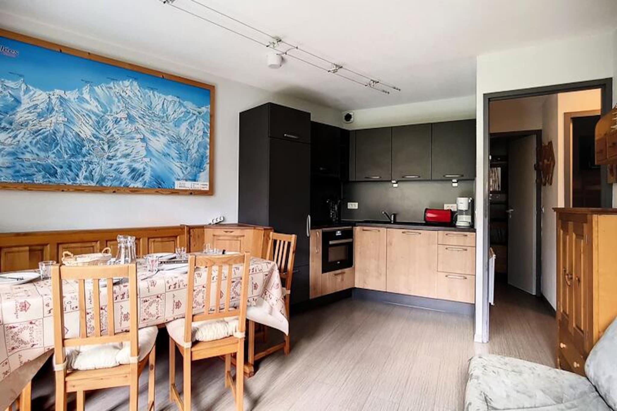 I hjärtat av det fridfulla Preyerand-distriktet erbjuder denna charmiga lägenhet i residenset Balcons d'Olympie en idyllisk alpin tillflyktsort med bekvämligheten av ski-in/ski-out. Tänk dig att stiga ut i backarna direkt från din tröskel, redo att omfamna den friska bergsluften och spänningen i de franska Alperna. Den kostnadsfria gondolbanan TéléPreyerand, som går dagligen från morgon till sen kväll, förbinder dig enkelt med det livliga La Croisette-området, där du hittar butiker, restauranger och liftbiljettkontor inom en kort 10 minuters promenad. \n\nDenna mysiga tvårumslägenhet sträcker sig över 35 m² och rymmer bekvämt upp till sex gäster, vilket gör den perfekt för familjer eller små grupper. Vardagsrummet har en bäddsoffa för två personer, en TV, DVD-spelare och stereo för avkopplande kvällar efter en dag i backarna. Det välutrustade köket har keramikhäll, kombinationsugn, kylskåp med frys, diskmaskin, brödrost, vattenkokare och kaffebryggare, vilket säkerställer att du har allt du behöver för att laga rejäla måltider. Sovrummen inkluderar ett privat sovrum med dubbelsäng och en alkov med två våningssängar, perfekt för barn eller ytterligare gäster. En balkong i västerläge inbjuder dig att varva ner och njuta av den lugna utsikten över alpina områden.\n\nBostaden är omsorgsfullt utformad med moderna bekvämligheter som elektrisk stövelvärmare, laminatgolv och täcken för en mysig vistelse. Observera att våningssängarna inte är lämpliga för barn under sex år. Avgiftsbelagd Wi-Fi finns tillgänglig, beroende på nätverkstäckning. Med sitt utmärkta läge och utmärkta bekvämligheter är denna lägenhet en inkörsport till oförglömliga alpina äventyr, oavsett om du åker skidor på vintern eller utforskar de hisnande bergslederna på sommaren. Skapa bestående minnen i detta pittoreska hörn av de franska Alperna.