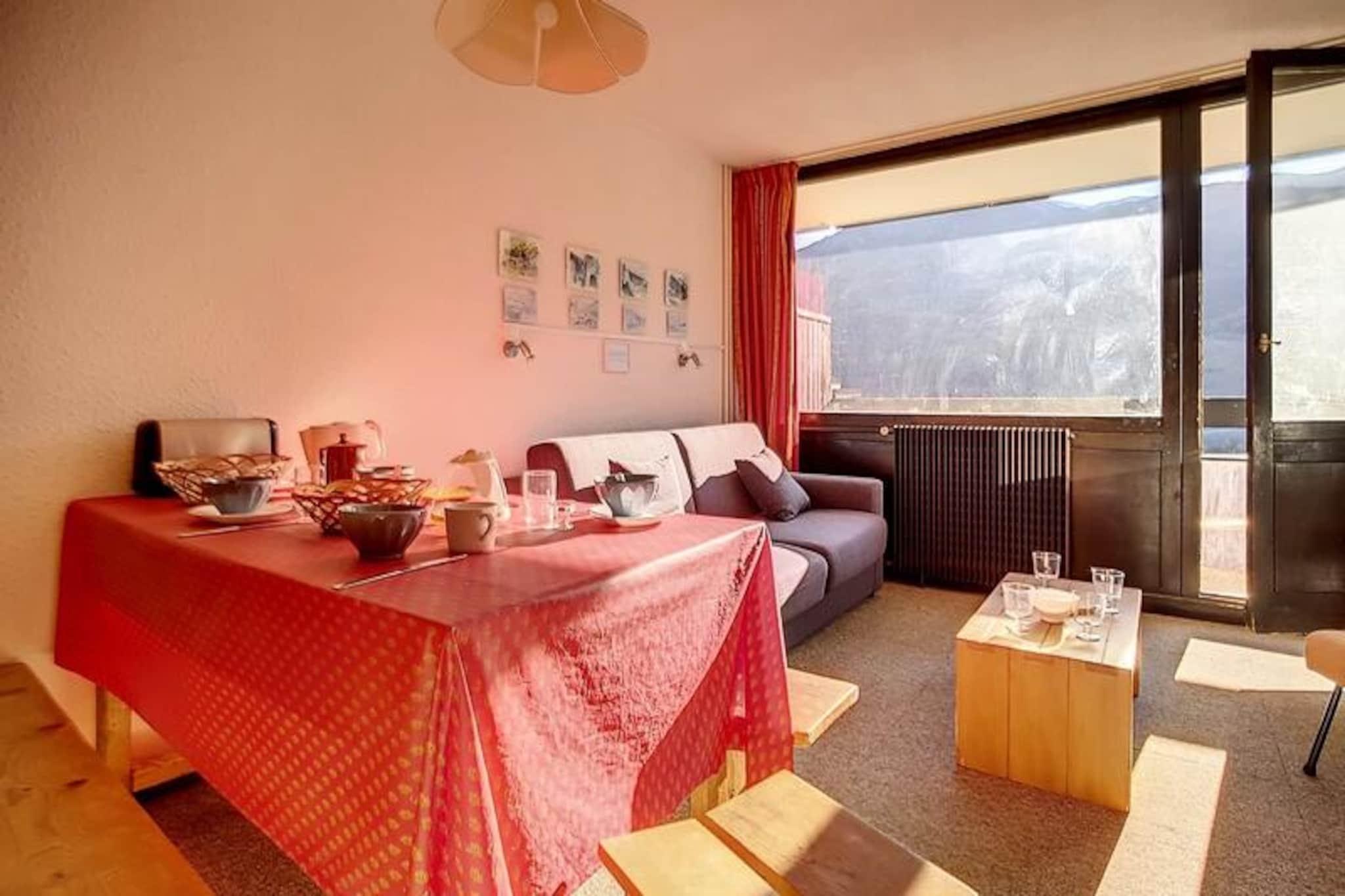 Högt ovanför La Croisettes livliga gator erbjuder denna charmiga lägenhet med ski-in/ski-out en oöverträffad alpin tillflyktsort. Belägen i Aravis-byggnaden bjuds gästerna på hisnande utsikt i söderläge och direkt tillgång till backarna, vilket gör den till ett idealiskt val för både vintersportsentusiaster och familjer. Oavsett om du tittar på soluppgången över de snötäckta topparna eller kliver ut till nybörjarbackarna precis utanför, känns varje ögonblick här som en hyllning till bergslivet. Den närliggande barnklubben Pioupiou säkerställer att även de yngsta äventyrarna kan njuta av sin tid i snön, medan ESF:s skidskolas mötesplats ligger bekvämt nära för dem som vill förfina sina färdigheter. Inuti maximerar lägenhetens genomtänkta design komfort och funktionalitet. Vardagsrummet har en mysig bäddsoffa för två, medan sovrummet rymmer upp till fyra gäster med våningssängar och en utdragbar säng, perfekt för familjer eller små grupper. Det fullt utrustade köket har moderna apparater som diskmaskin, kombinationsugn och kaffebryggare, vilket gör matlagningen till en barnlek efter en dag i backarna. En balkong i söderläge inbjuder dig att varva ner med fantastisk utsikt, medan badrummet med badkar erbjuder en avkopplande avslutning på en aktiv dag. Bortom lägenheten ligger La Croisettes livliga shoppinggalleria bara två minuters promenad bort, där det finns allt från skiduthyrning till lokala delikatesser. Busstationen ligger lika nära, vilket garanterar smidiga resor till närliggande sevärdheter. För dig som söker bekvämlighet, charm och direkt tillgång till backarna är denna bostad ett perfekt val för att skapa oförglömliga minnen i hjärtat av de franska Alperna.
