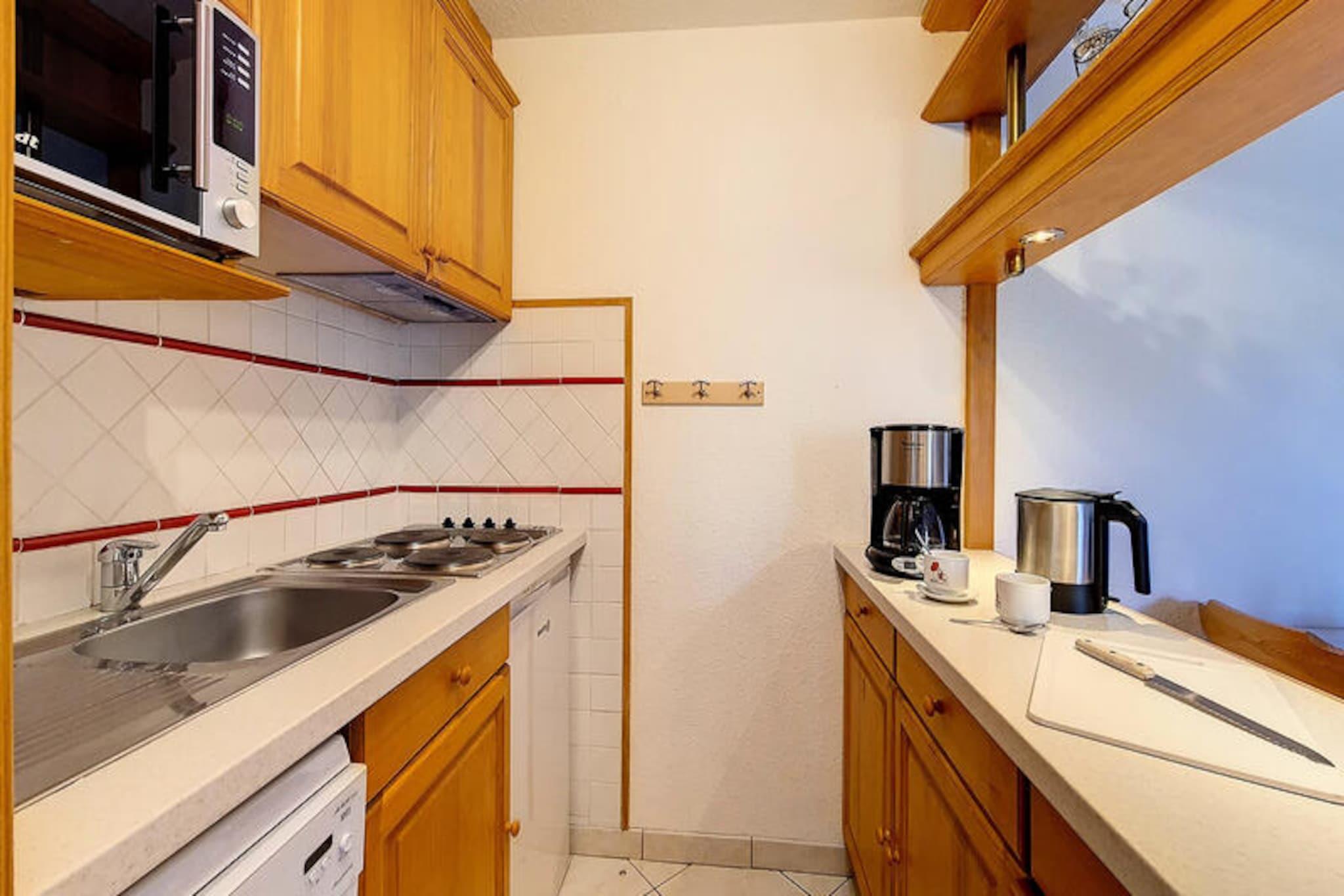 Högt ovanför det livliga La Croisette-distriktet erbjuder denna vackert renoverade lägenhet en lugn alpin tillflyktsort med direkt tillgång till backarna. Tänk dig att stiga ut genom din dörr och glida rakt ut på den orörda snön, omgiven av de majestätiska topparna i de franska Alperna. Med två balkonger i västerläge kan du njuta av den hisnande utsikten över Masse, oavsett om du njuter av ditt morgonkaffe eller varvar ner efter en dag av äventyr. Läget på sjätte våningen, tillgängligt med hiss, garanterar både avskildhet och bekvämlighet, vilket gör det till ett idealiskt val för par eller små familjer som söker en mysig men ändå elegant tillflyktsort. \n\nInuti har lägenheten en modern och inbjudande design, som sträcker sig över 37 m² och bekvämt rymmer upp till fem gäster. Vardagsrummet har två bäddsoffor, en TV och en DVD-spelare för avkopplande kvällar. Det separata sovrummet, utrustat med en dubbelsäng och elektriska jalusier, lovar vilsamma nätter. Köket är fullt utrustat med en spishäll med 4 brännare, mikrovågsugn/grill, kylskåp, diskmaskin, brödrost, vattenkokare och kaffebryggare, perfekt för att laga rejäla måltider efter en dag i backarna. Med linoleumgolv och genomtänkta detaljer som filtar utstrålar utrymmet värme och praktiskhet.\n\nSjälva bostaden erbjuder oslagbar bekvämlighet, med en shoppinggalleria i direkt anslutning till byggnadens källare och gratis utomhusparkering vid foten av byggnaden (i mån av tillgång). Familjer kommer att uppskatta daghemmet som ligger bara 300 meter bort, medan avgiftsbelagd Wi-Fi-åtkomst säkerställer att du håller dig uppkopplad under din vistelse. Denna rökfria och husdjursfria lägenhet är designad för komfort och avkoppling.\n\nOavsett om du är här för att snubbla genom snön eller utforska det pulserande La Croisette-distriktet, lovar denna alpina oas oförglömliga stunder i hjärtat av de franska Alperna. Låt charmen i Masse och bekvämligheten med att bo vid backen skapa den perfekta bakgrunden för ditt nästa semesteräventyr.