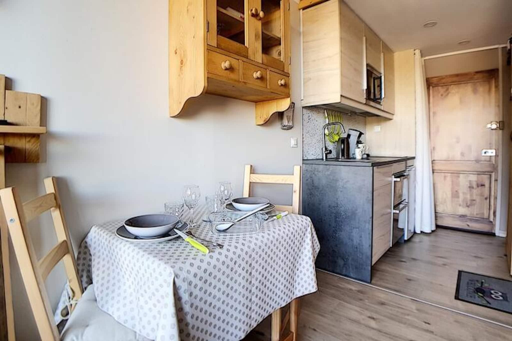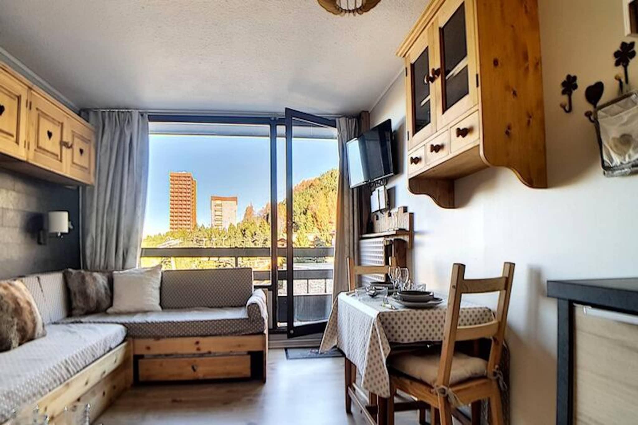 I hjärtat av La Croisette-distriktet, där charmen i de franska Alperna möter modern bekvämlighet, erbjuder denna mysiga studiolägenhet den perfekta tillflyktsorten för två. Tänk dig att vakna upp till den friska bergsluften, kliva ut på din privata balkong och titta på den fridfulla alpina omgivningen. Oavsett om du är här för ett actionfyllt skidäventyr eller en fridfull flykt, placerar denna bostad dig i centrum av allt. Med direkt tillgång till backarna och bekvämligheten med en shoppinggalleria mitt i byggnaden, är varje ögonblick av din vistelse utformad för enkelhet och njutning. Denna helrenoverade studio på 17 m² är omsorgsfullt utformad för att maximera komfort och funktionalitet. Vardagsrummet har två bäddsoffor, varav en med utdragbar möjlighet, vilket garanterar vilsamma nätter efter en dag av utforskande. Det välutrustade köket inkluderar moderna apparater som kylskåp med frysfack, keramikhäll, ugn, mikrovågsugn, diskmaskin och till och med en raclettegrill för mysiga alpina middagar. Badrummet är utrustat med duschkabin, handfat och toalett, vilket kompletterar utrymmet med praktiska egenskaper och stil. Kliv ut, så befinner du dig bara några ögonblick från backarna, vilket gör det enkelt att njuta av skidåkningens spänning. Köpcentrumet La Croisette, som ligger precis nedanför, erbjuder en mängd olika butiker och bekvämligheter, medan ett daghem ligger bekvämt beläget bara 300 meter bort. Gratis utomhusparkering vid foten av byggnaden ökar bekvämligheten, men tillgänglighet beror på efterfrågan. Oavsett om du söker äventyr eller avkoppling, erbjuder denna studiolägenhet en varm och inbjudande bas för din alpina semester. Med sitt utmärkta läge, moderna bekvämligheter och de förtrollande omgivningarna i de franska Alperna, lovar din vistelse här att bli oförglömlig.
