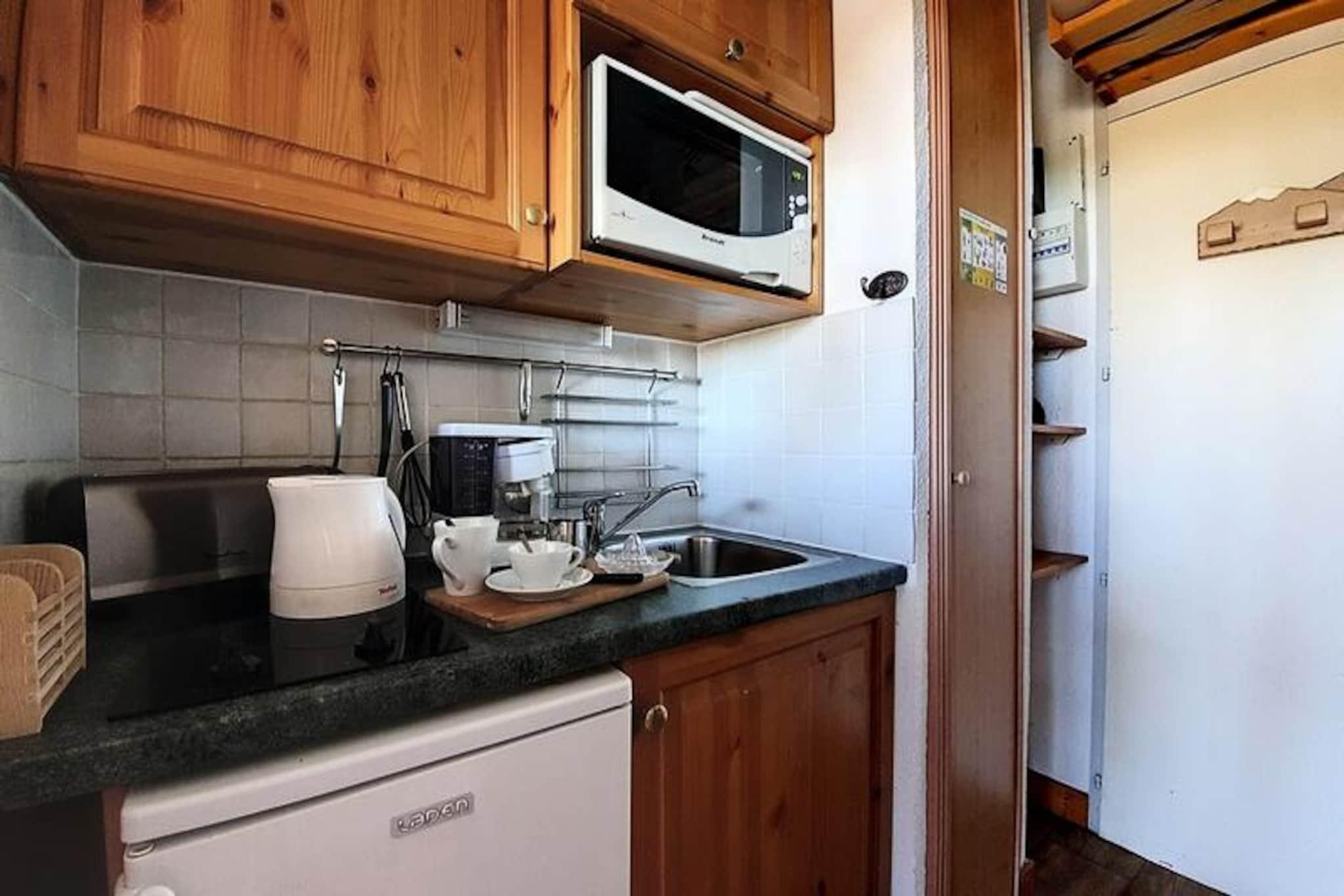 Högt ovanför det livliga La Croisette-distriktet erbjuder denna mysiga studiolägenhet en fridfull tillflyktsort för dig som söker den perfekta alpina semestern. Tänk dig att vakna upp till den friska bergsluften och gå ut på din privata balkong i norrläge för att beundra den lugna omgivningen. Oavsett om du är här för skidåkning eller en fridfull tillflyktsort, blandar denna charmiga bostad bekvämlighet med komfort i hjärtat av de franska Alperna.\n\nStudiolägenheten på 17 m² är nyrenoverad och omsorgsfullt utformad för att rymma upp till tre gäster. Vardagsrummet har två enkelsängar och en utdragbar säng, vilket garanterar vilsamma nätter efter dagar fyllda med utforskande. Ett kompakt men välutrustat kök har en spishäll med två brännare, kombinationsugn, kylskåp, minidiskmaskin, brödrost, vattenkokare och kaffebryggare, vilket gör det enkelt att laga mat. Badrummet har badkar och toalett, vilket erbjuder en avkopplande plats att varva ner. Med dubbelglasfönster och värme kommer du att hålla dig mysig oavsett årstid.\n\nChavière-boendet erbjuder direkt tillgång till backarna, vilket gör det idealiskt för vintersportentusiaster. Byggnaden är ansluten till en shoppinggalleria, vilket säkerställer att allt nödvändigt finns inom räckhåll, medan ett daghem ligger bekvämt beläget bara 300 meter bort. Gratis utomhusparkering vid foten av byggnaden bidrar till en bekväm vistelse, och avgiftsbelagt Wi-Fi finns tillgängligt för de som behöver hålla sig uppkopplade.\n\nOavsett om du dras till spänningen i backarna eller charmen i den alpina livsstilen, är denna studio din port till en oförglömlig bergsupplevelse. Med sitt utmärkta läge och genomtänkta bekvämligheter är det det perfekta valet för par eller små familjer som vill fördjupa sig i de franska Alpernas skönhet.